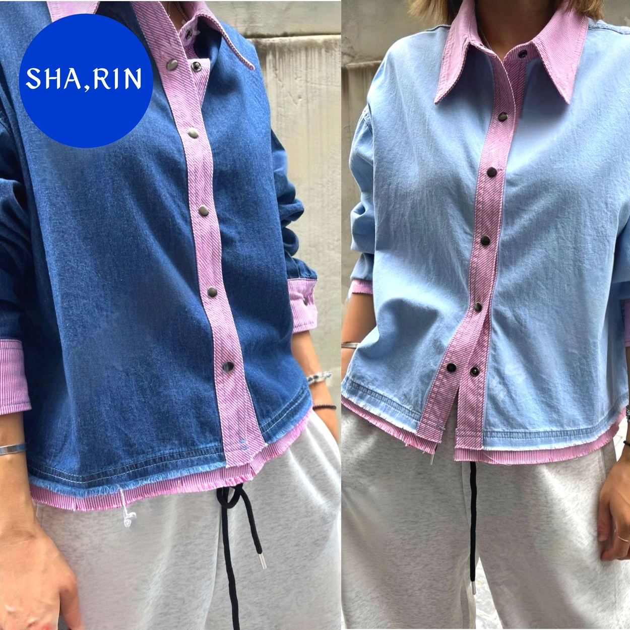 [샤린]청 배색 자켓