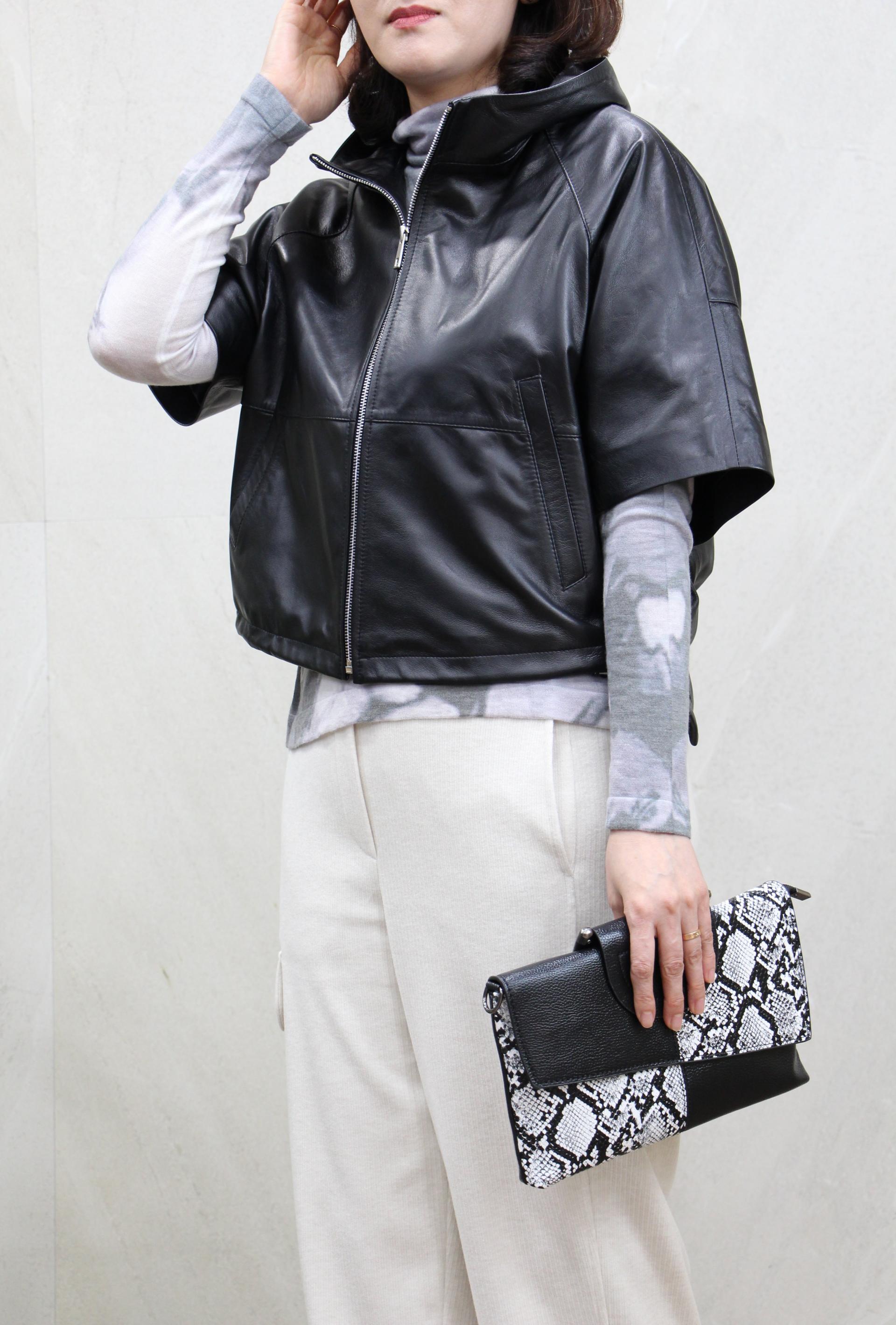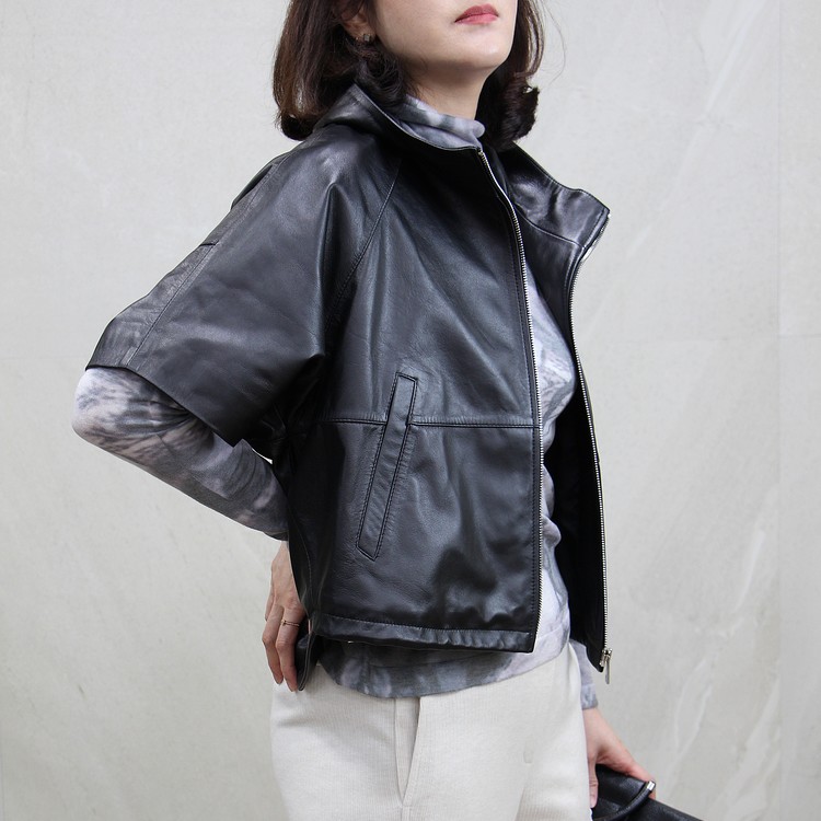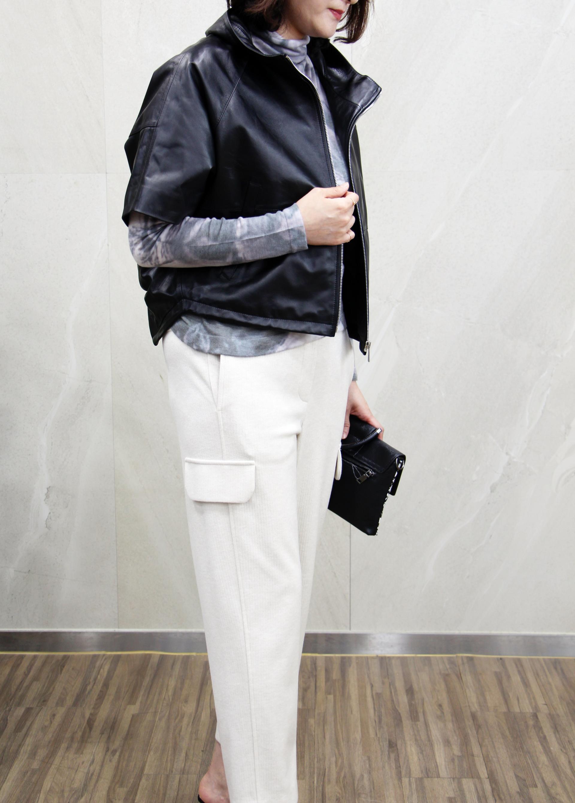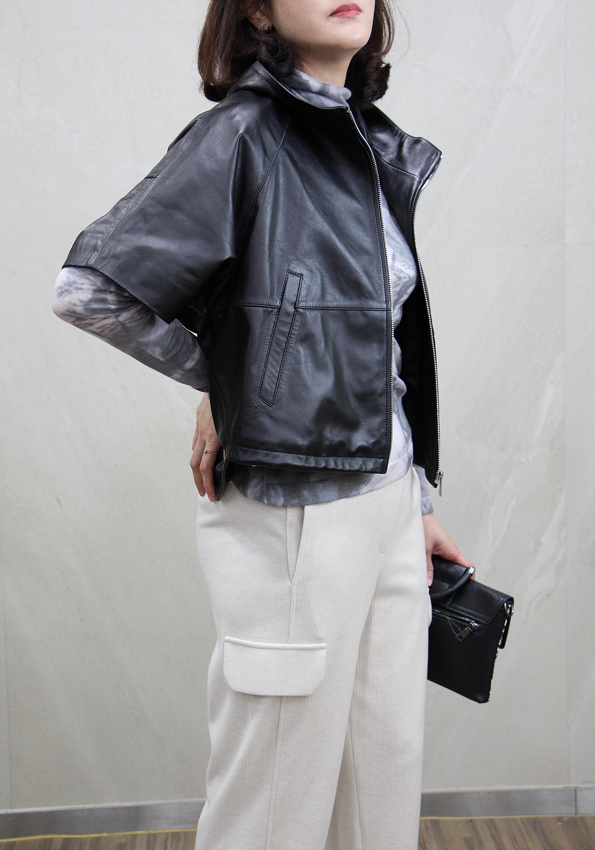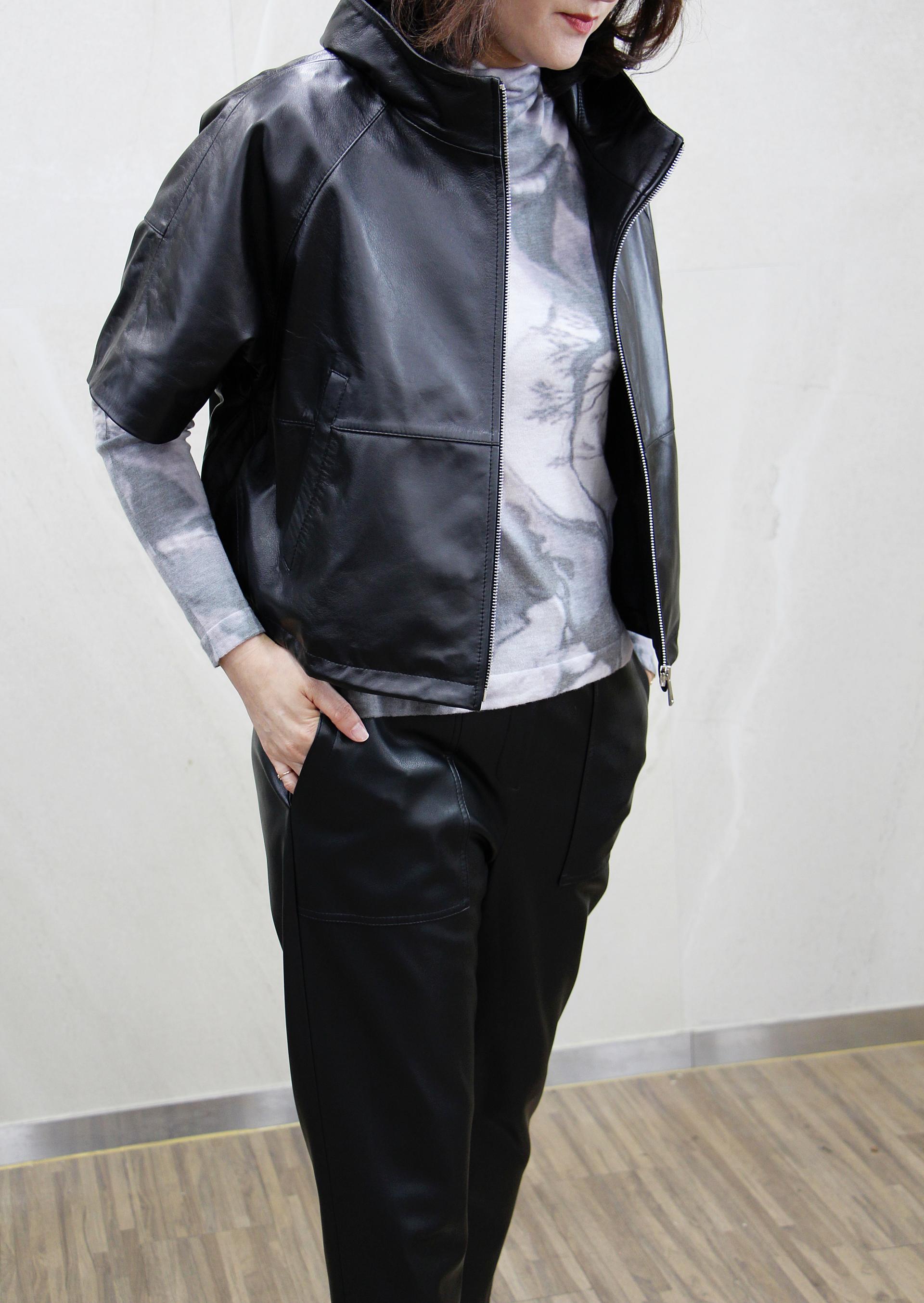 허리라인의 시보리가 포인트인 100% 프리미엄 양가죽 자켓