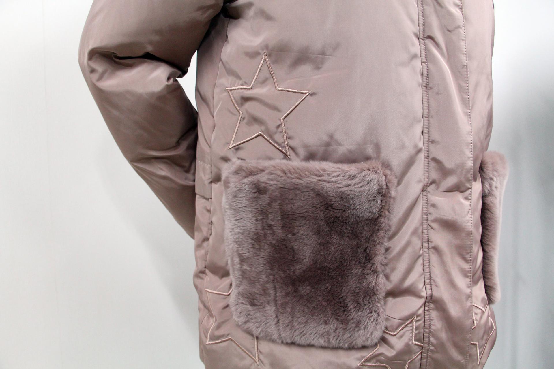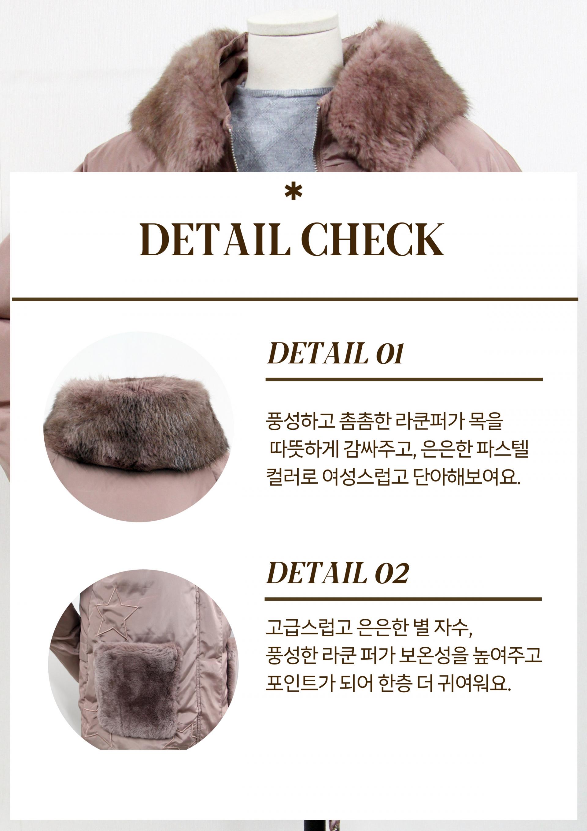 풍성하고 촘촘한 라쿤퍼의 카라, 주머니 장식이