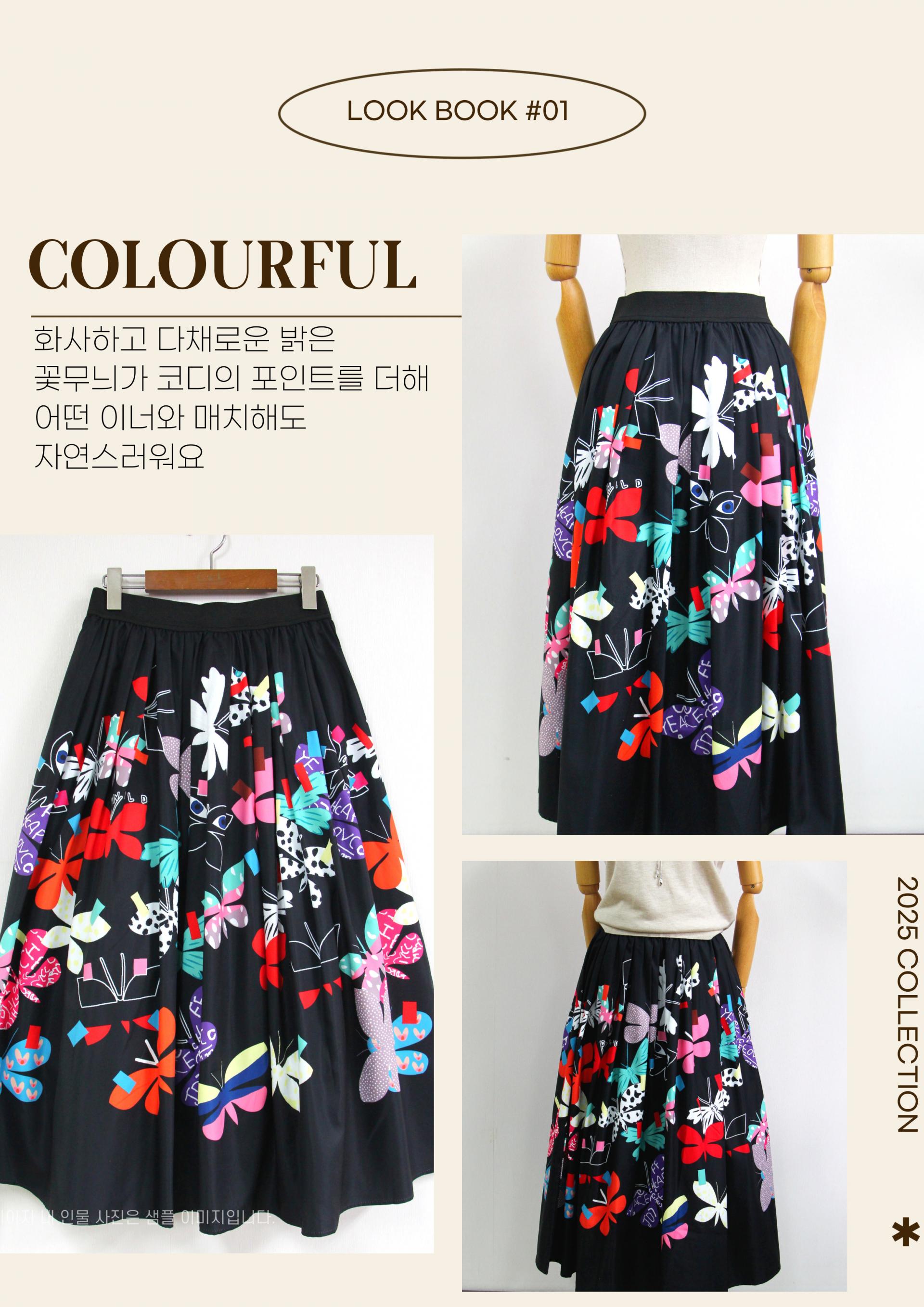 화사하고 다채로운 플라워 무늬의 스커트가