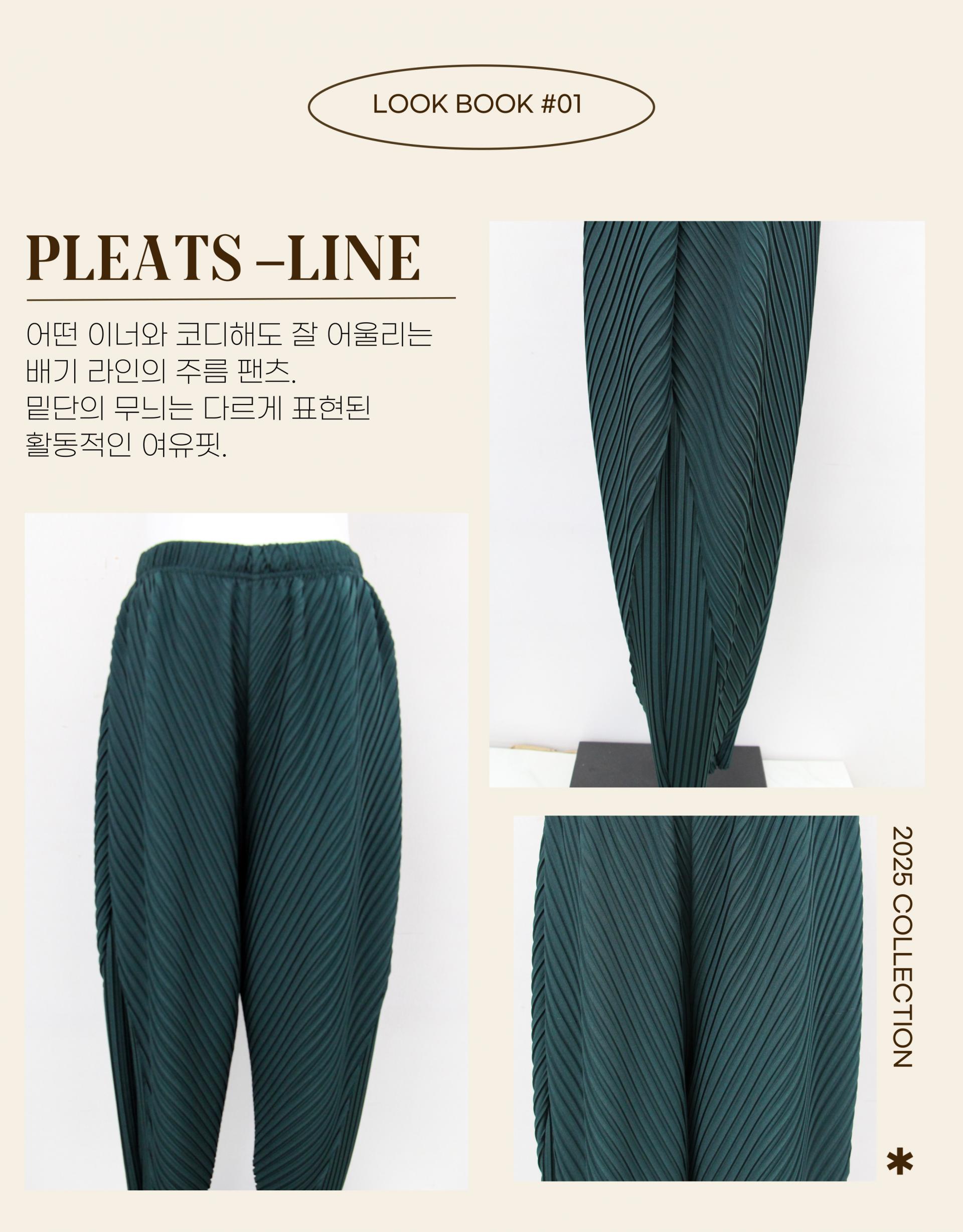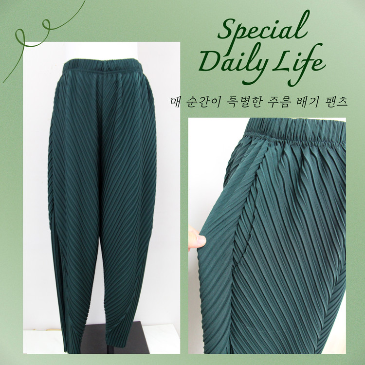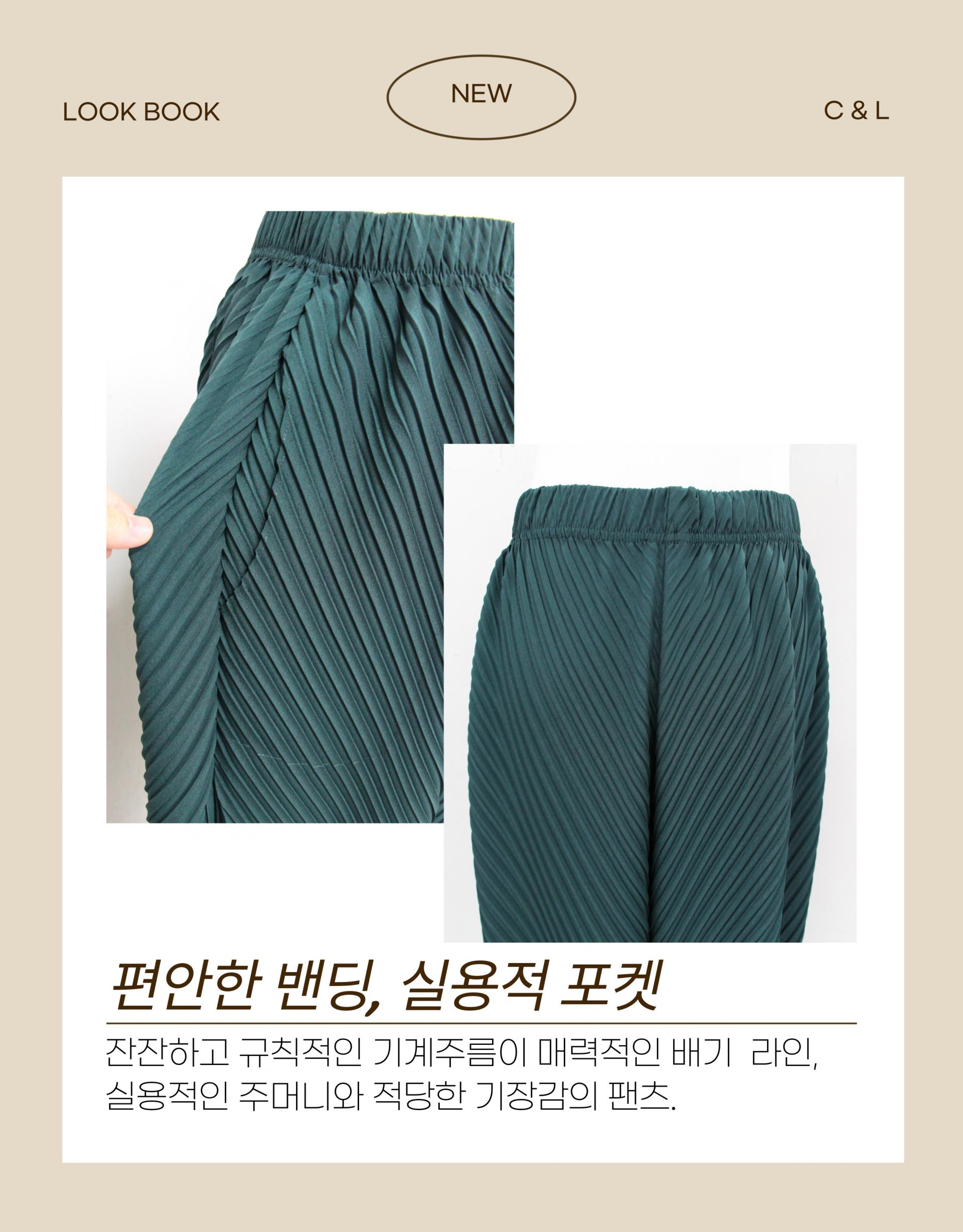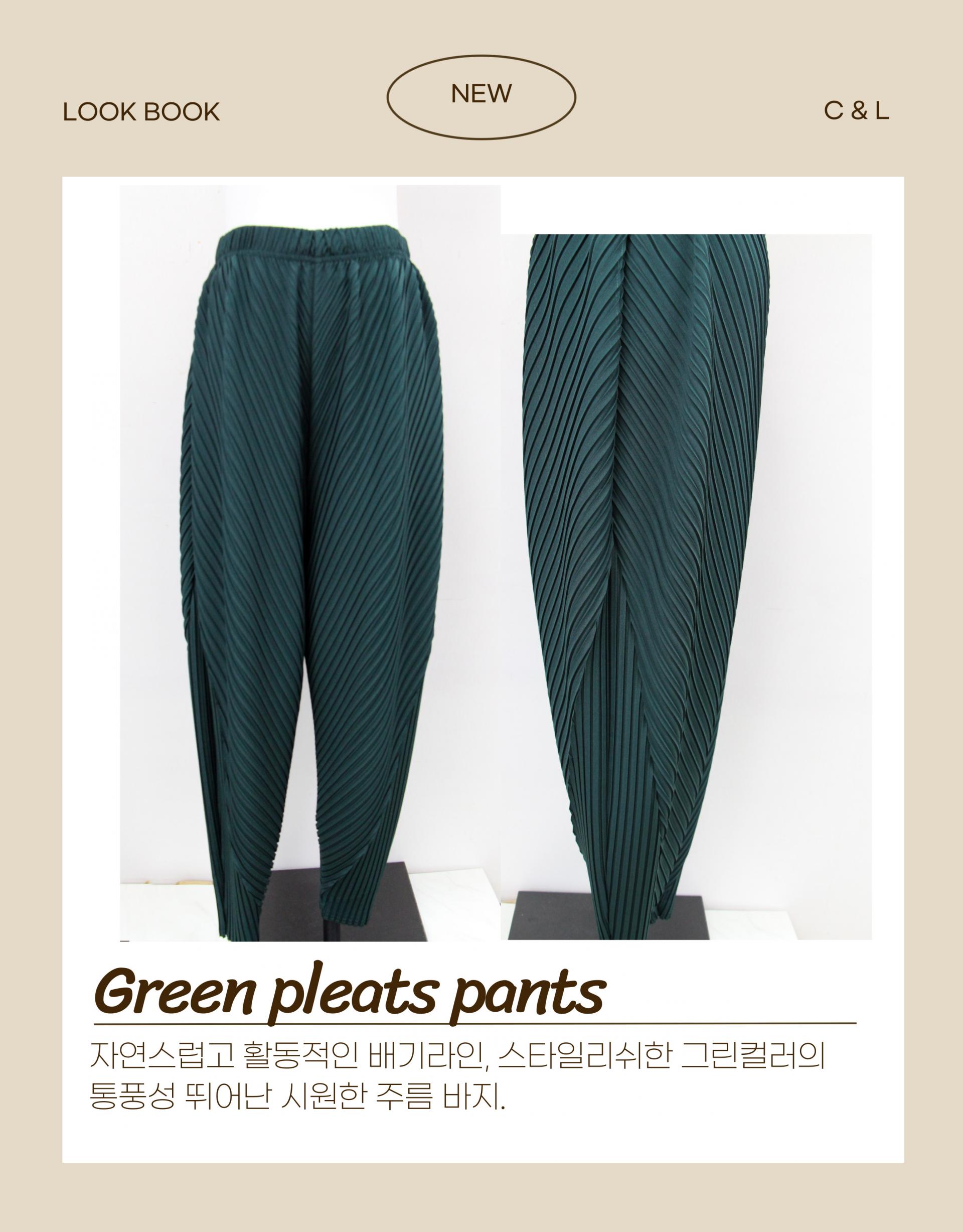 스타일리쉬한 그린컬러의 통풍성, 착용감이 뛰어난 주름 바지