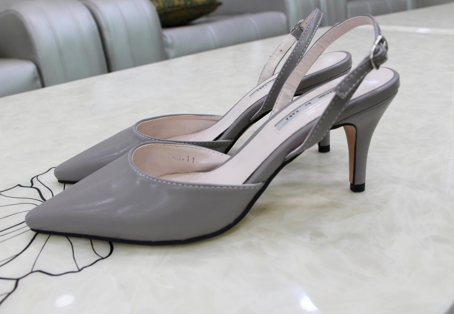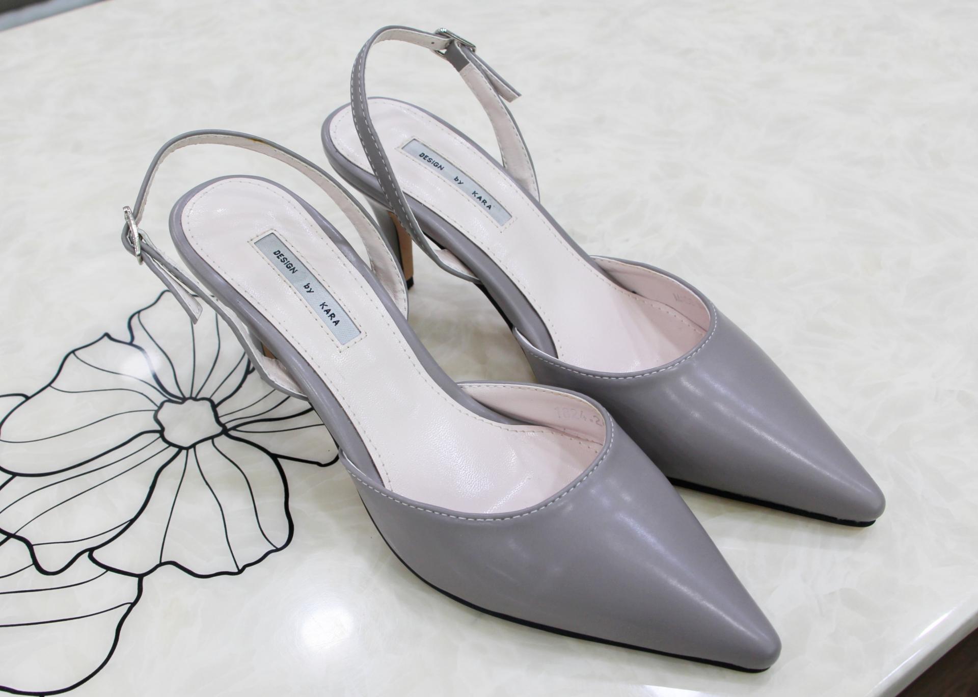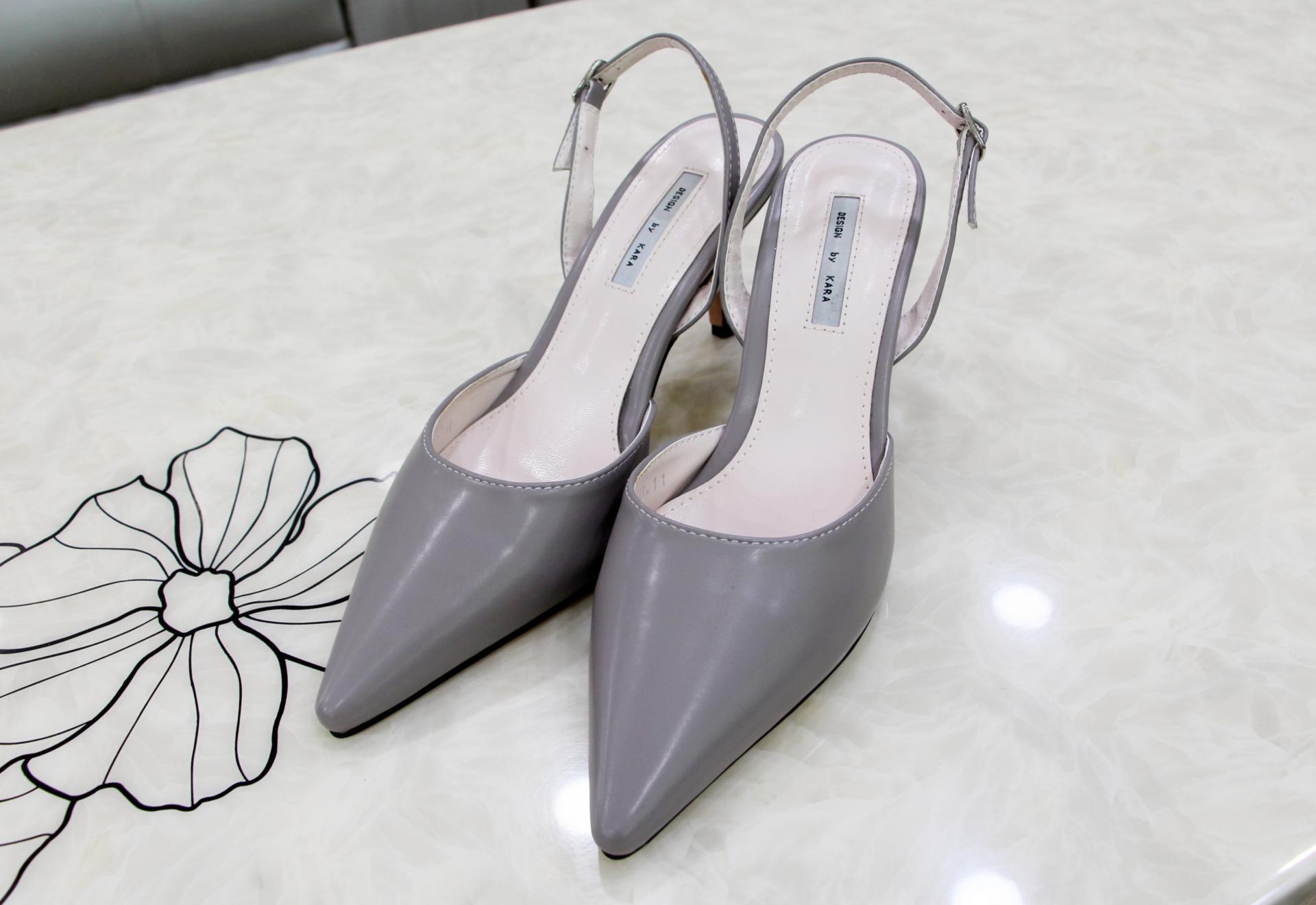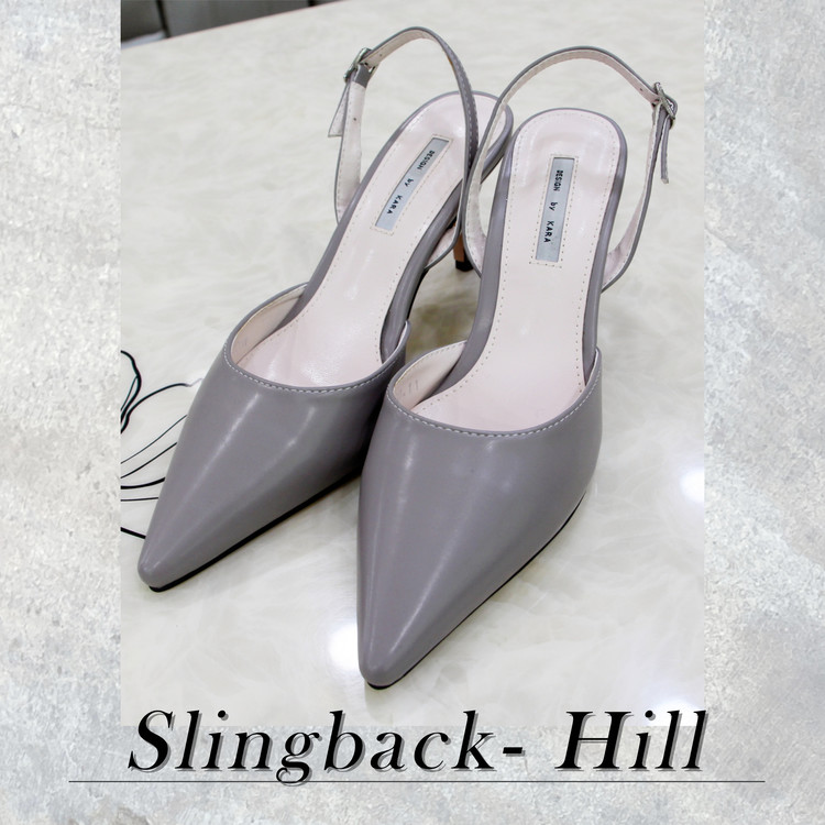 클래식하고 단정한 그레이 컬러의 슬링백 힐