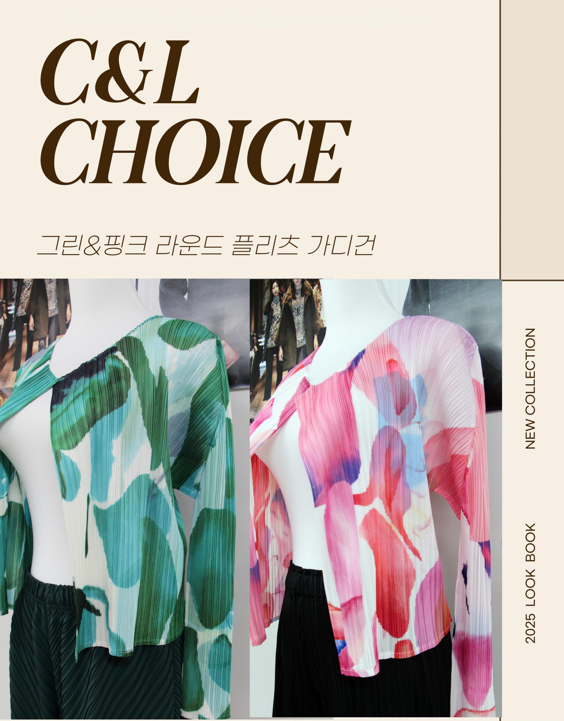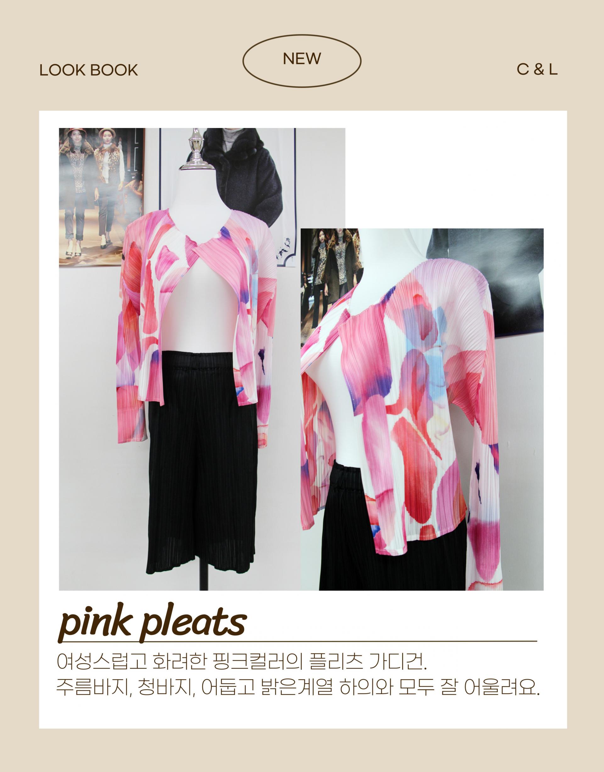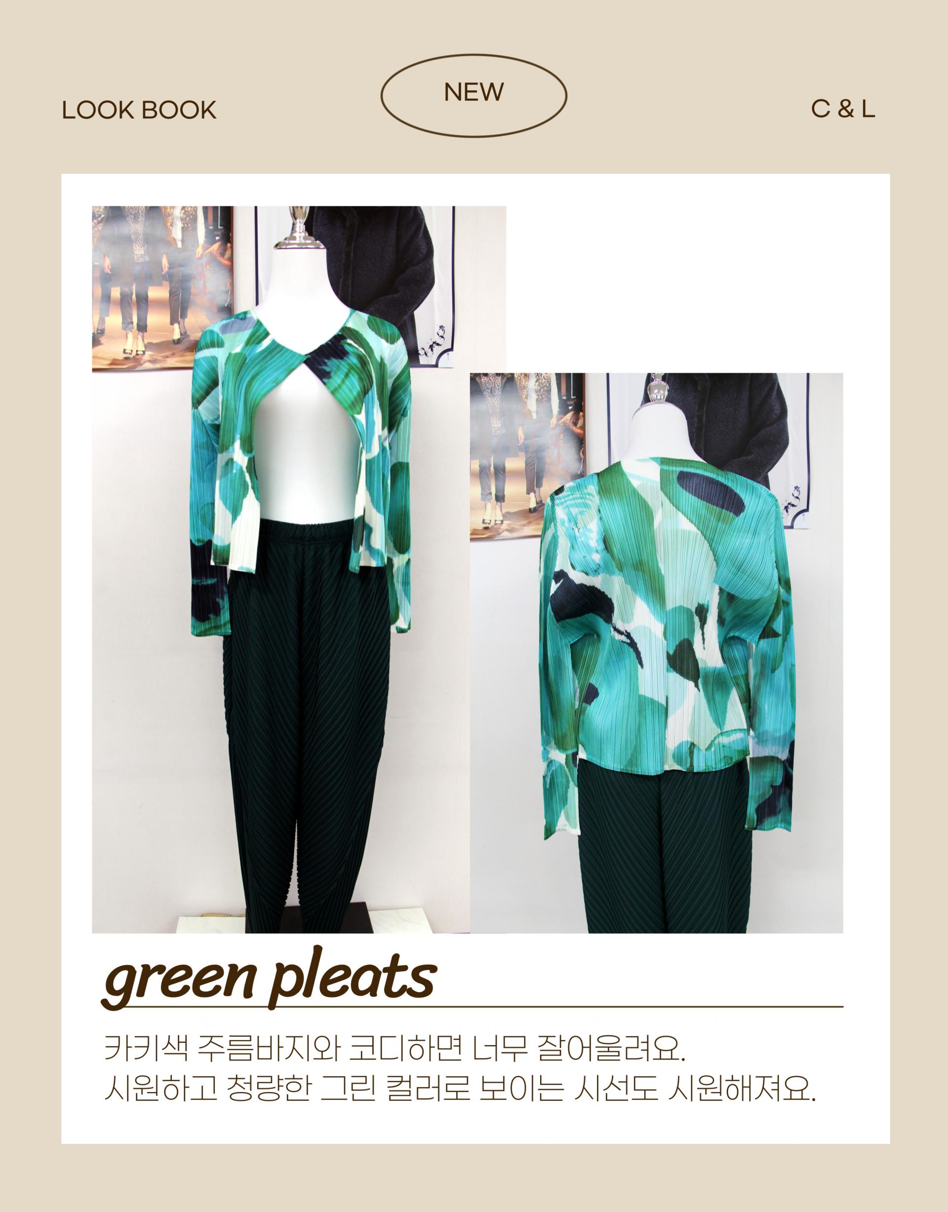 [씨엔엘] 그린&핑크 플리츠 가디건