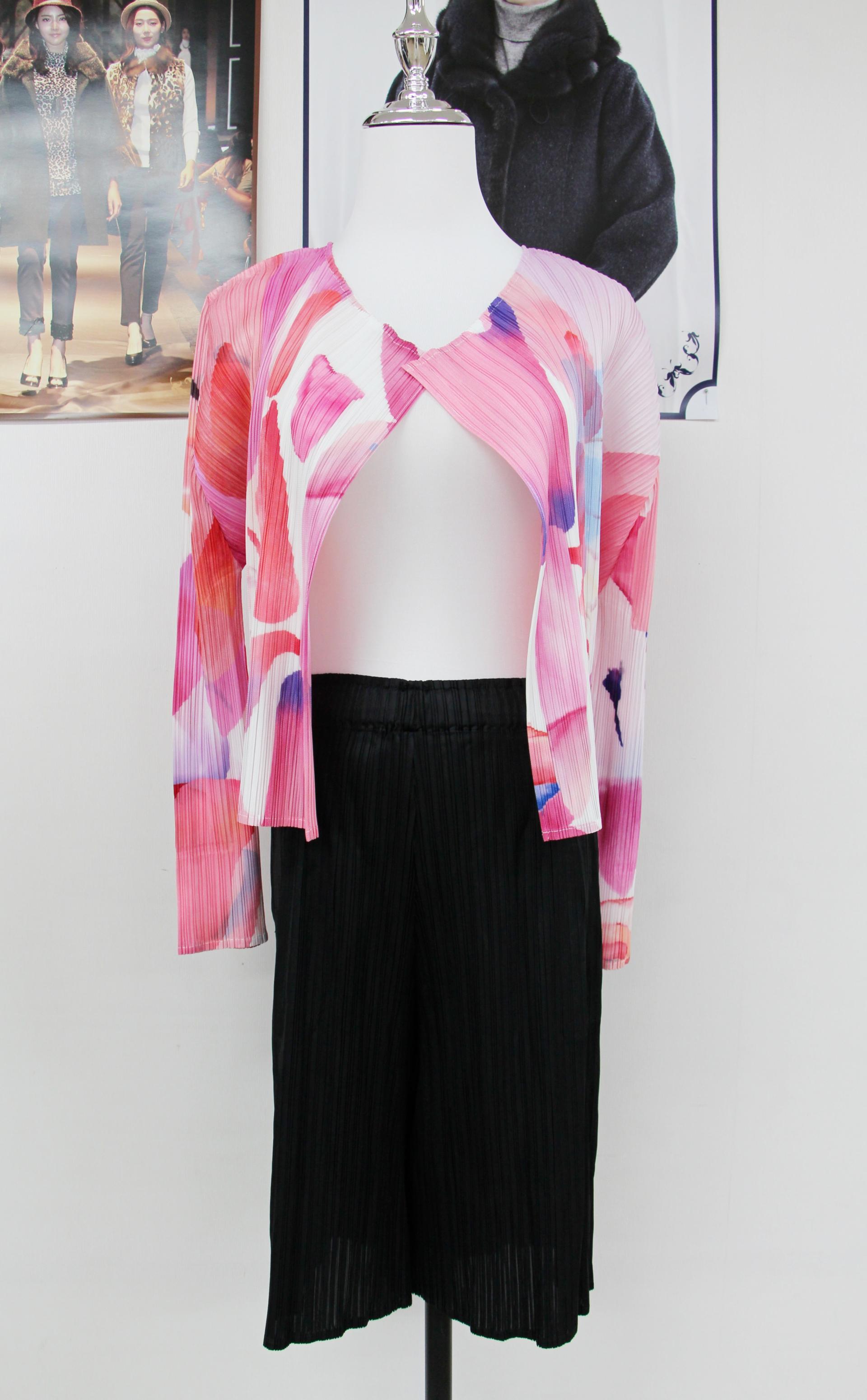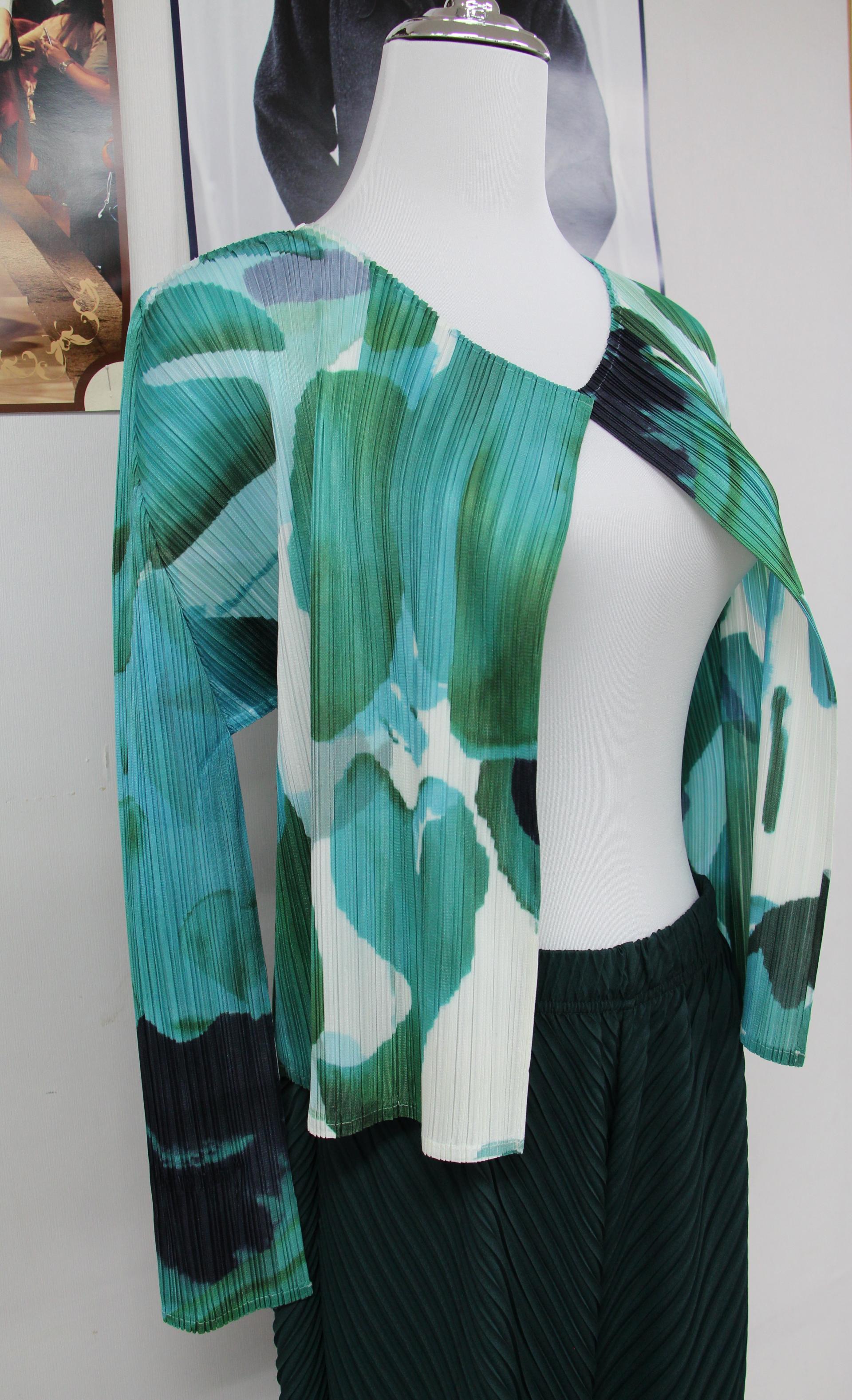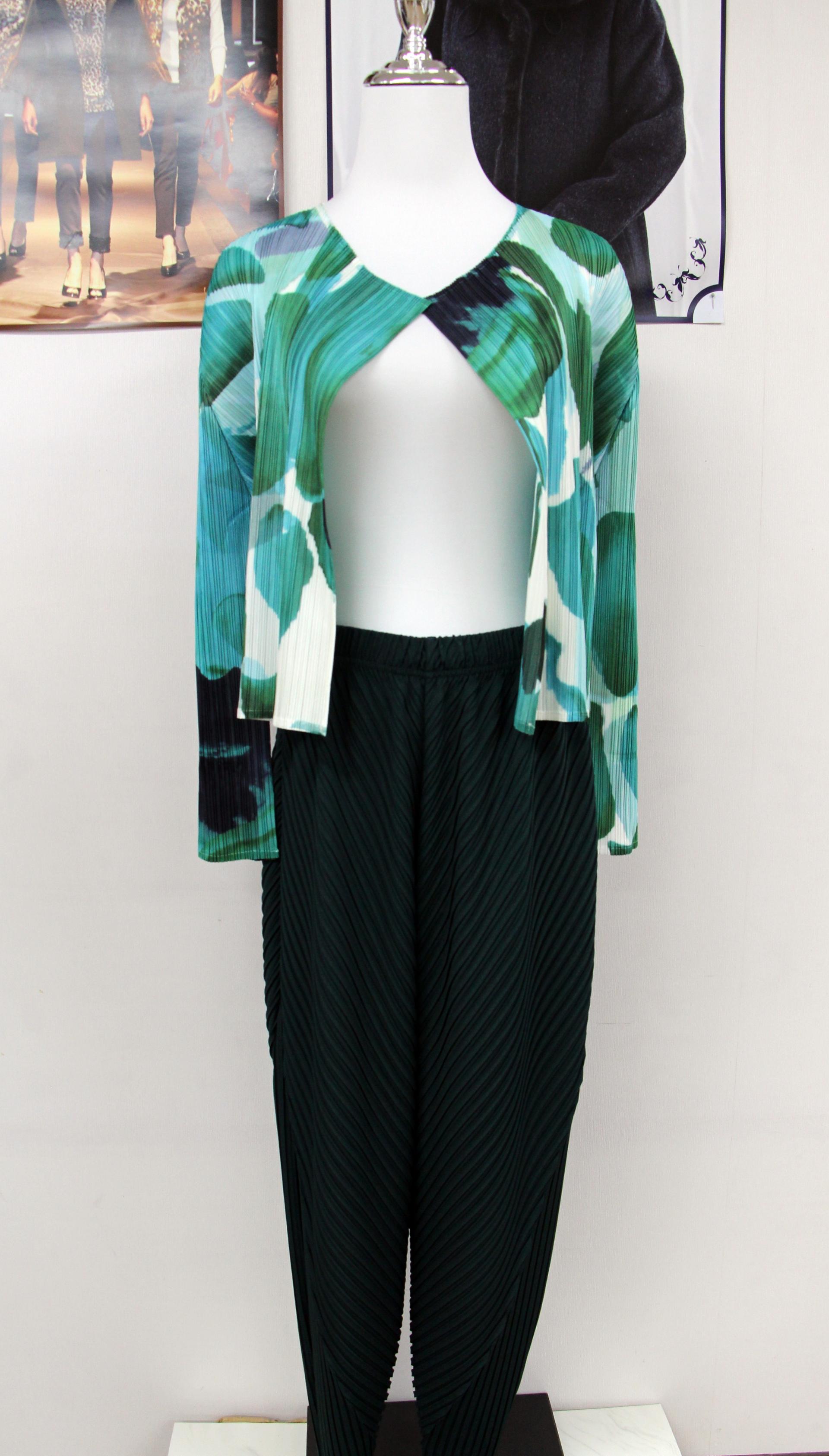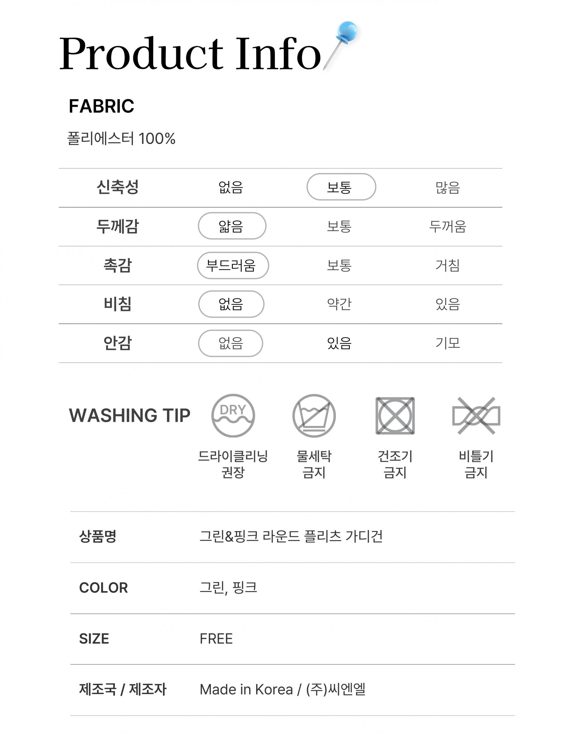 [씨엔엘] 그린&핑크 플리츠 가디건
