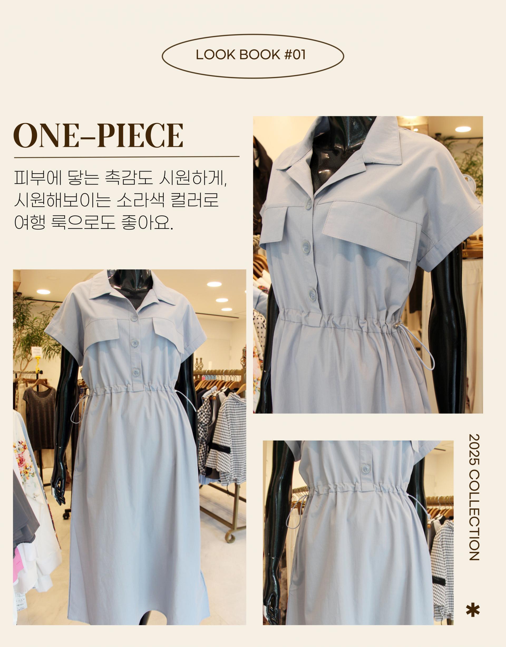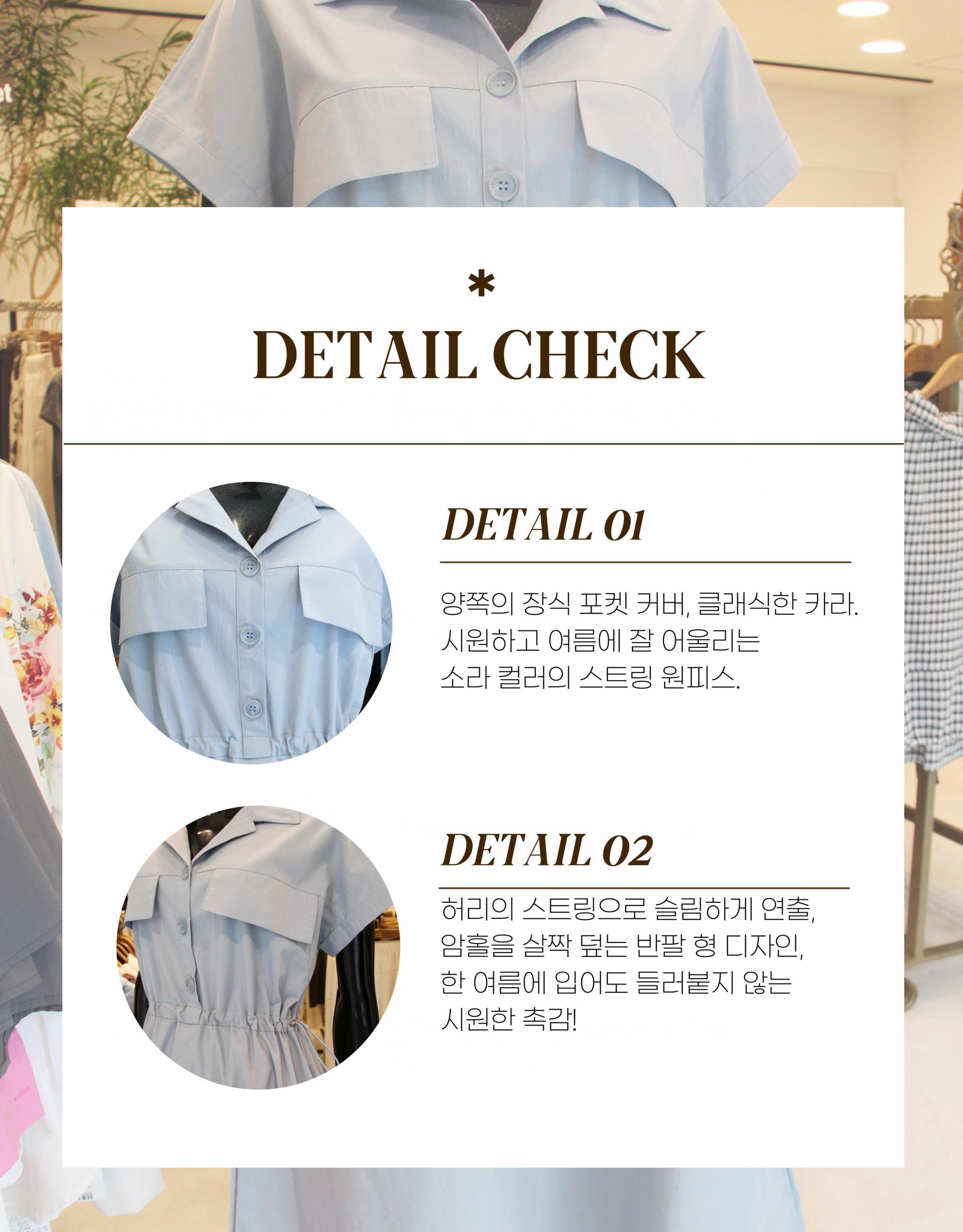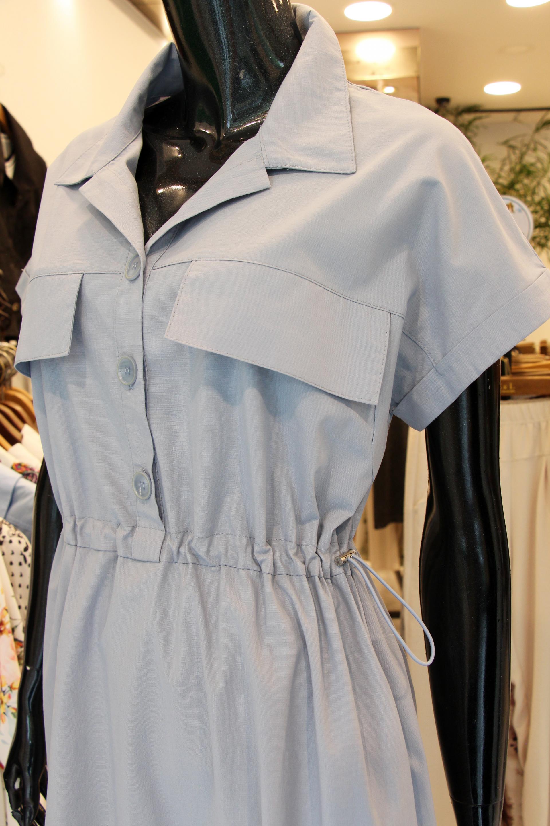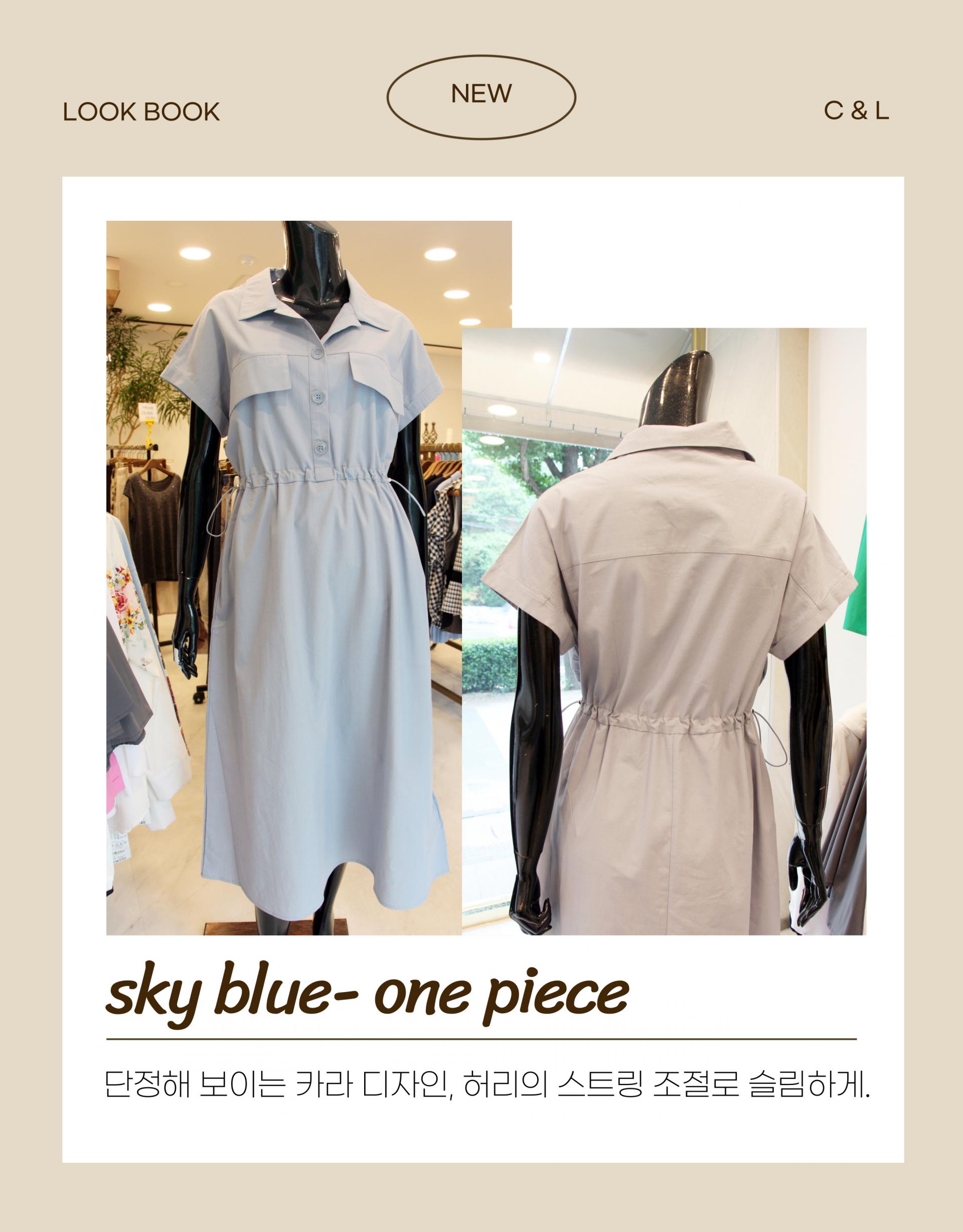 여름에 잘 어울리는 소라색의 허리 스트링 원피스
