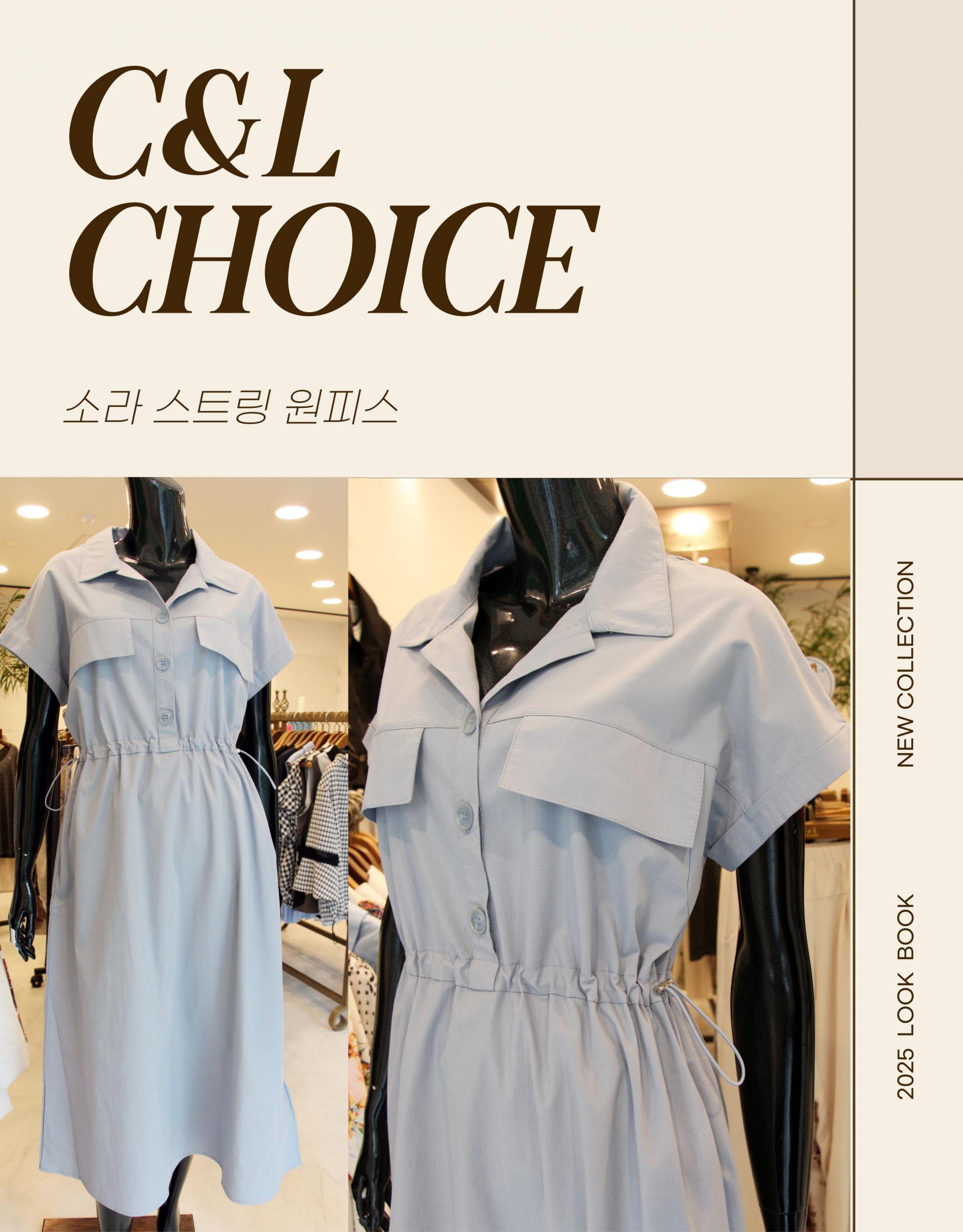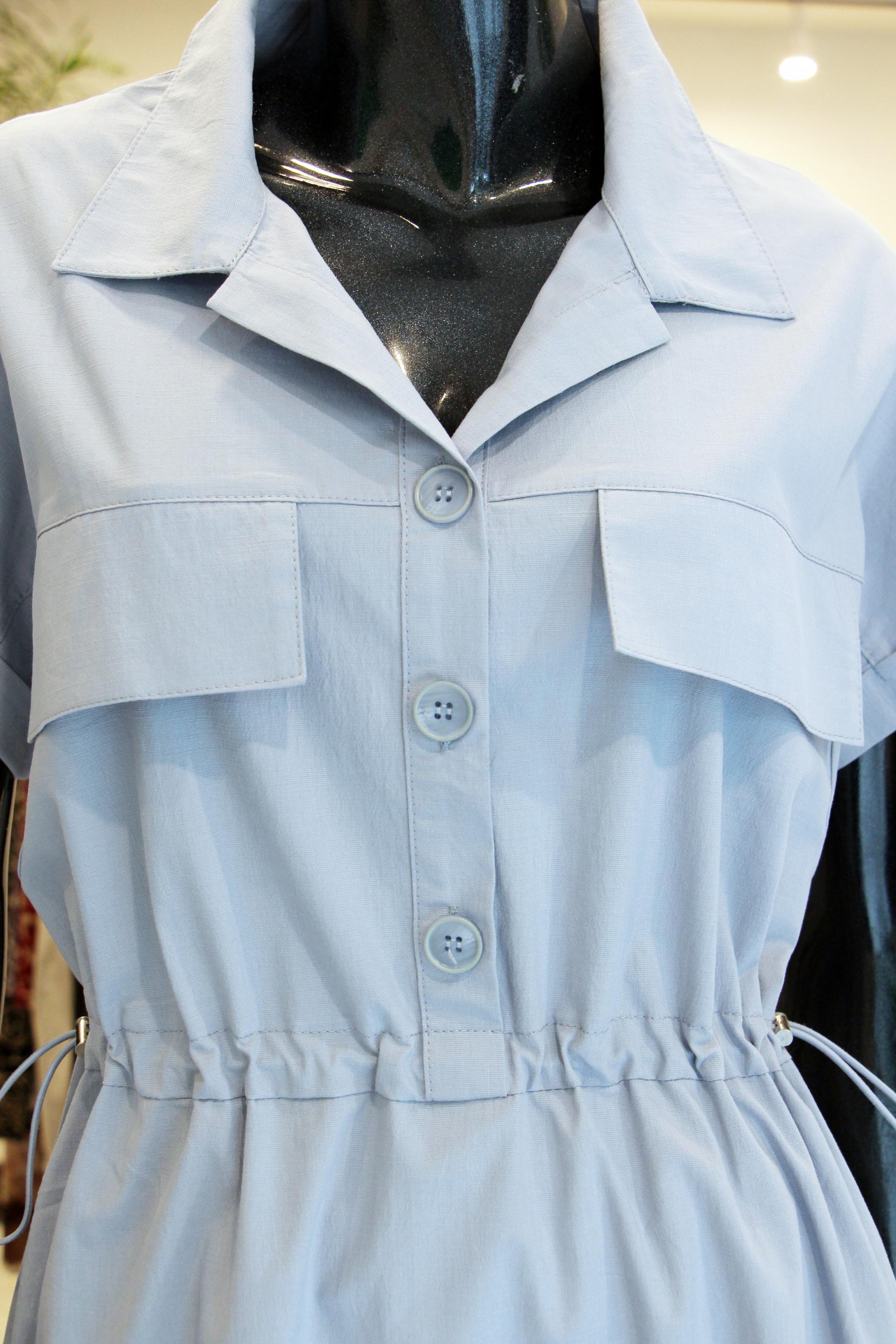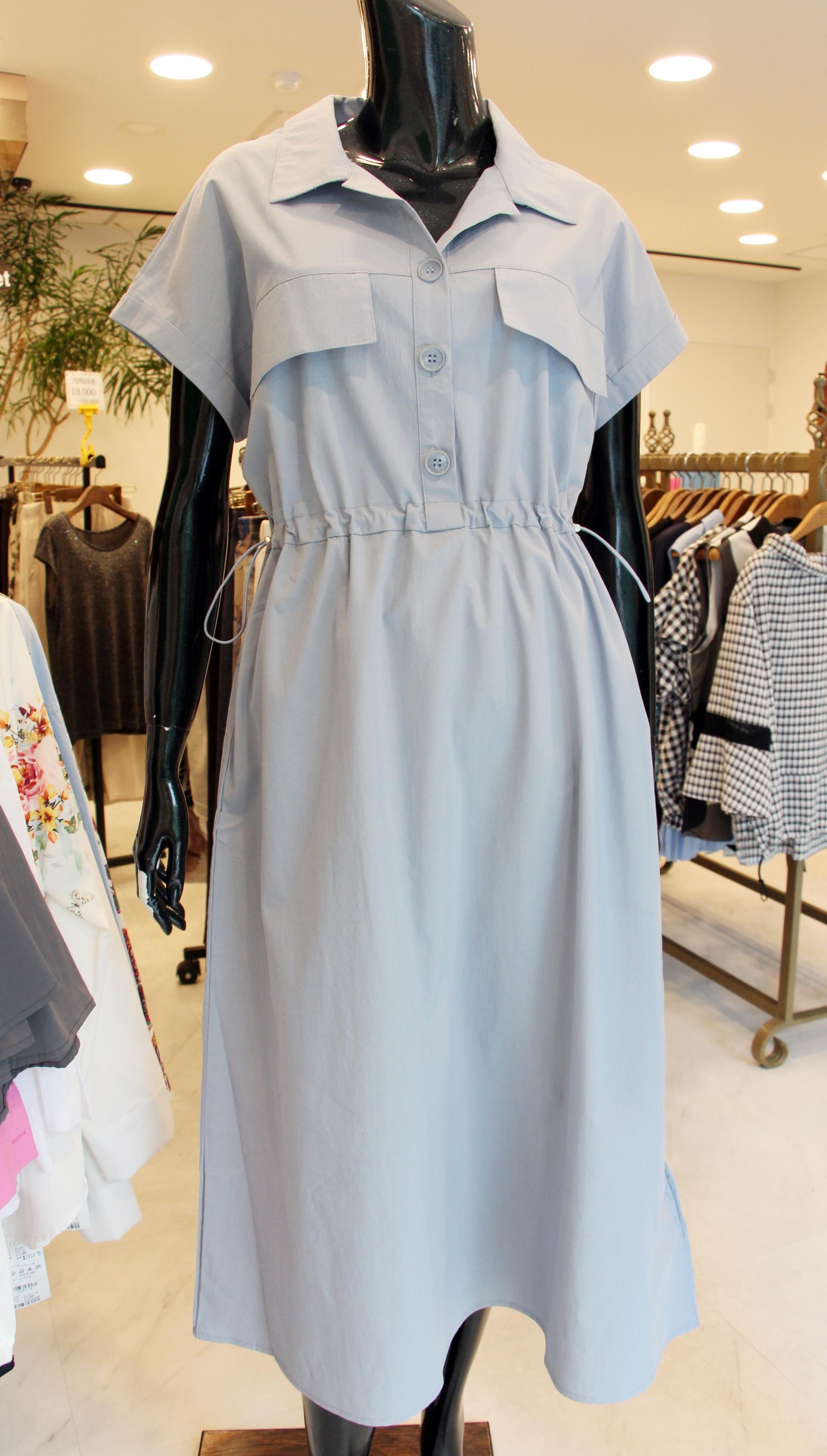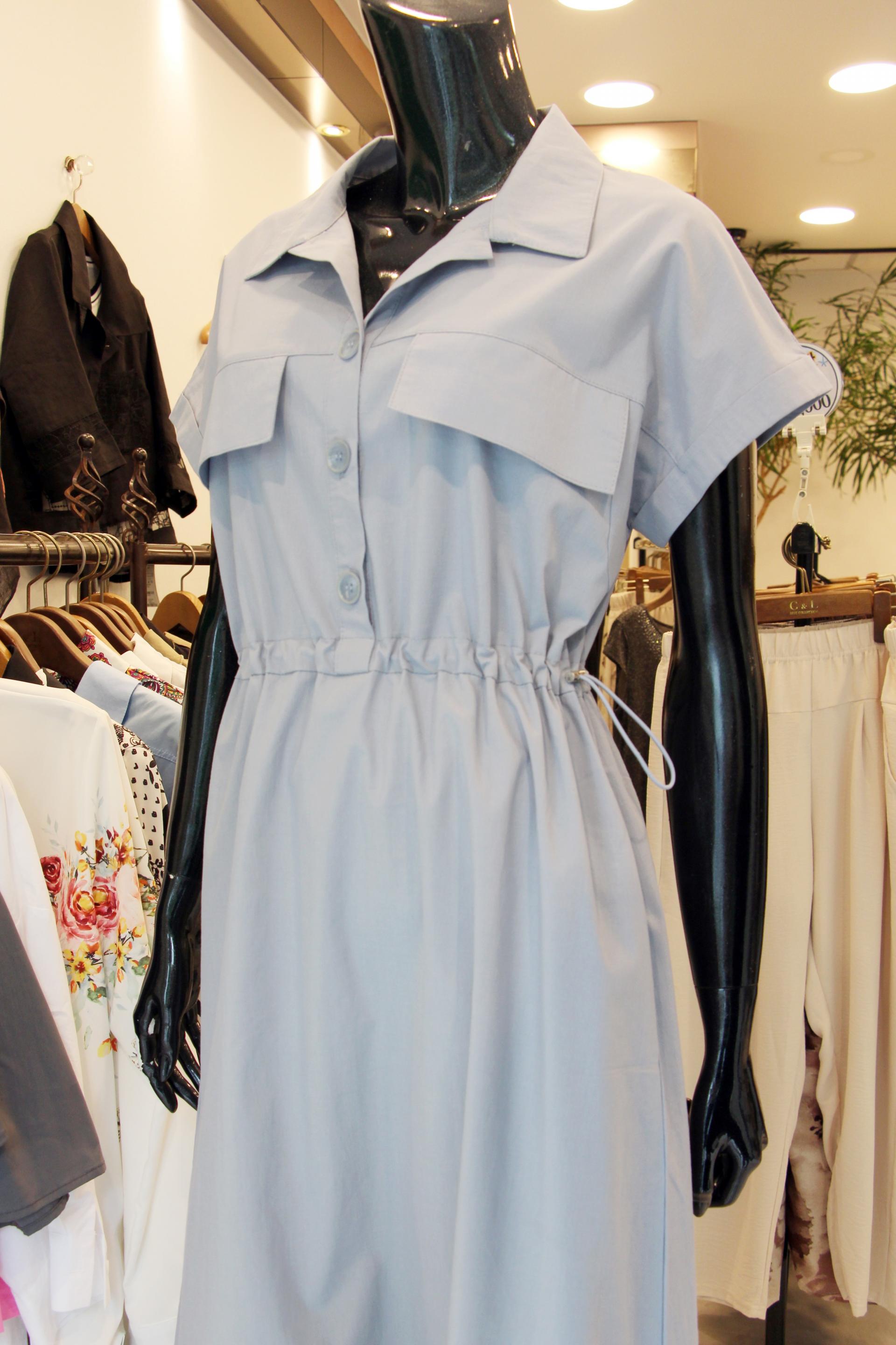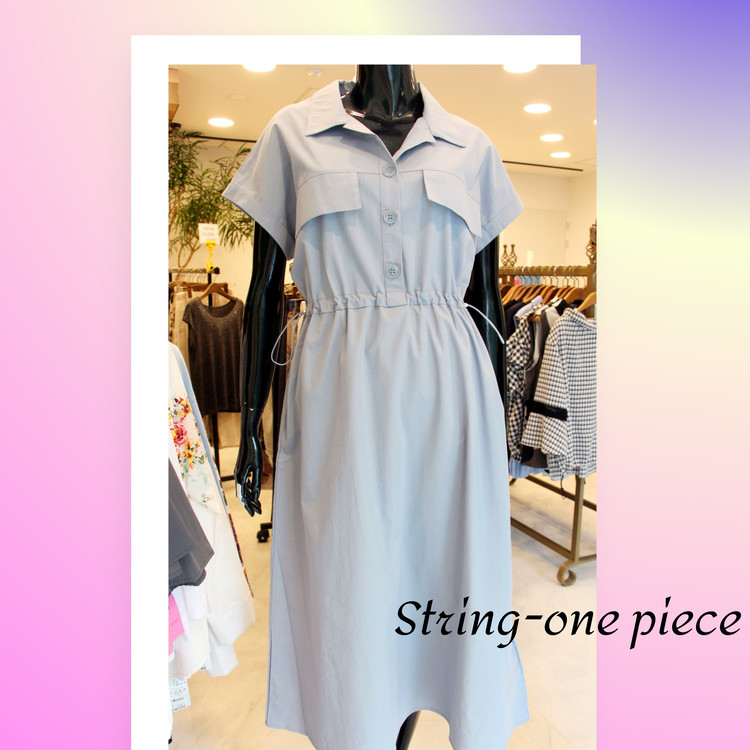 여름에 잘 어울리는 소라색의 허리 스트링 원피스