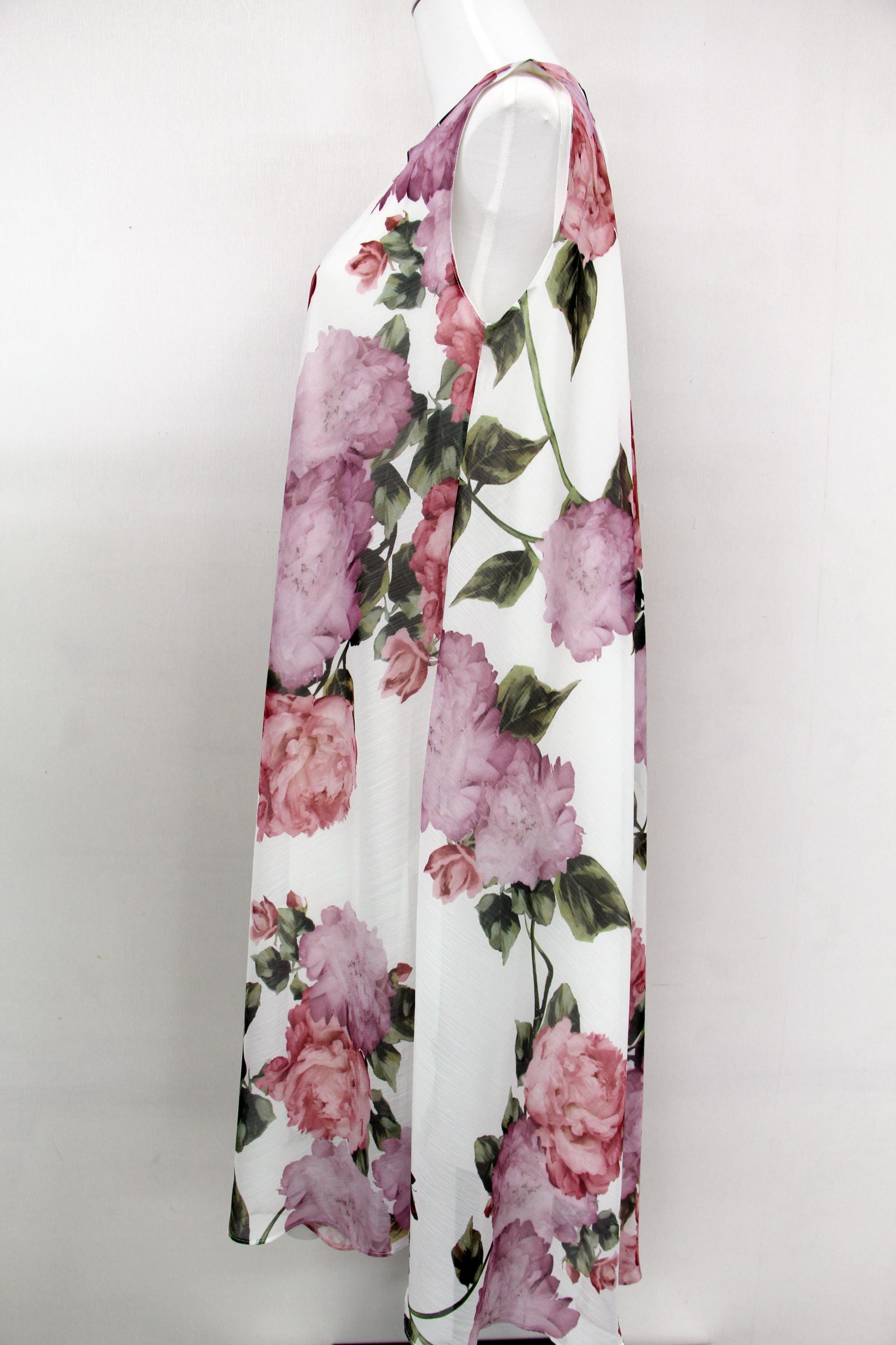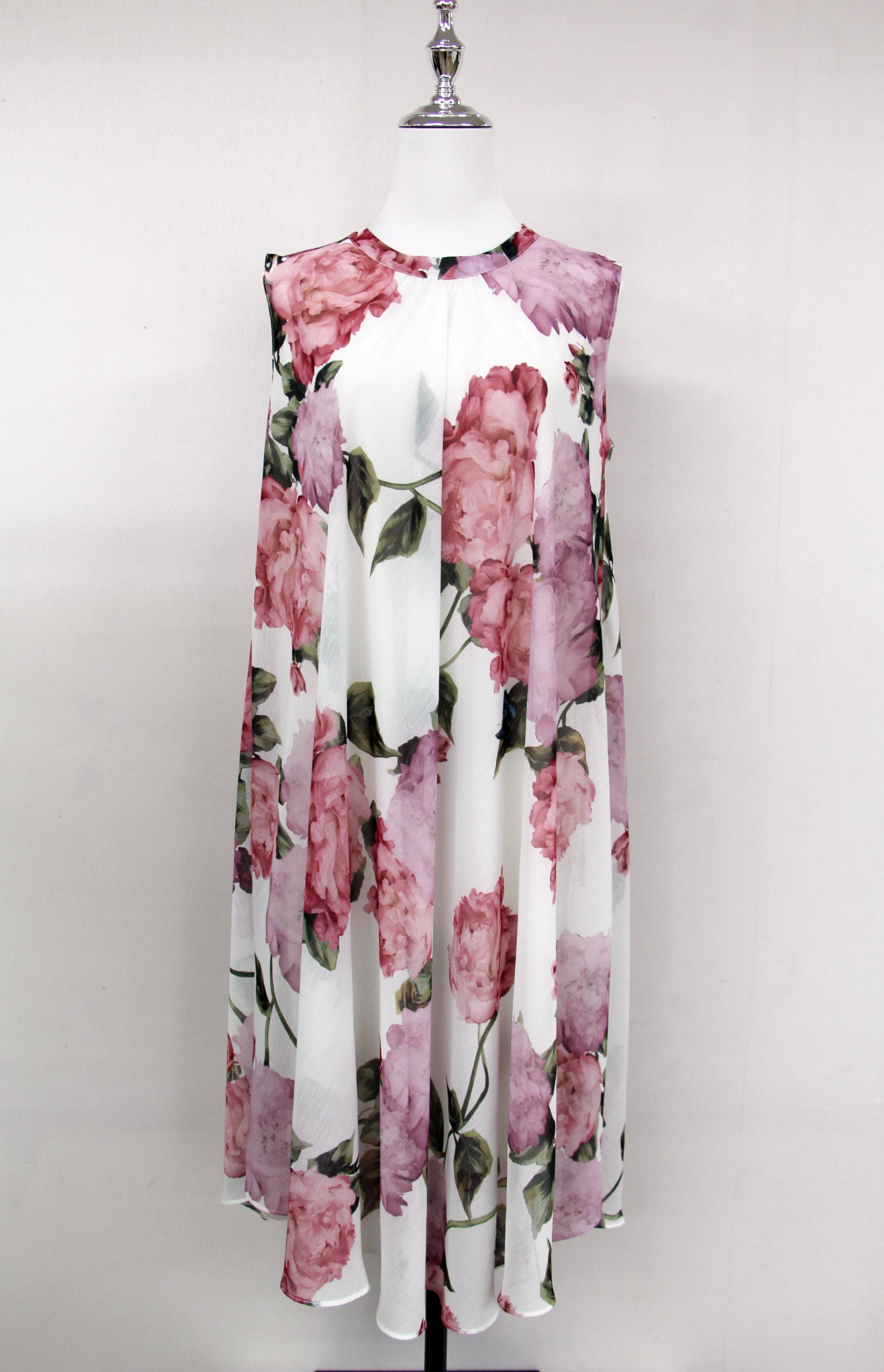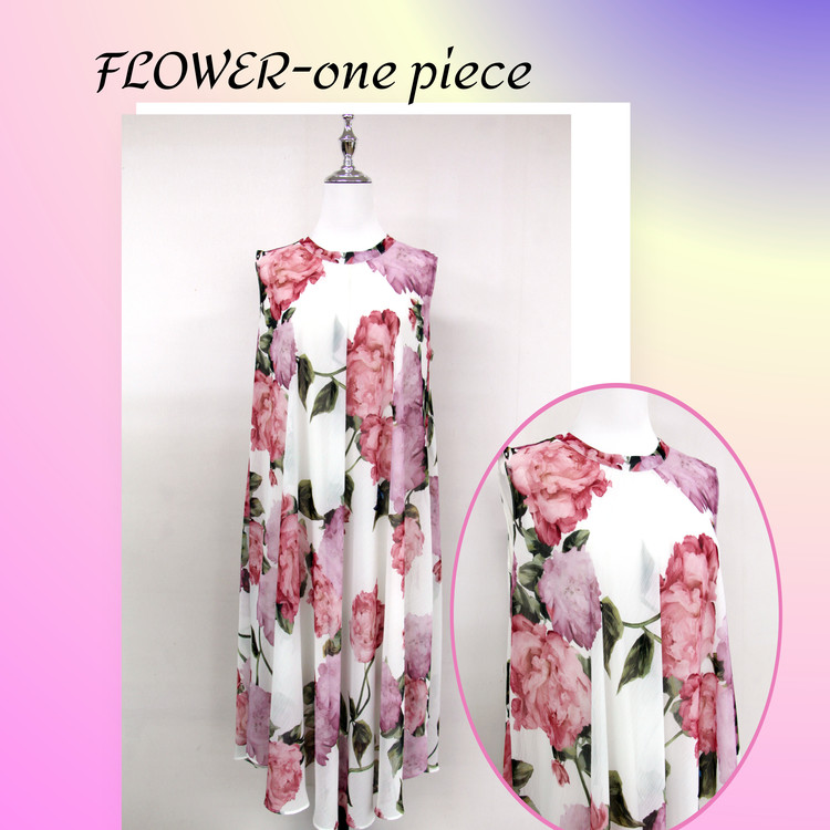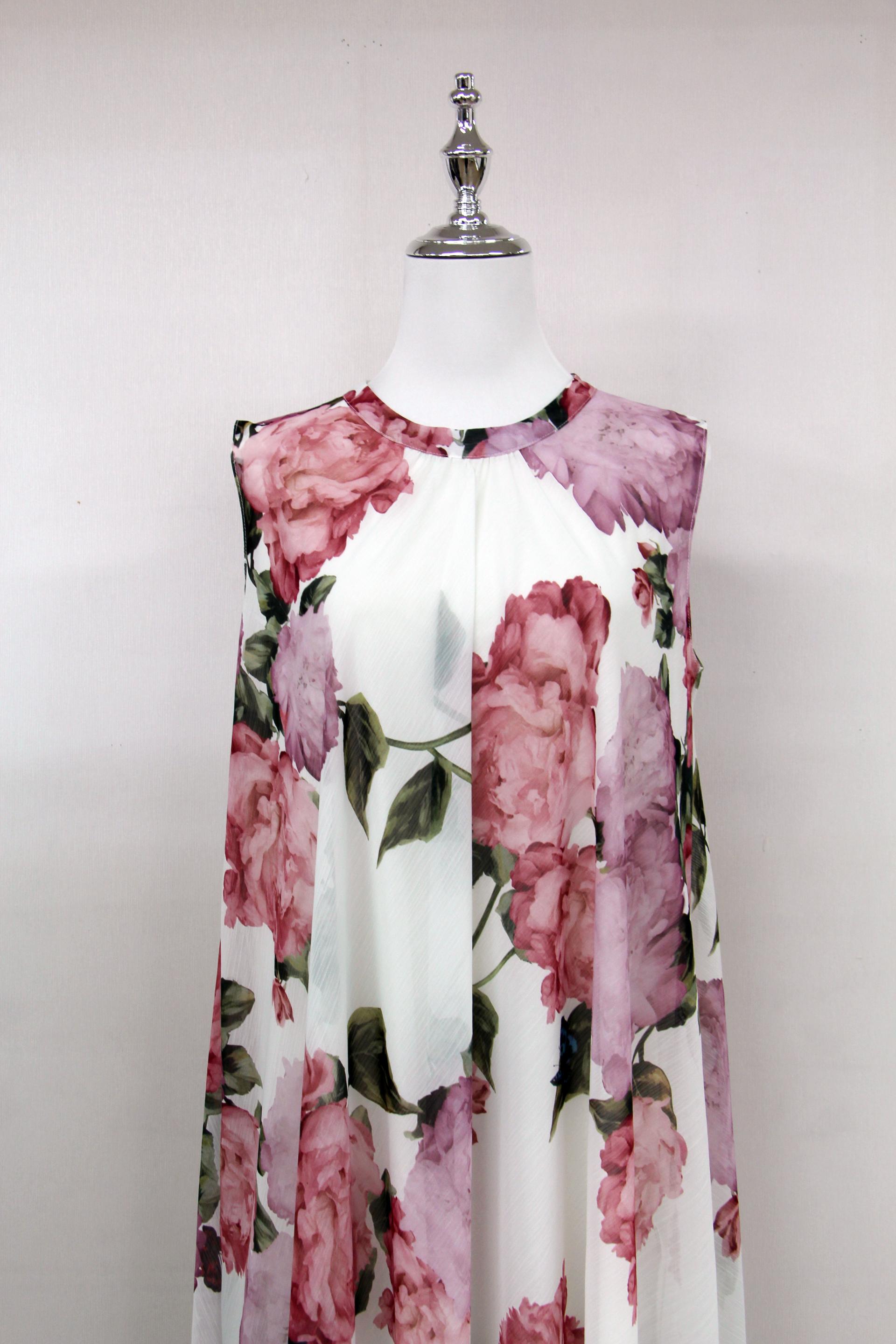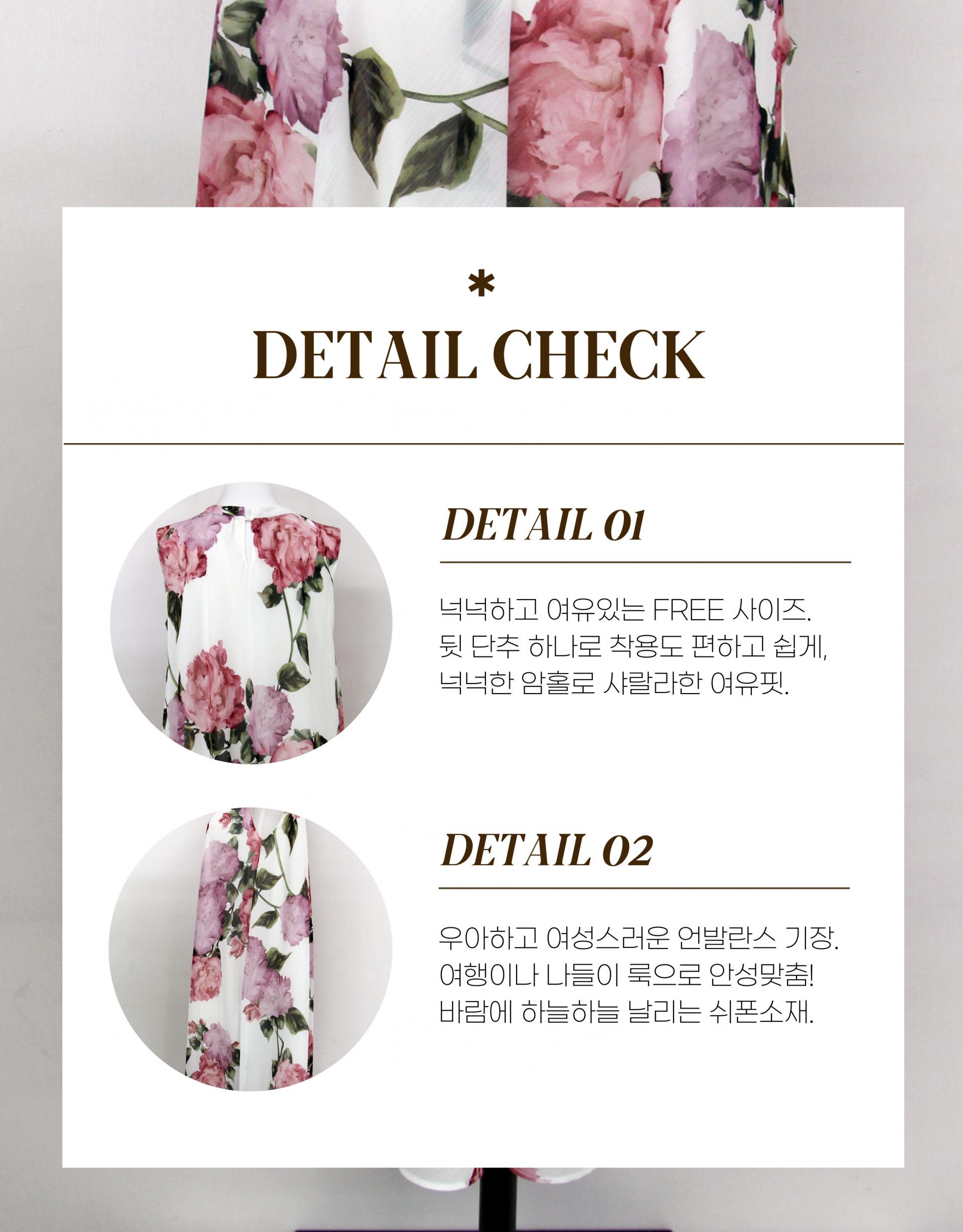 여성스럽고 잔잔한 플라워 무늬로 포인트를 준 민소매 쉬폰 원피스