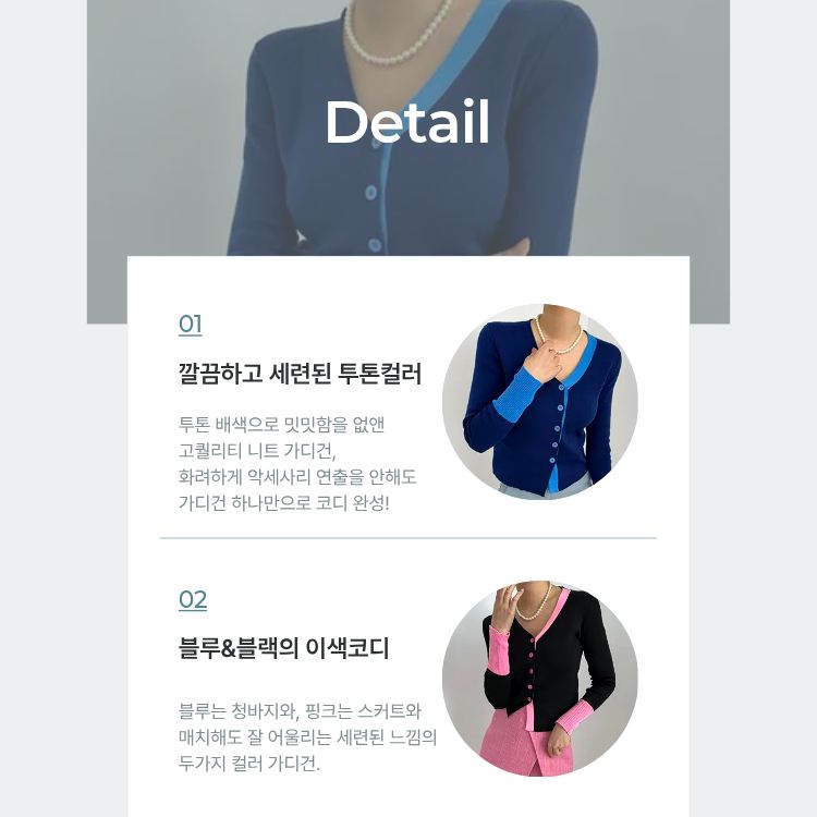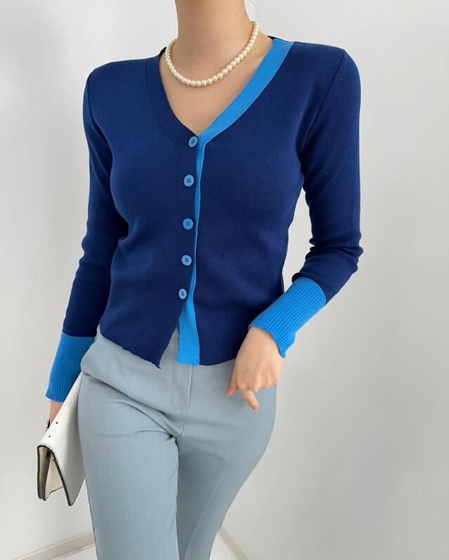 베이직하게 입기 좋은 슬림라인의 간절기 투톤 가디건