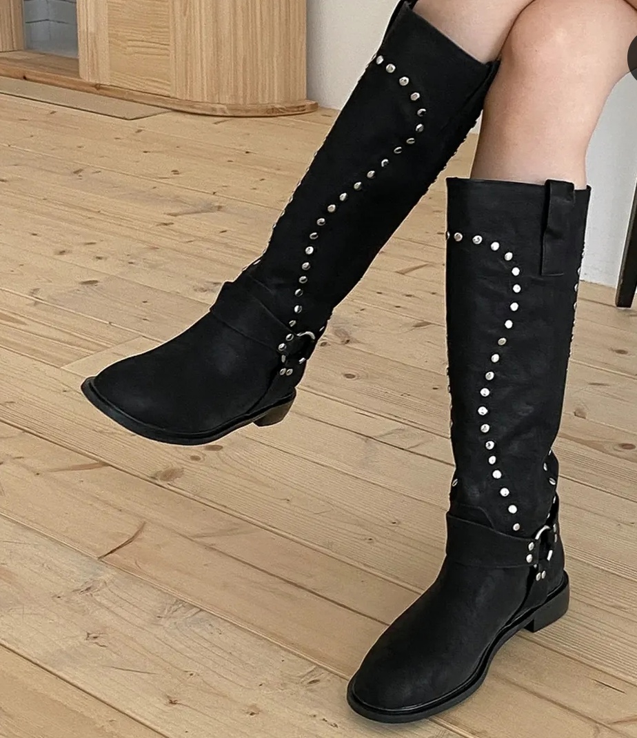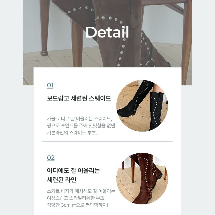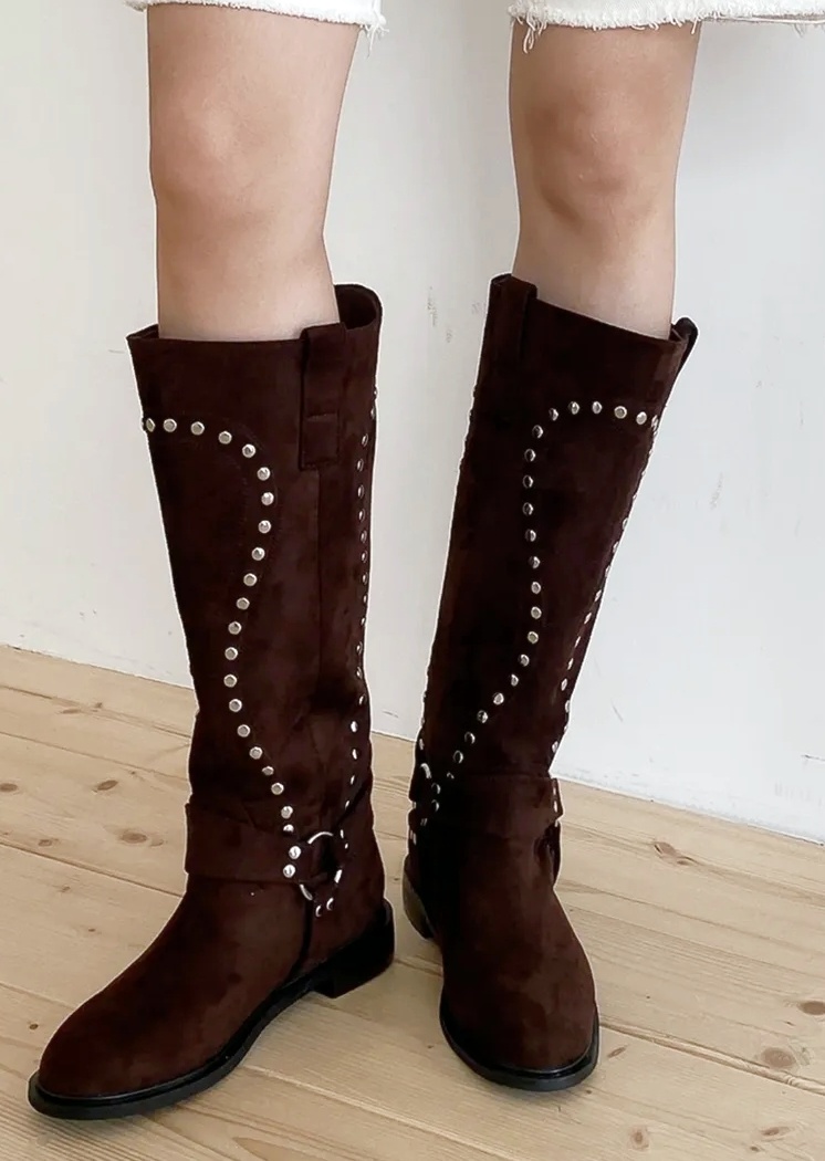 [샤린]스터드 스웨이드 롱부츠