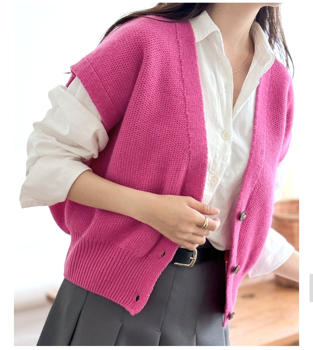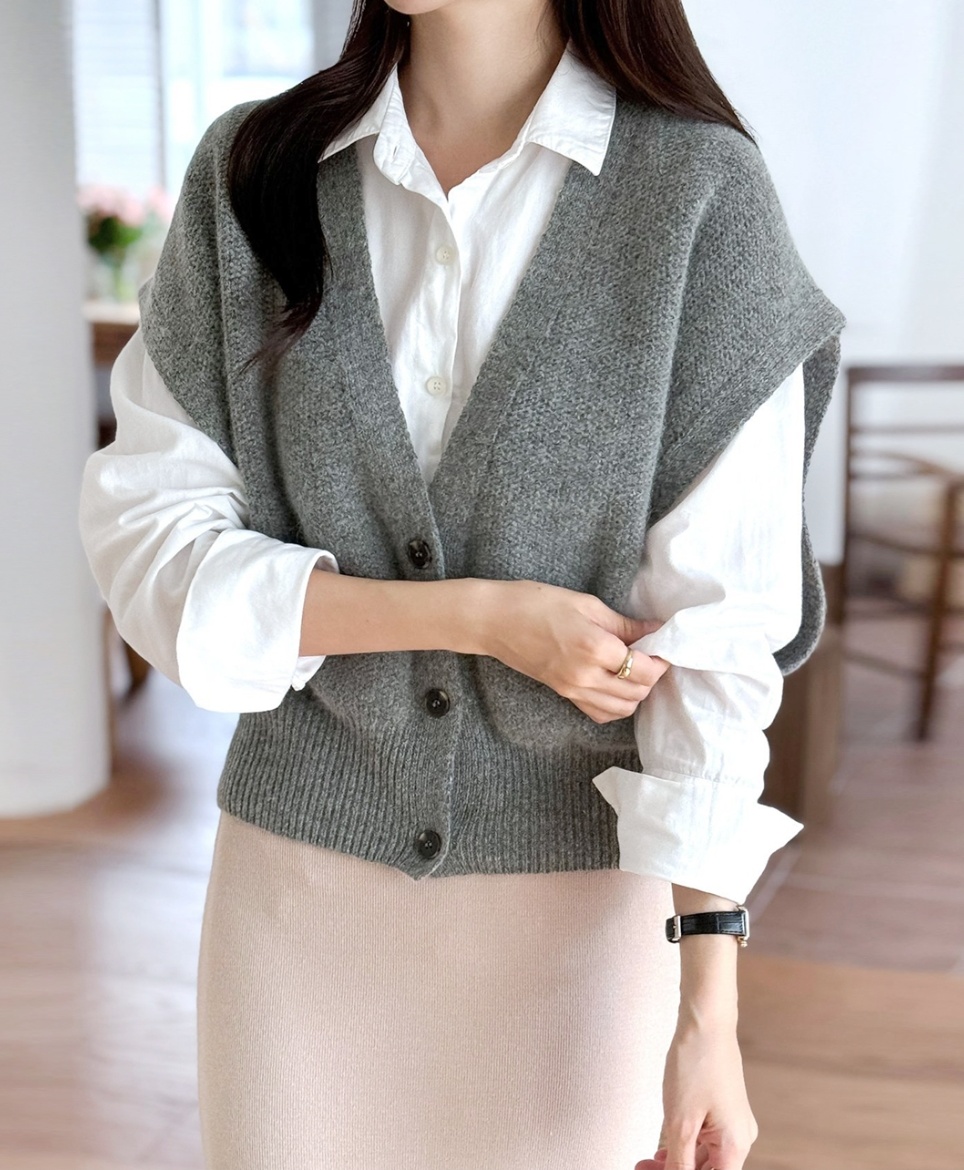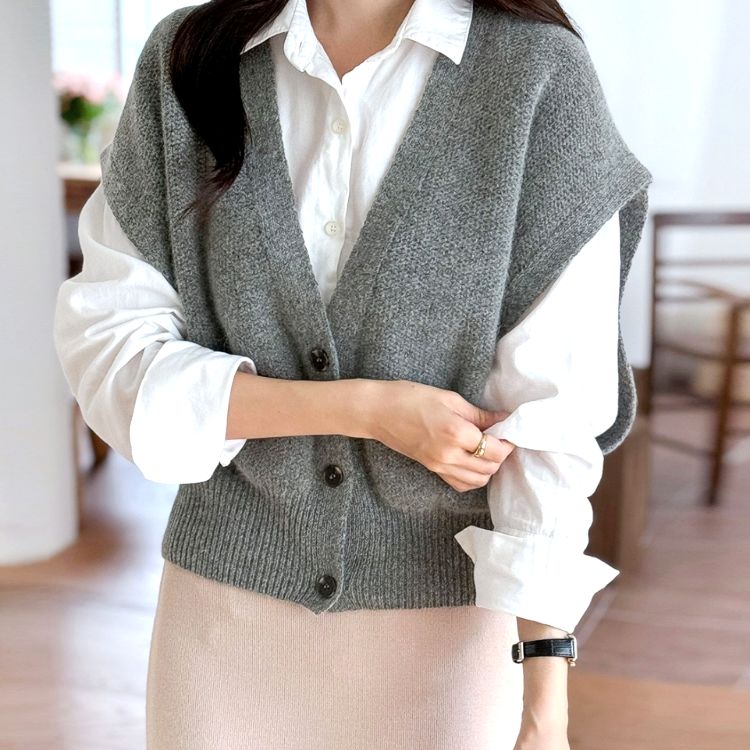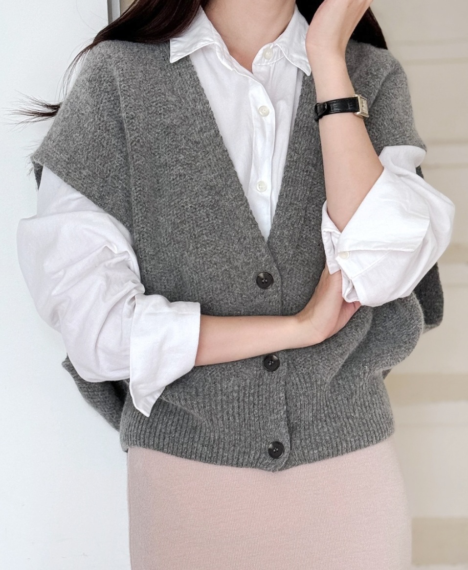 셔츠와 레이어드해서 입기 좋은 보드랍고 포근한 울 니트 조끼