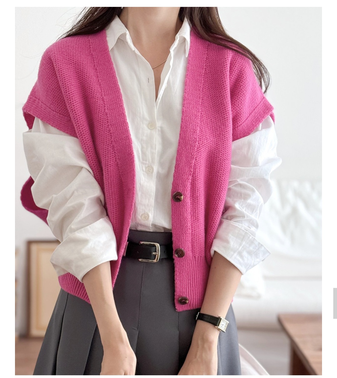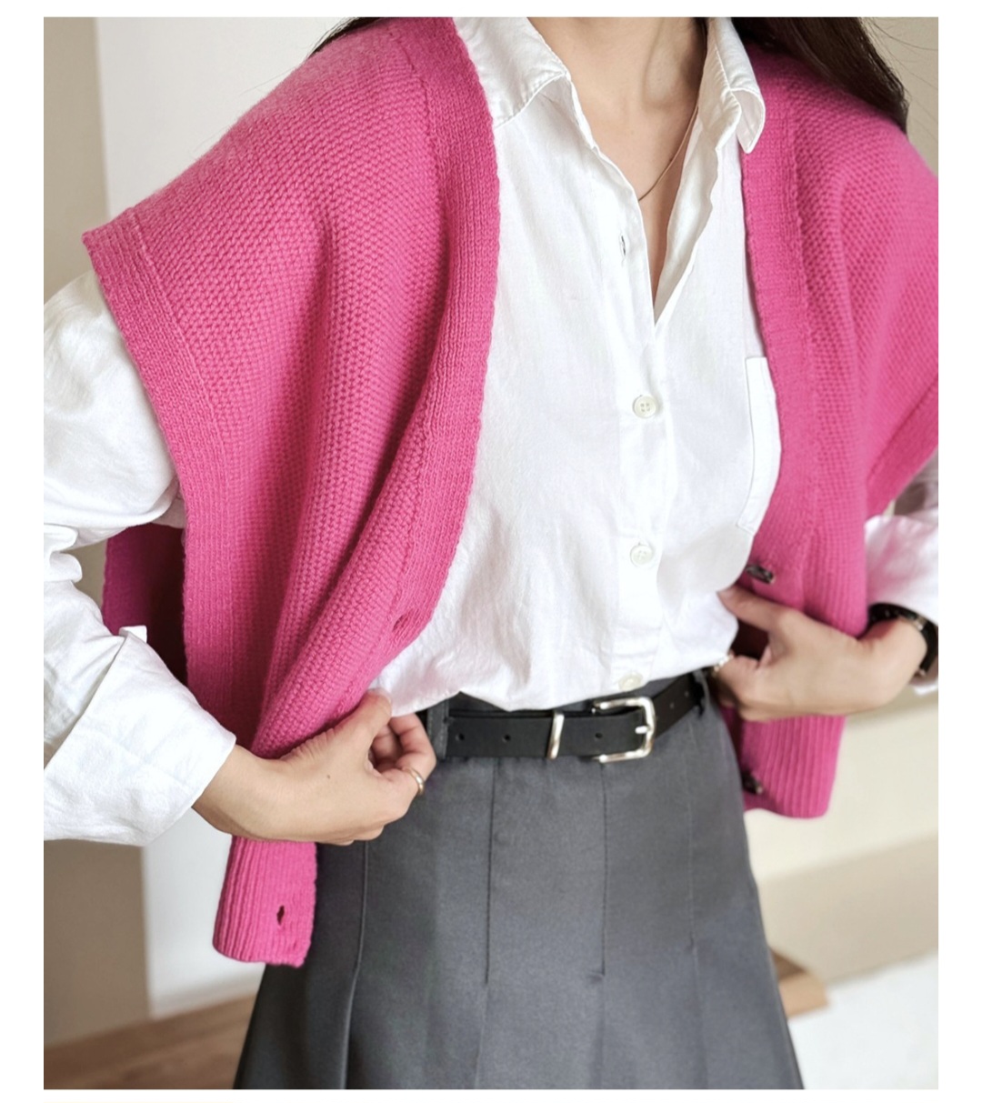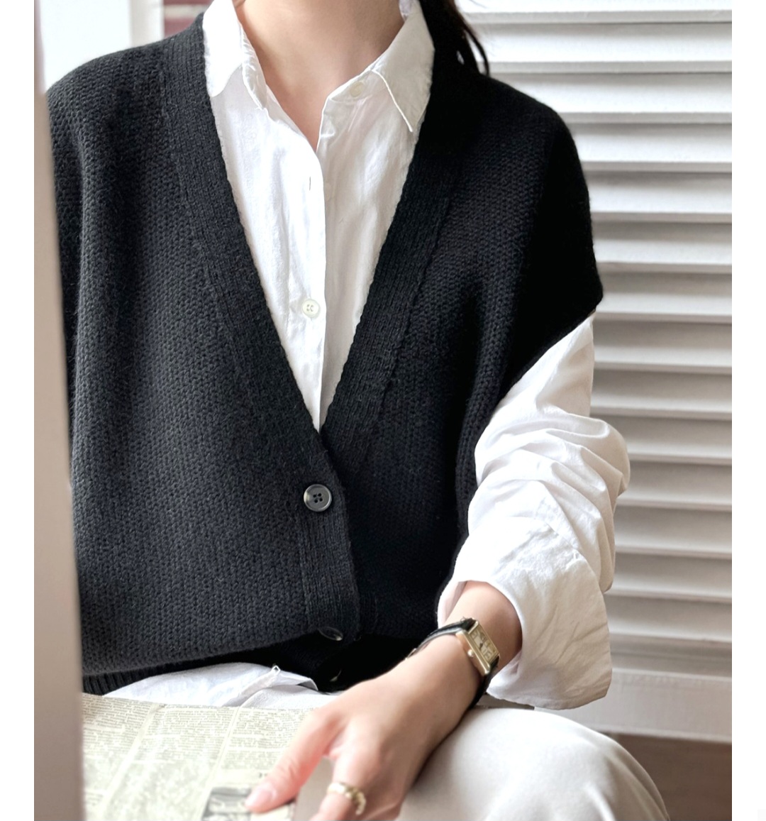 셔츠와 레이어드해서 입기 좋은 보드랍고 포근한 울 니트 조끼