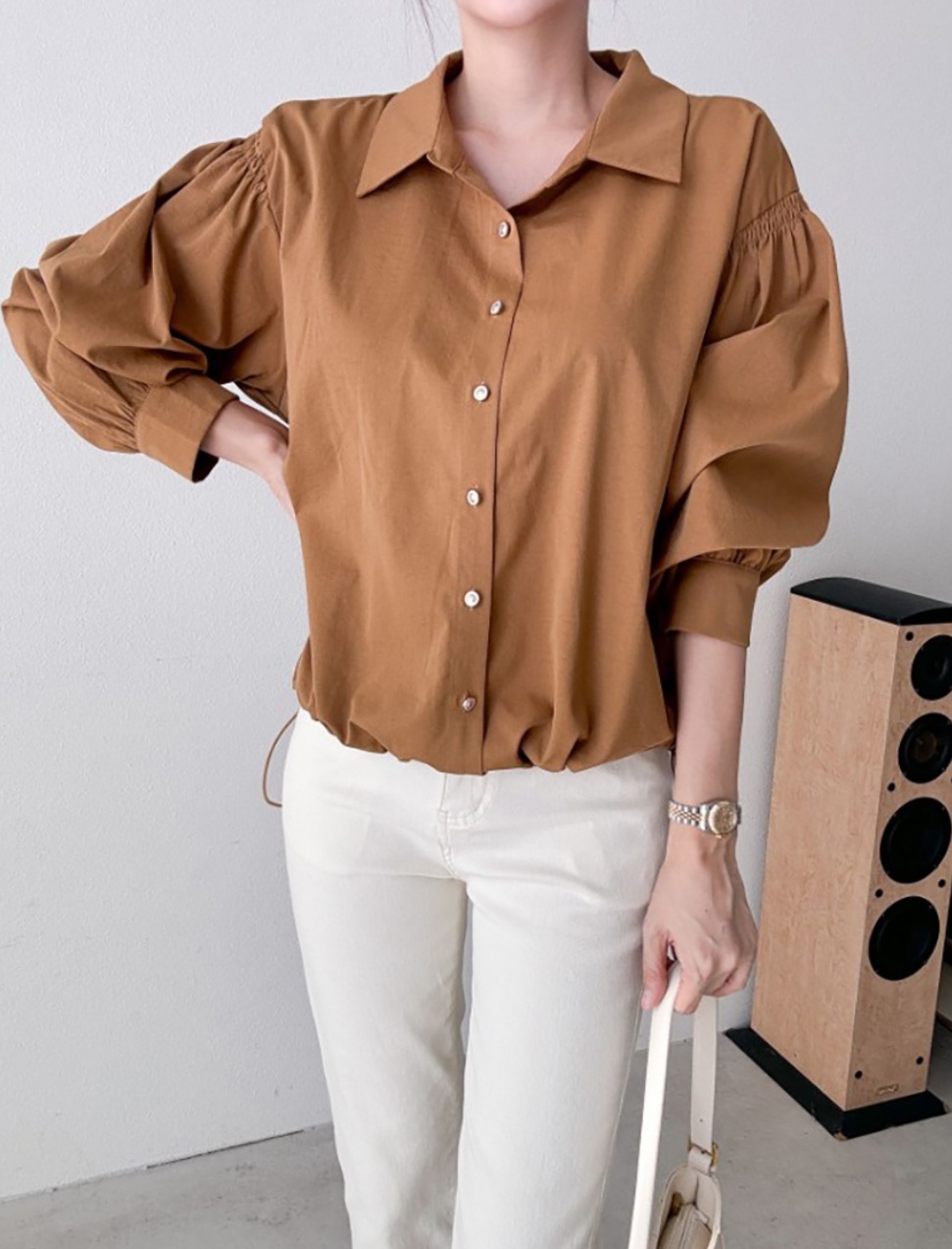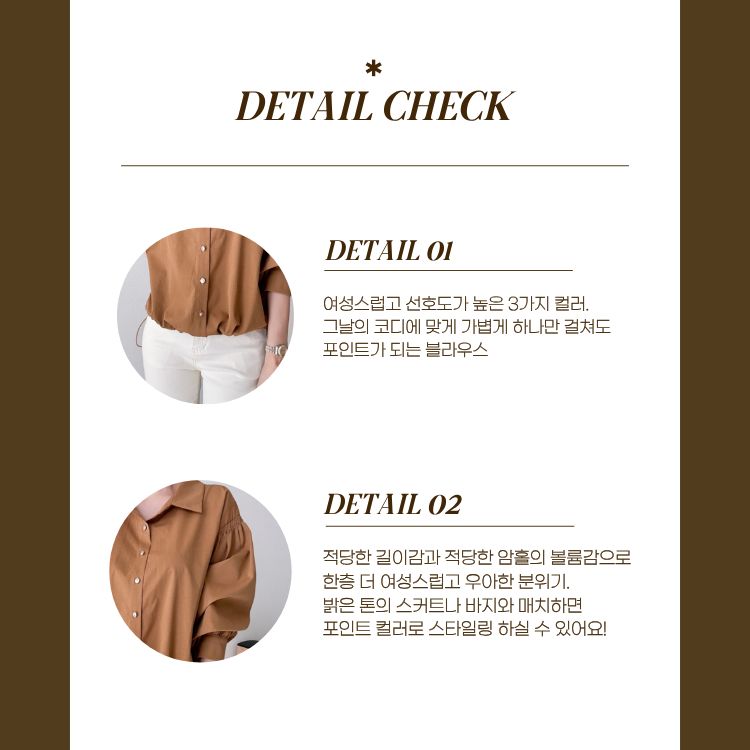 [씨엔엘]소매셔링 블라우스