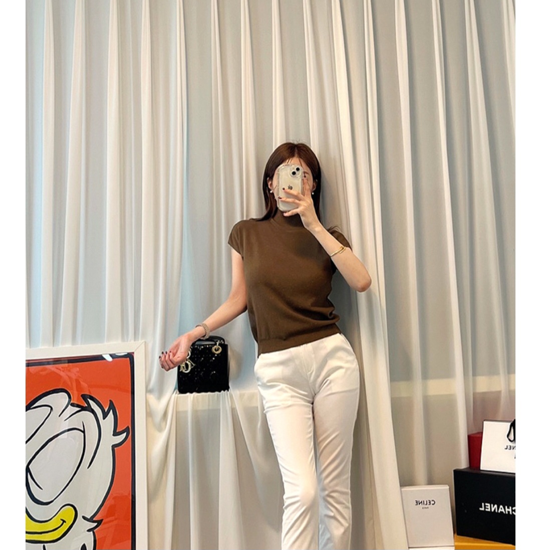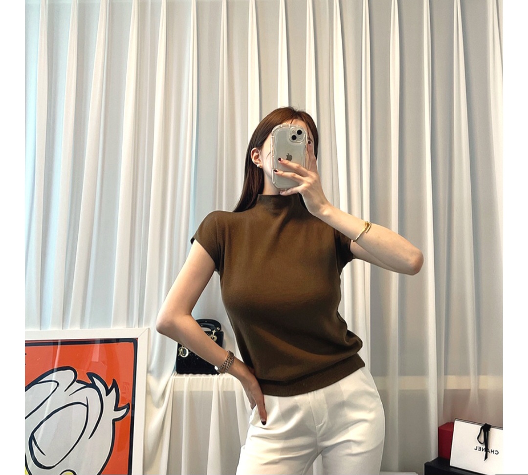 간절기 데일리로 입기 좋은 슬리브 반목 니트