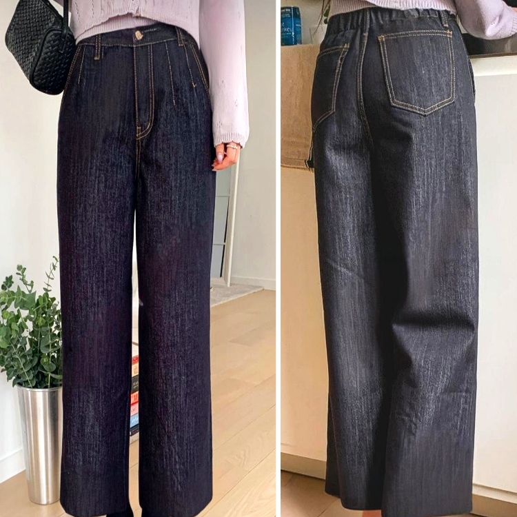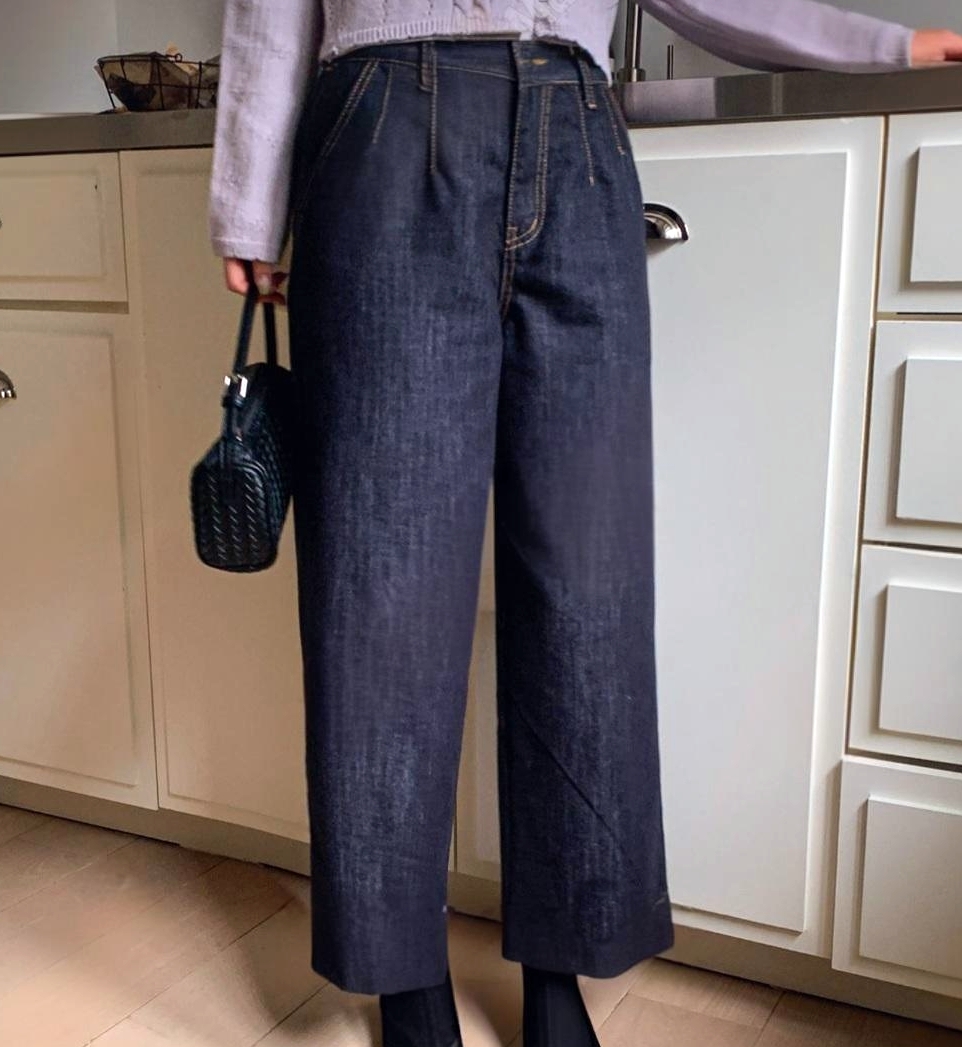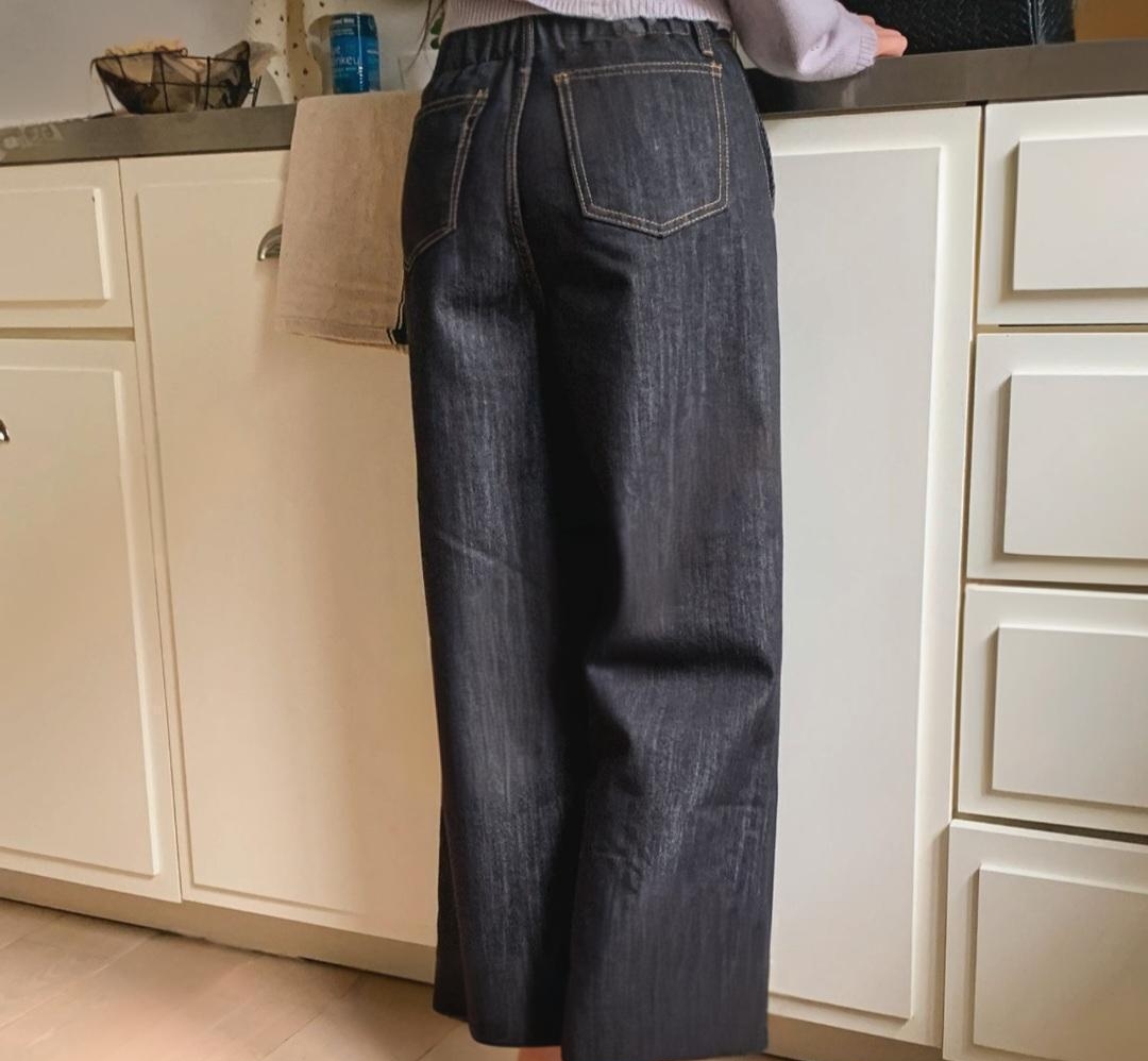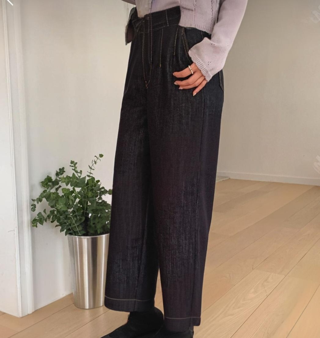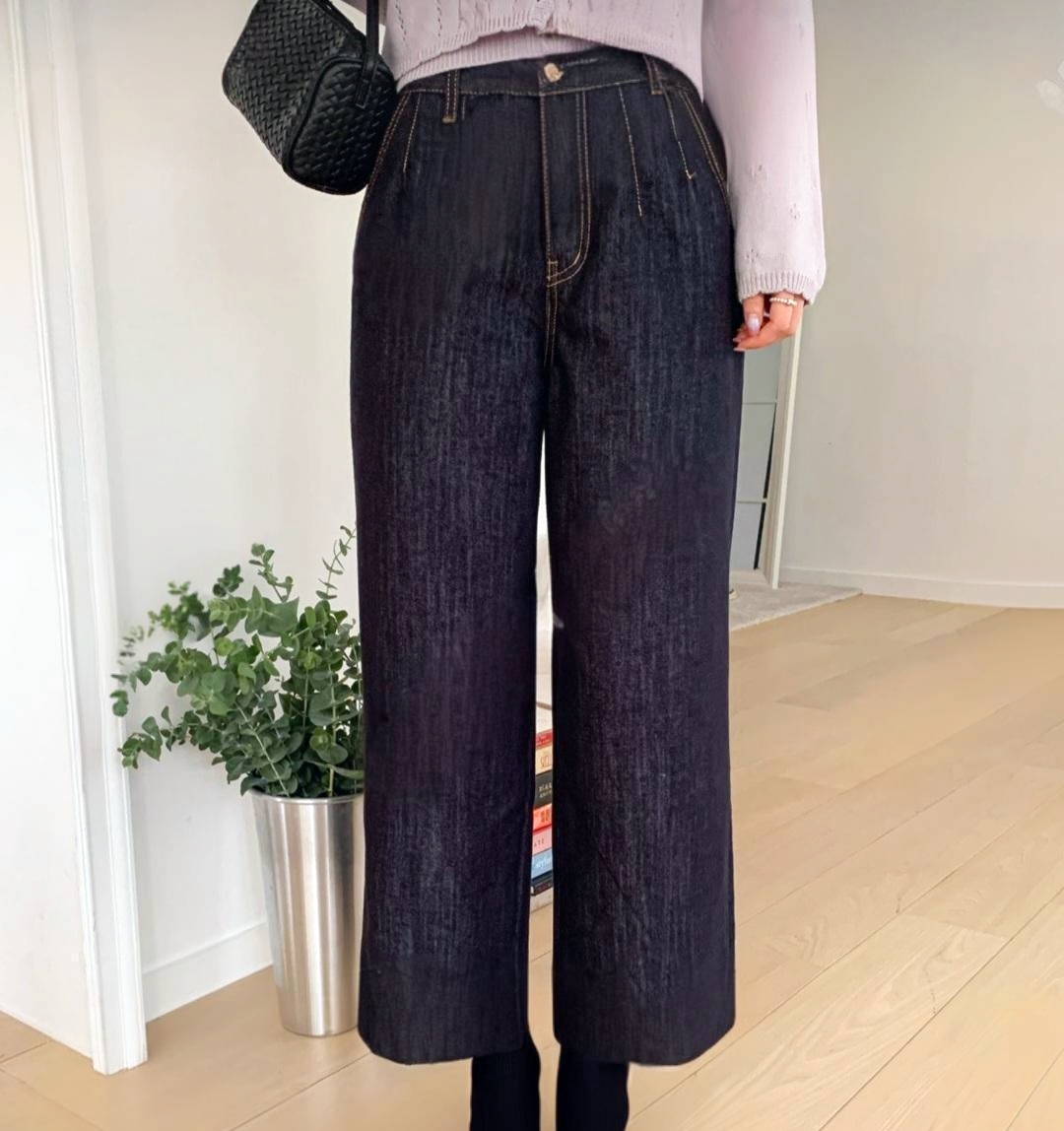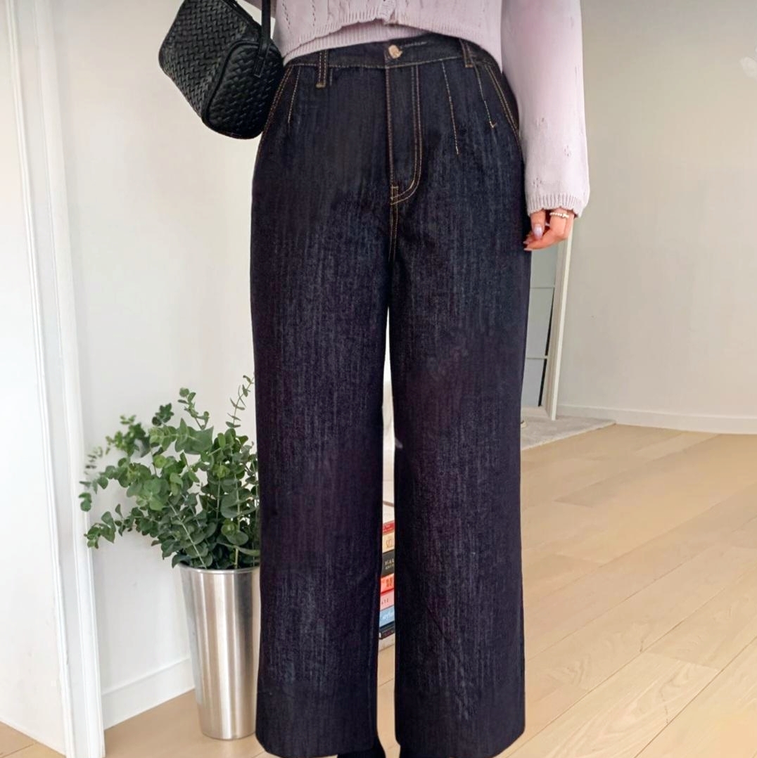 100% 면소재와 짙은 컬러감으로 한층 더 세련된 와이드 데님 팬츠