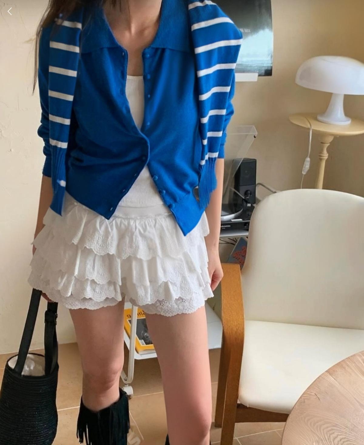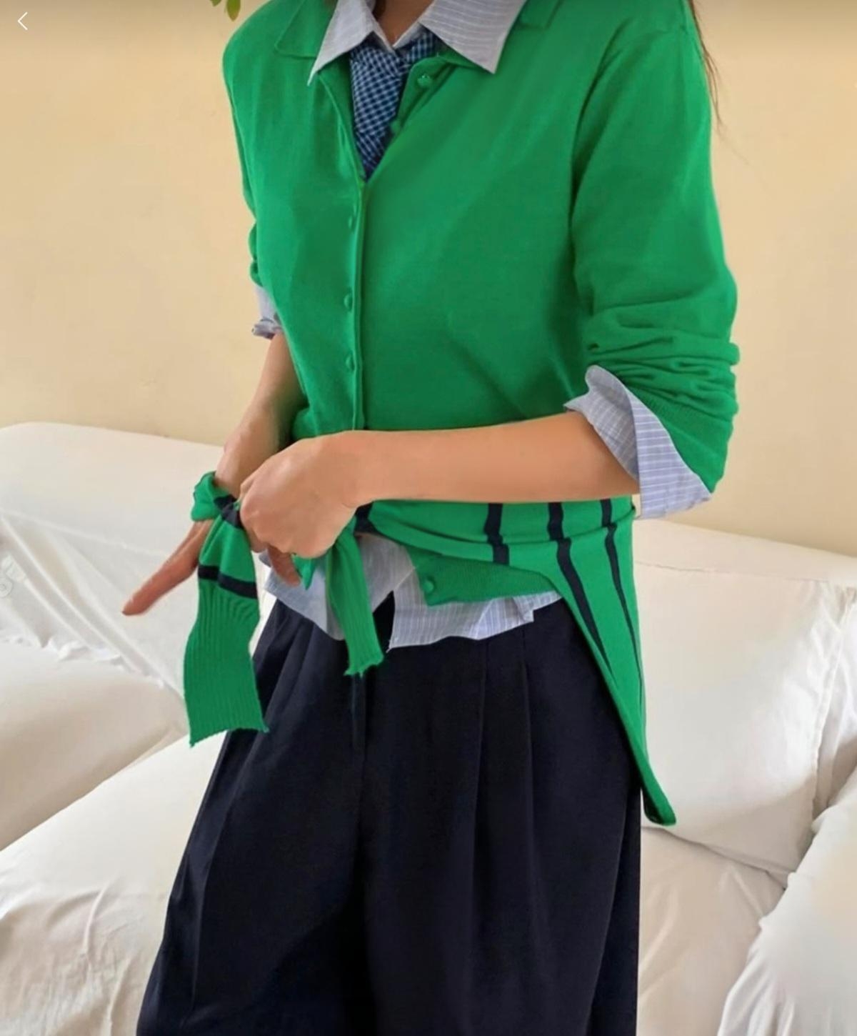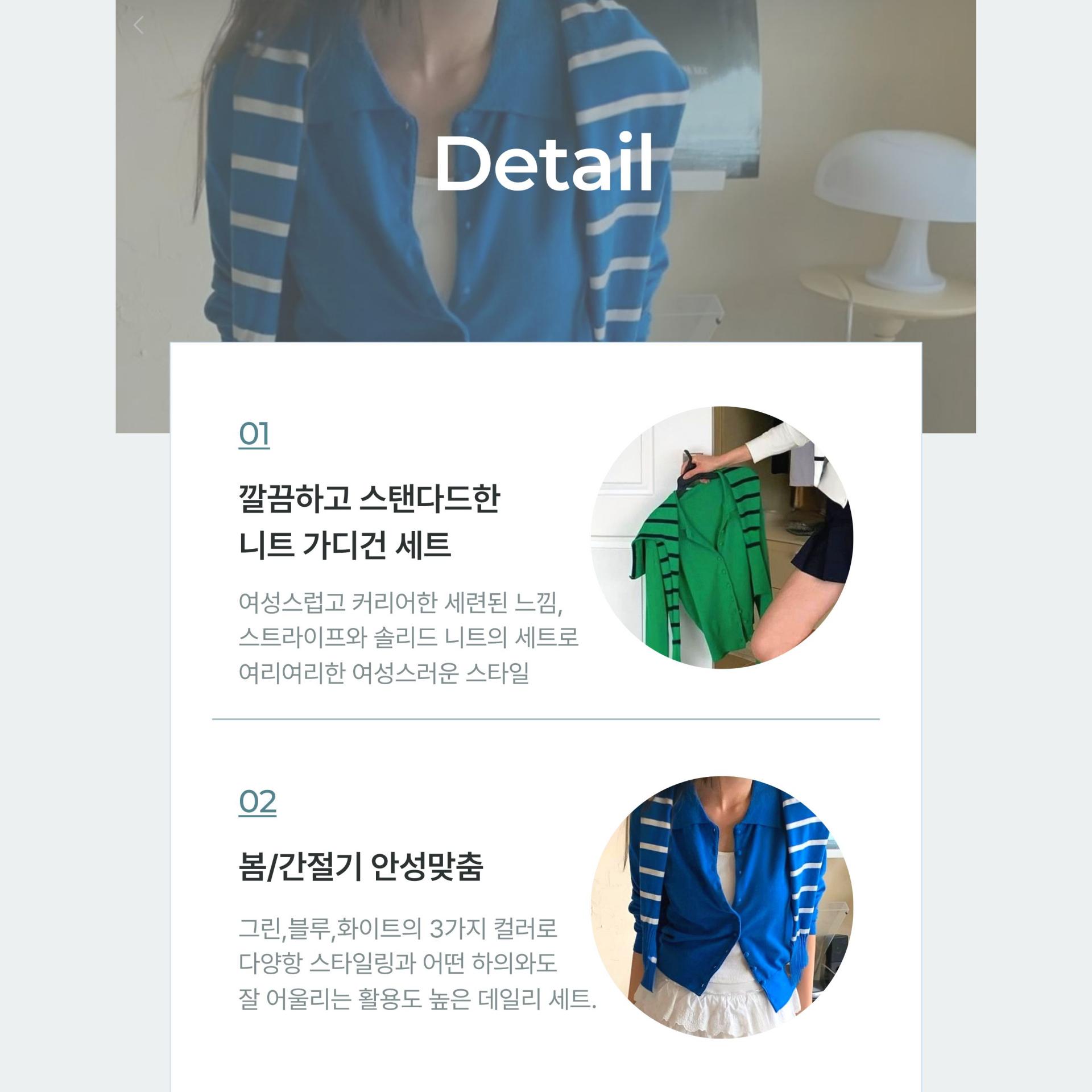 화이트,블루,그린의 이색적인 컬러로 포인트를 준 케이프 가디건 세트
