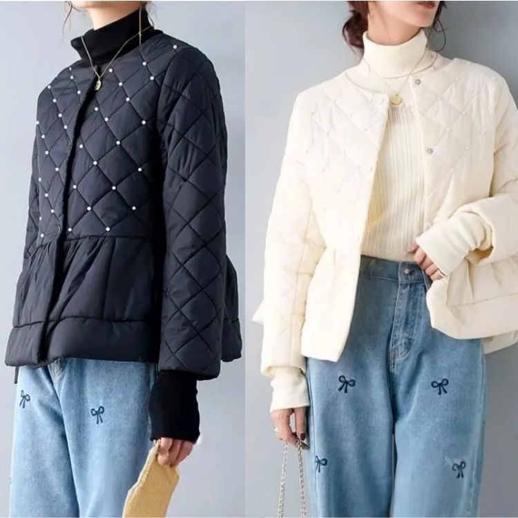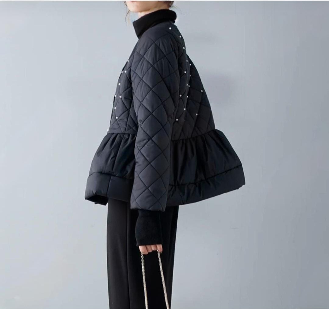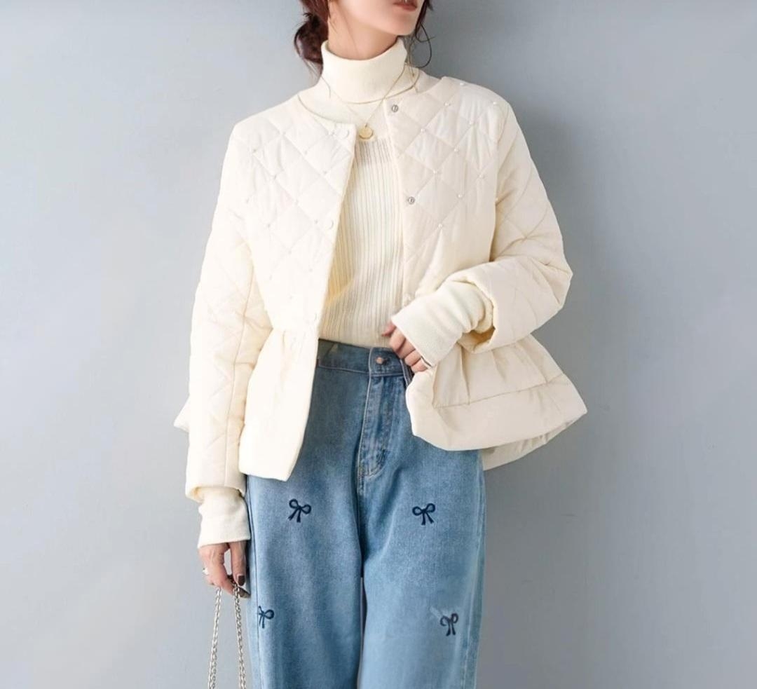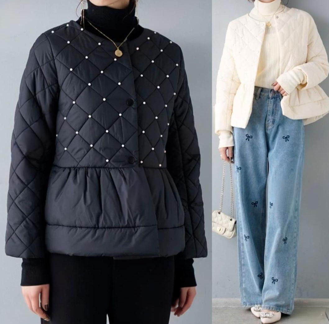 고급스러운 진주 장식의 누빔 패딩 자켓
