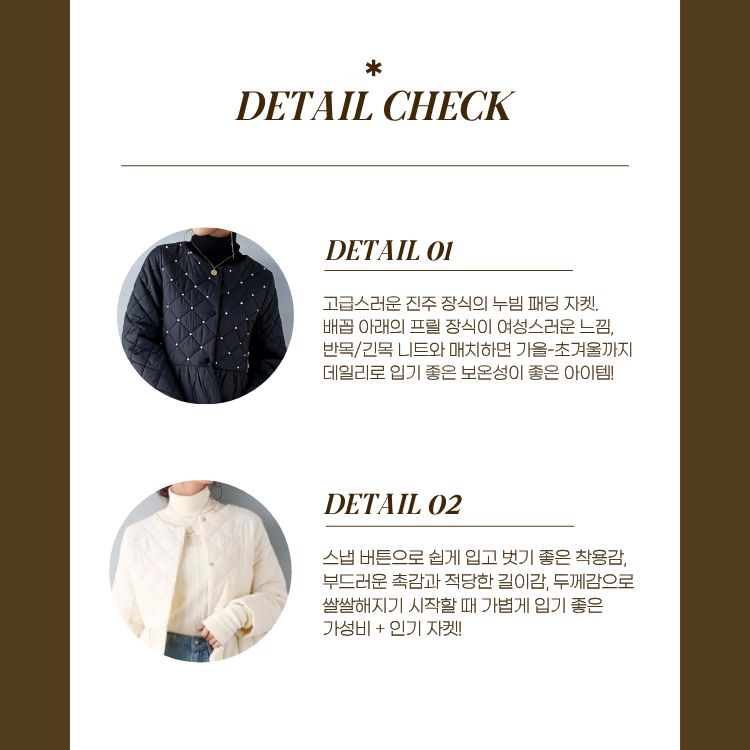[씨엔엘]진주장식 누빔 패딩자켓