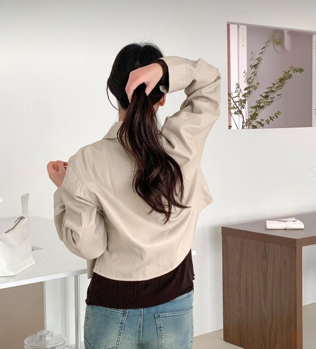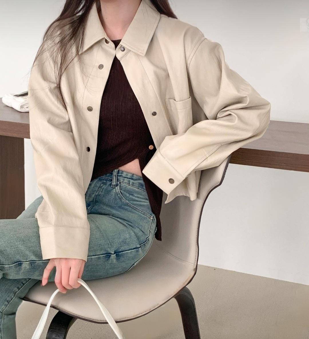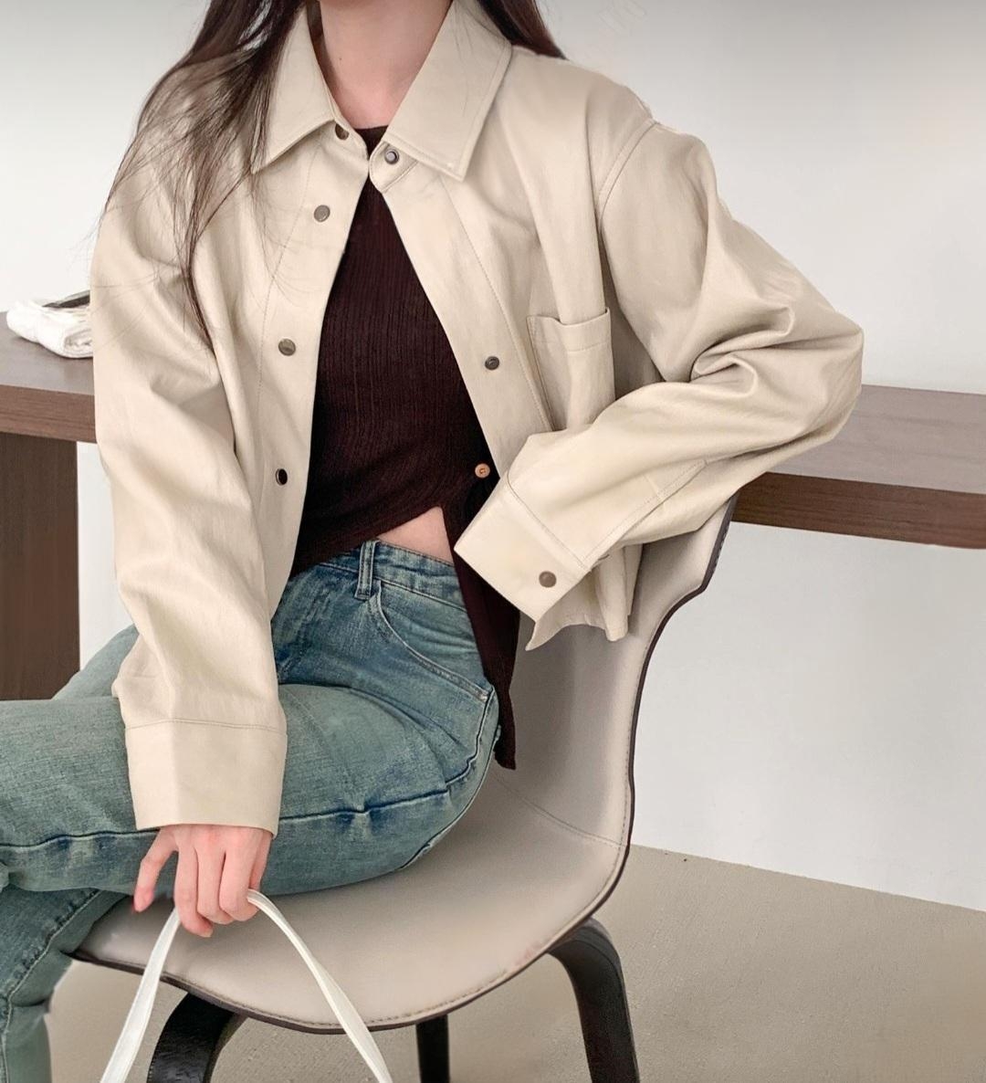 포멀하고 여성스러운 캐주얼라인 레더 자켓.