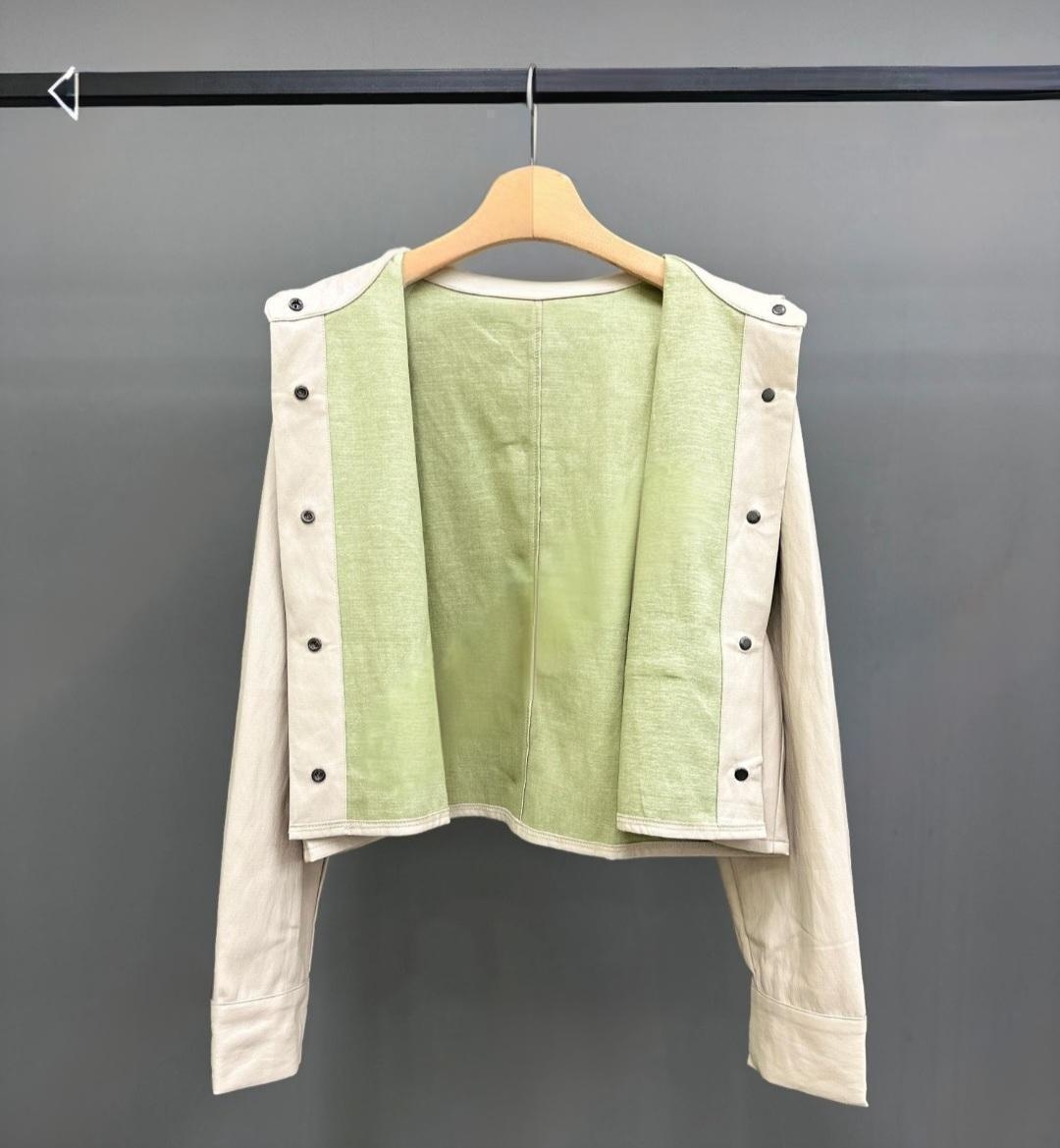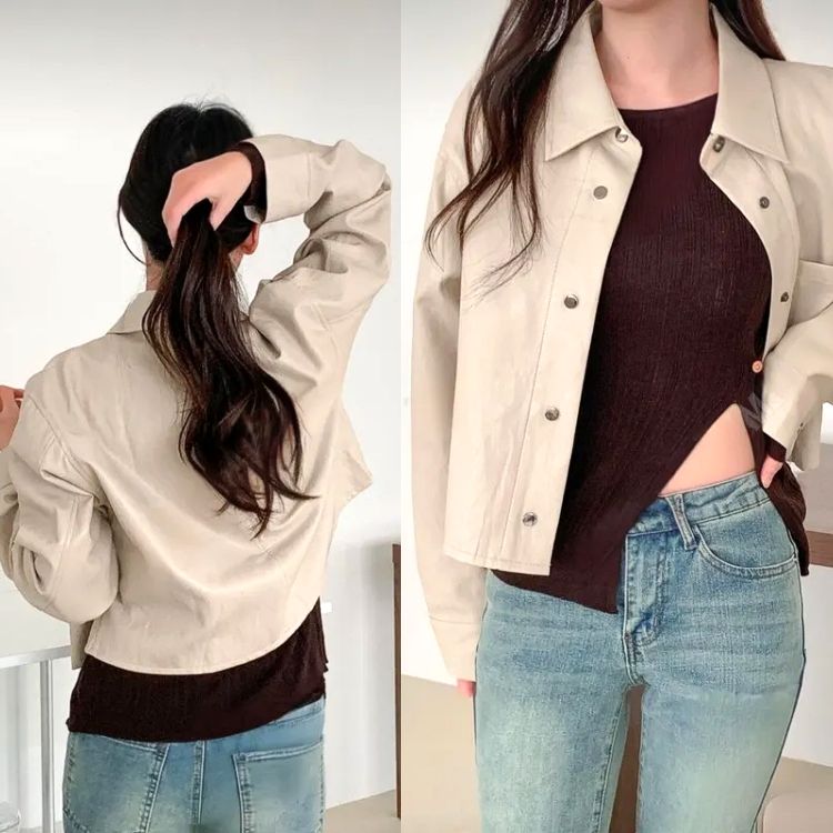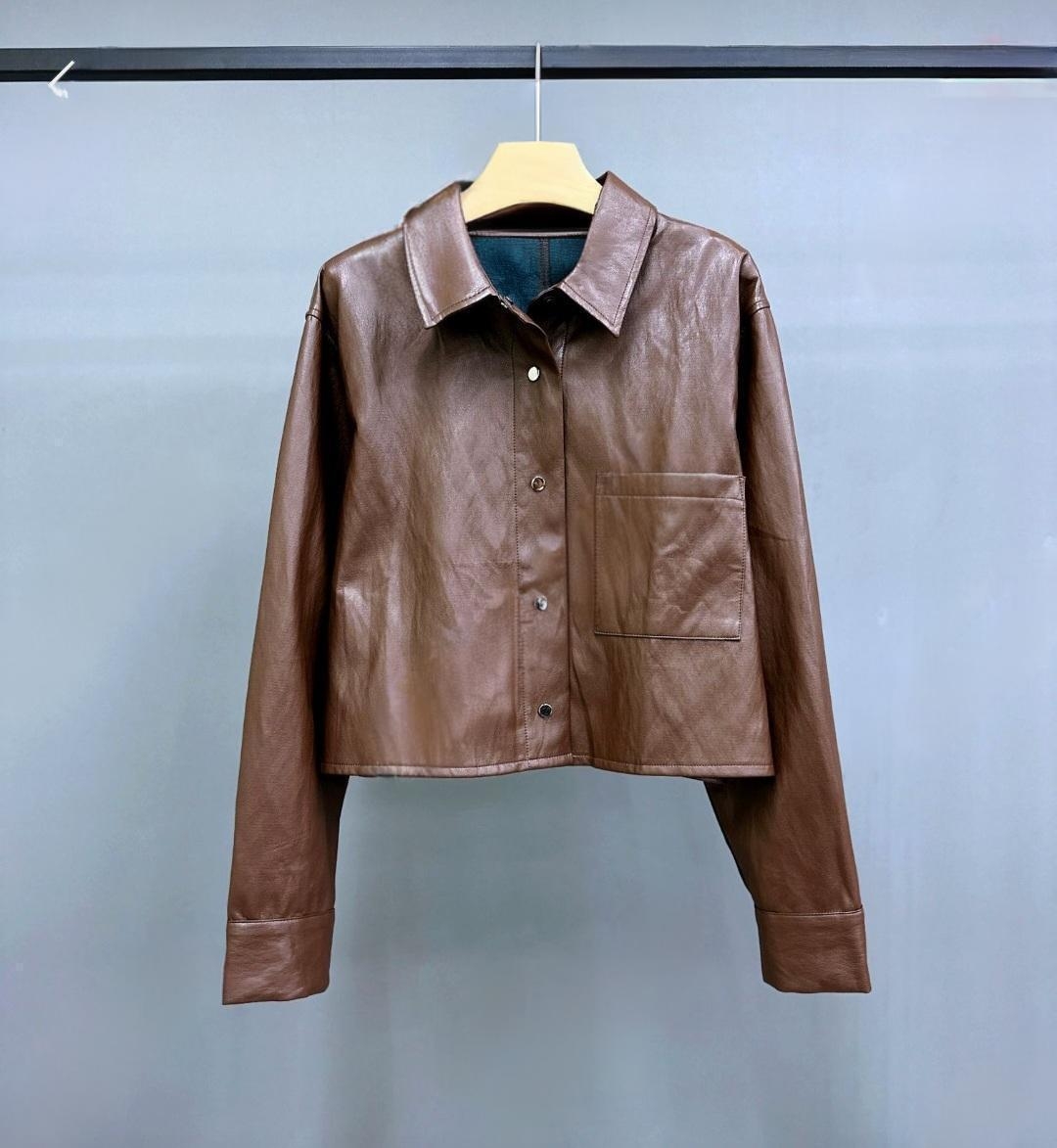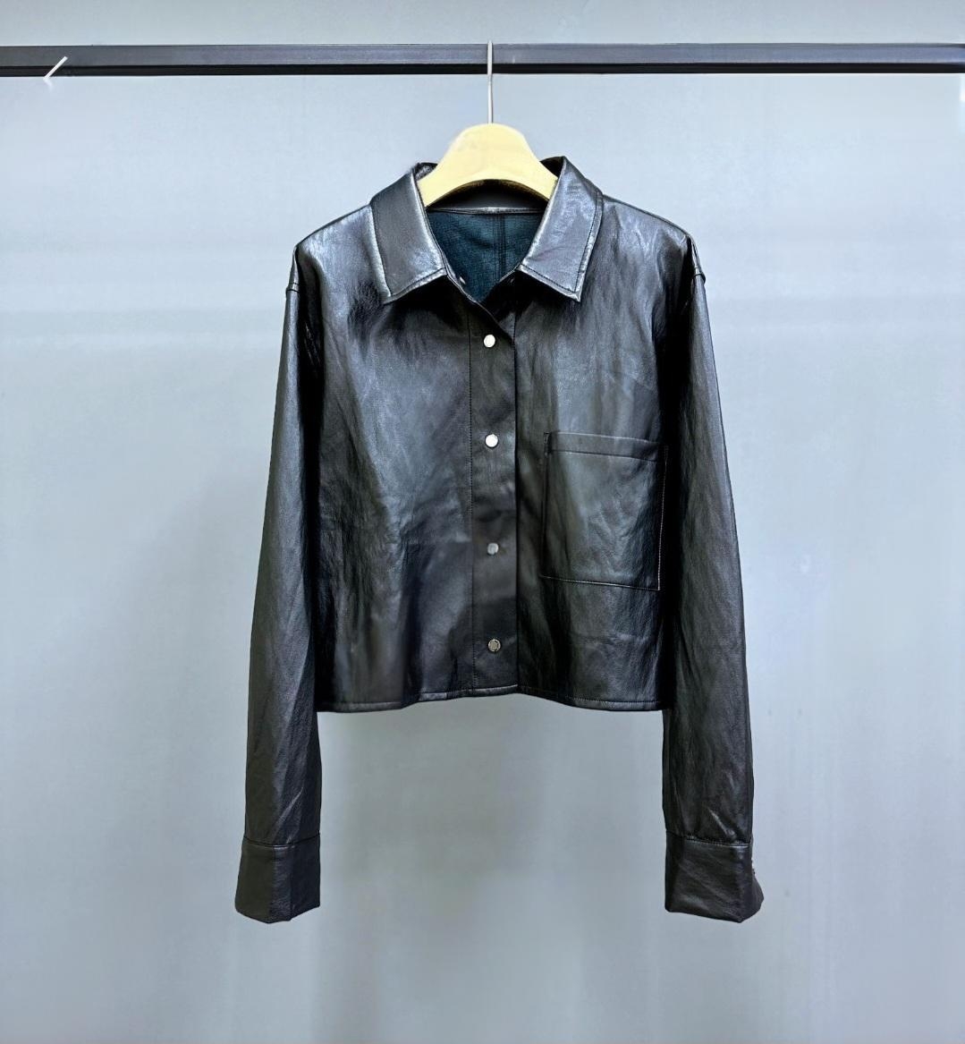 포멀하고 여성스러운 캐주얼라인 레더 자켓.