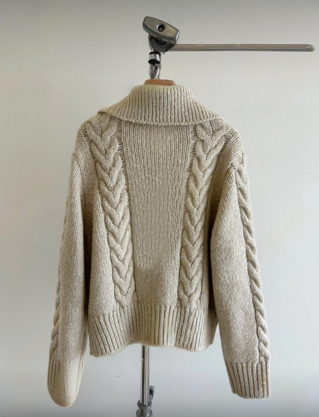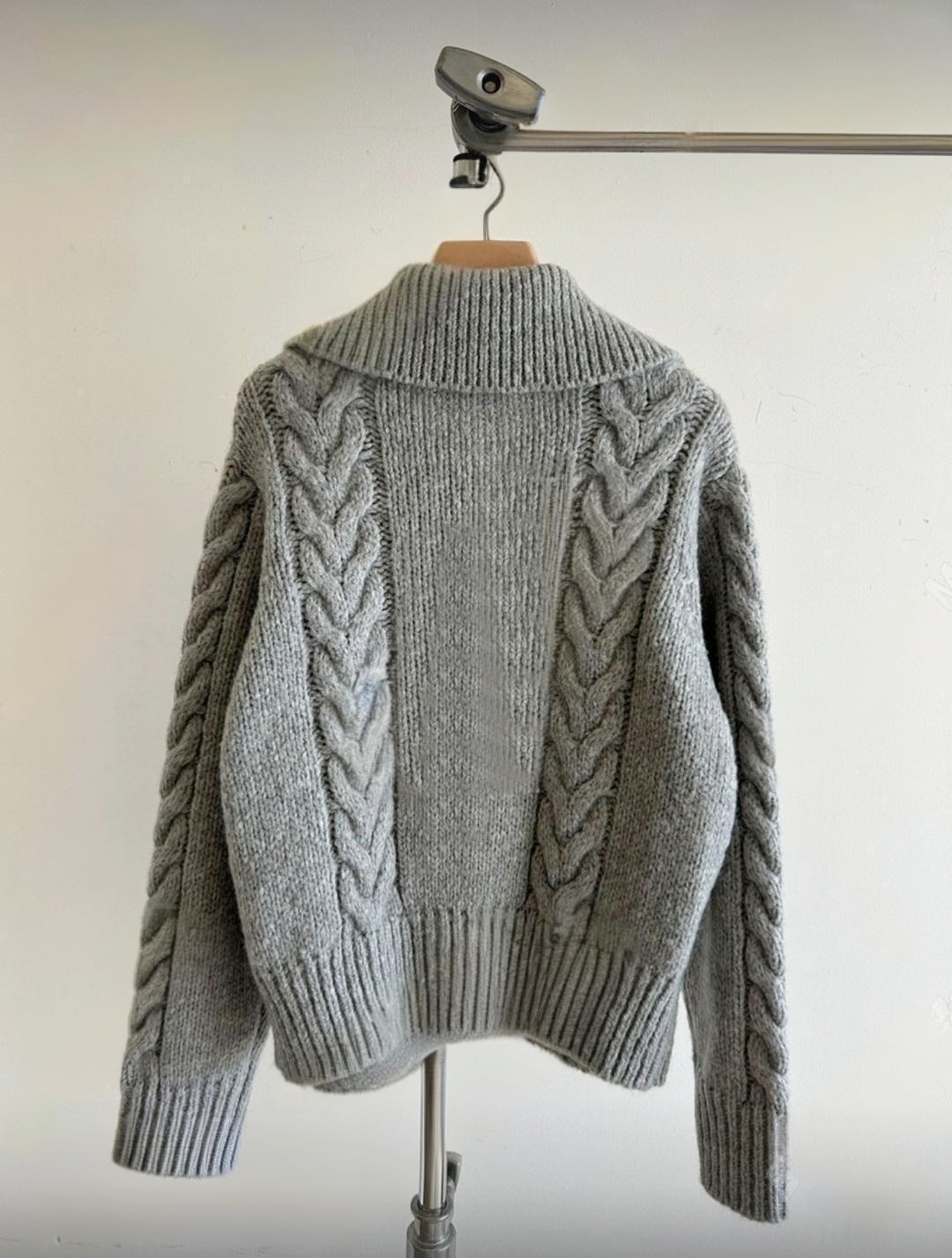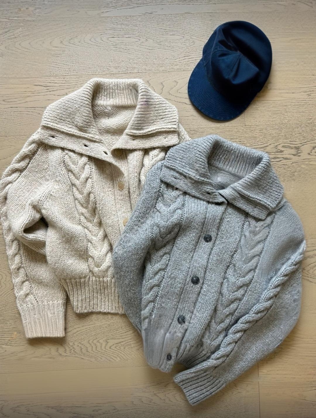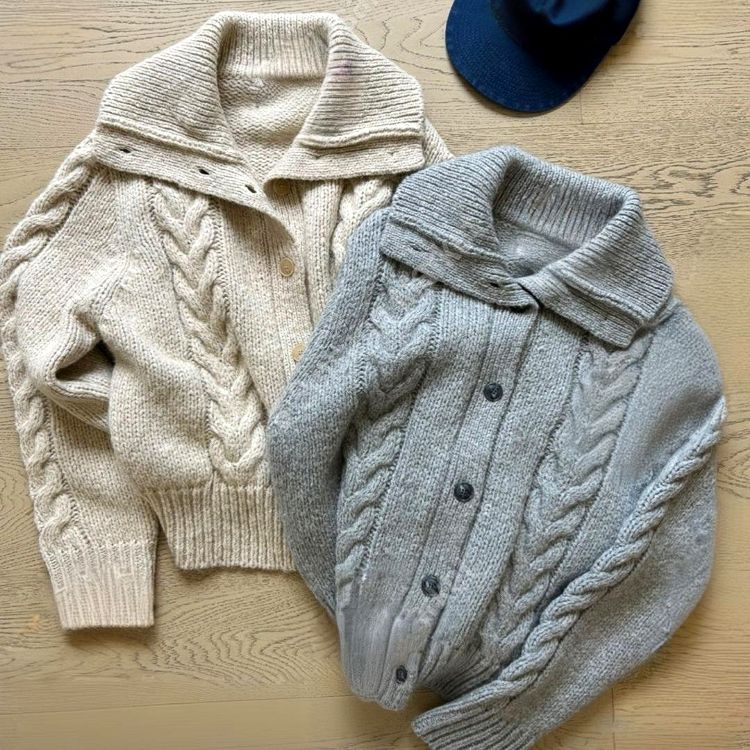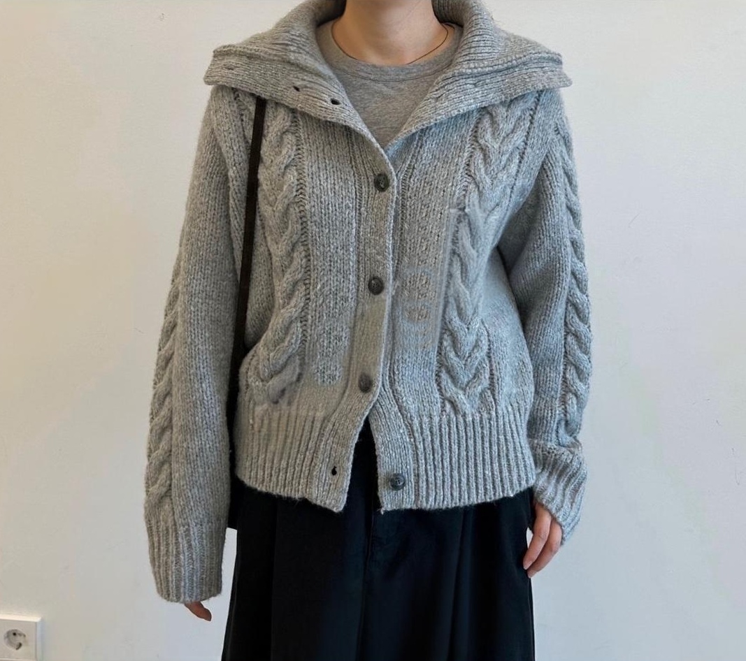 세련되고 캐주얼한 느낌의 꽈배기 넥 니트 가디건