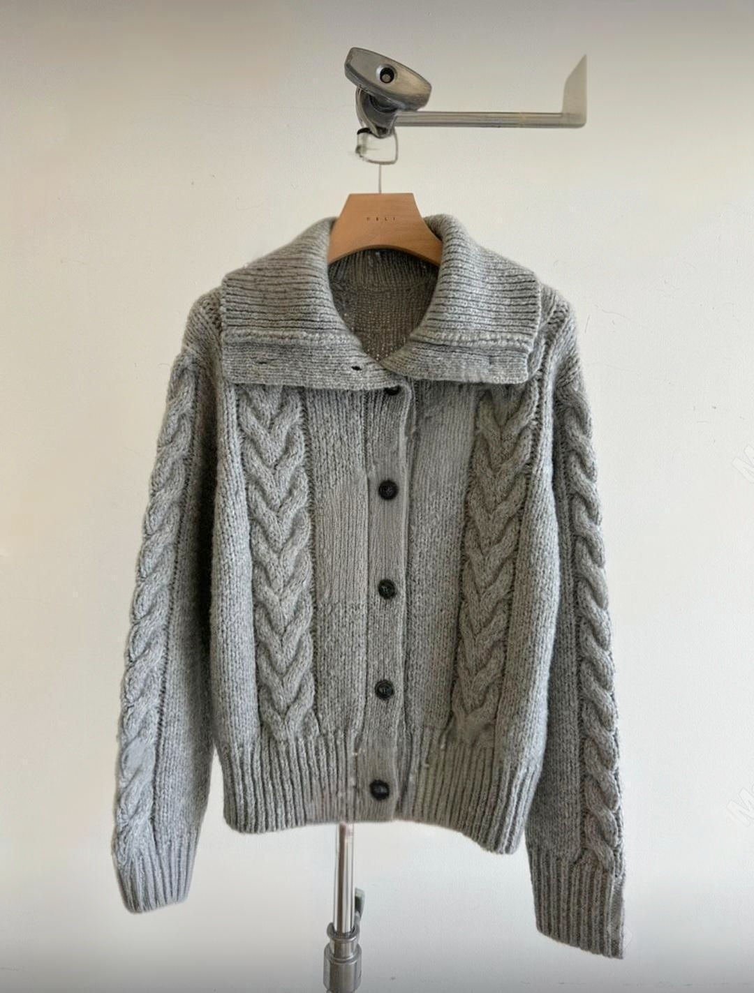 [씨엔엘]꽈배기 넥 니트 가디건
