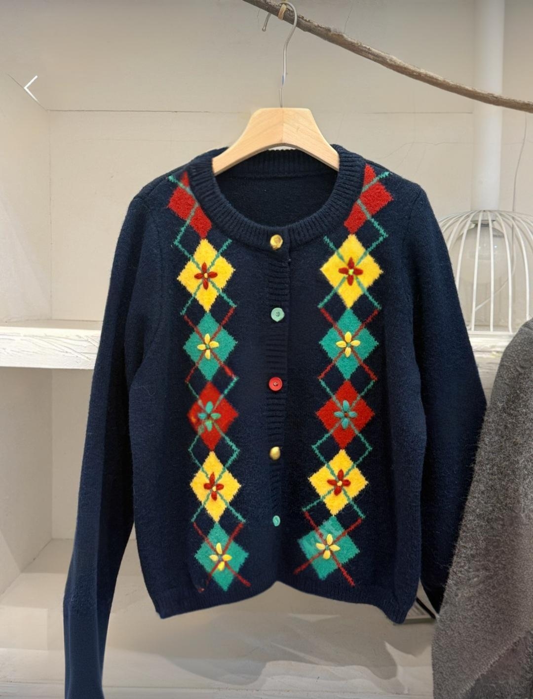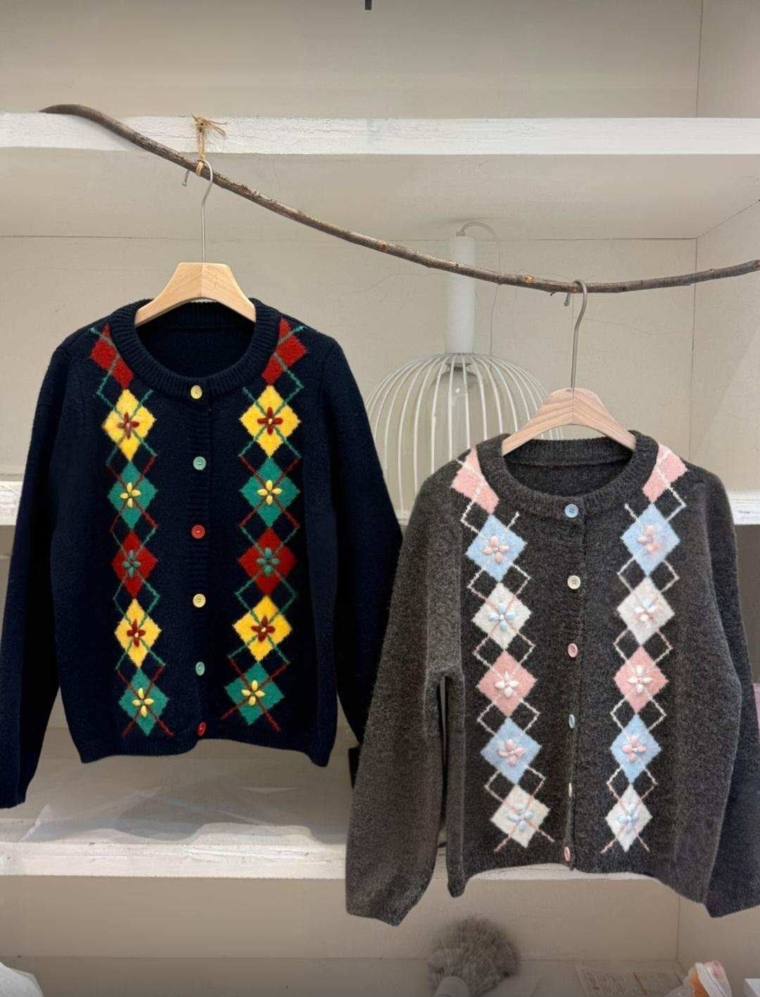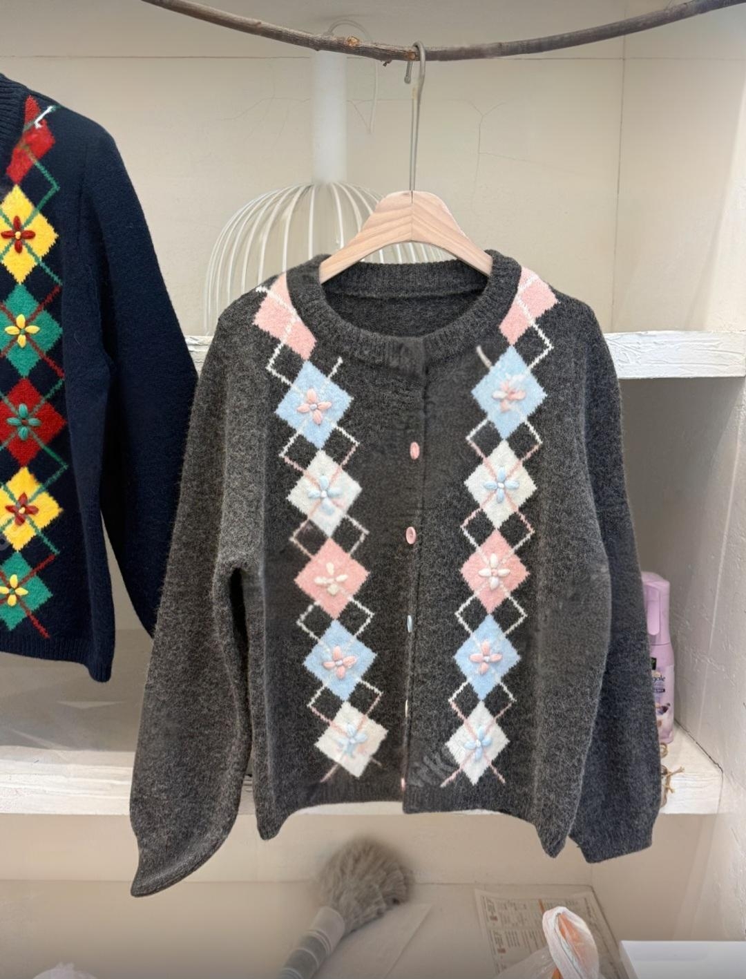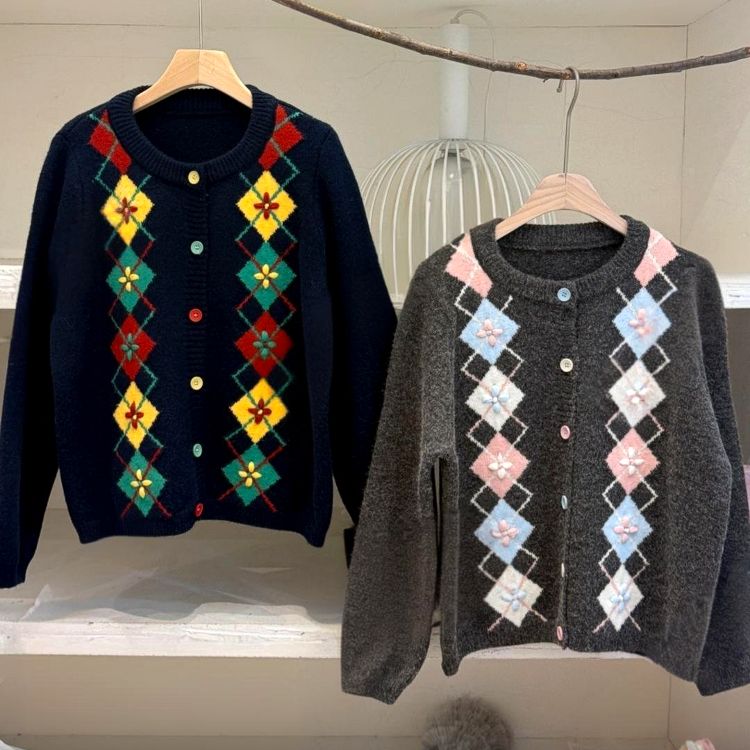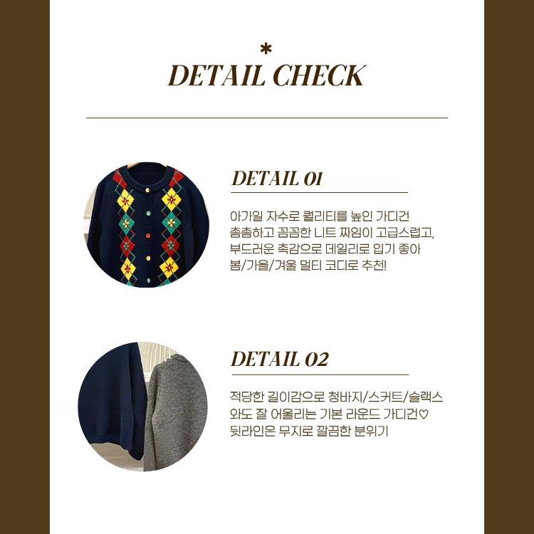고급스러운 아가일 자수 니트 가디건