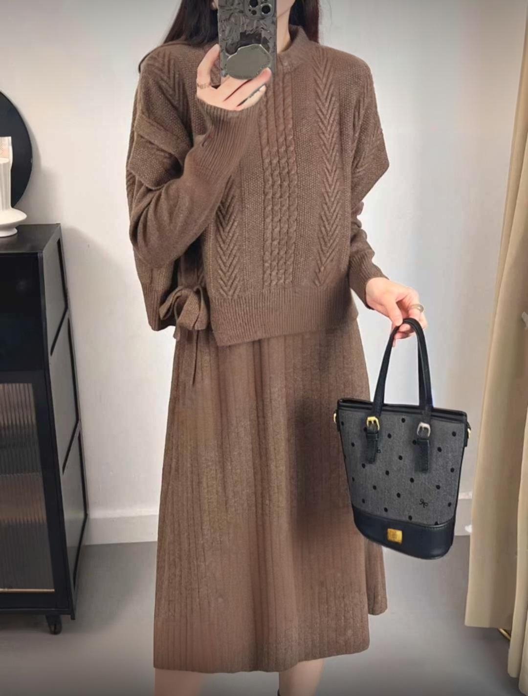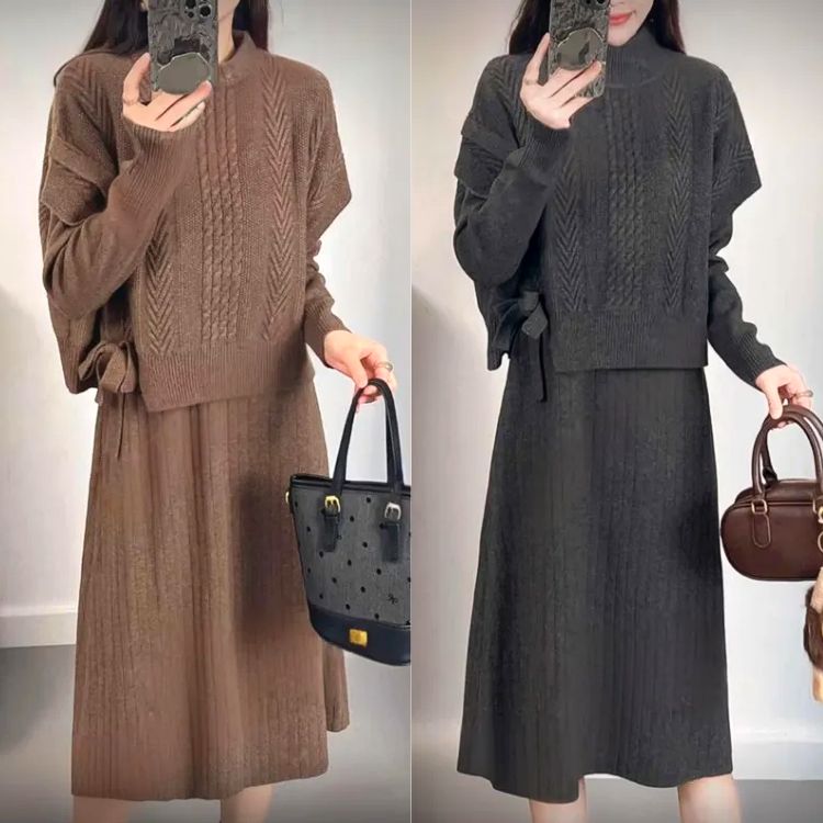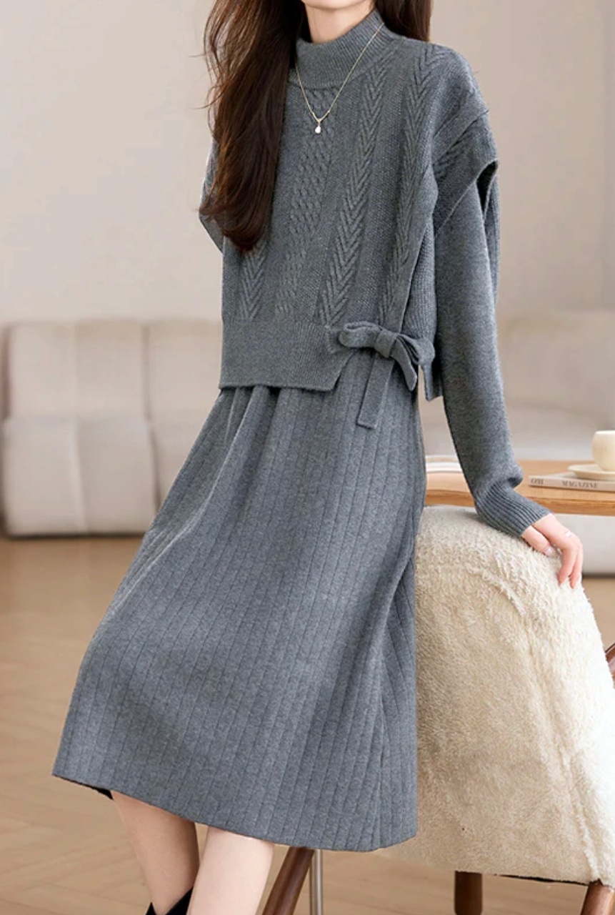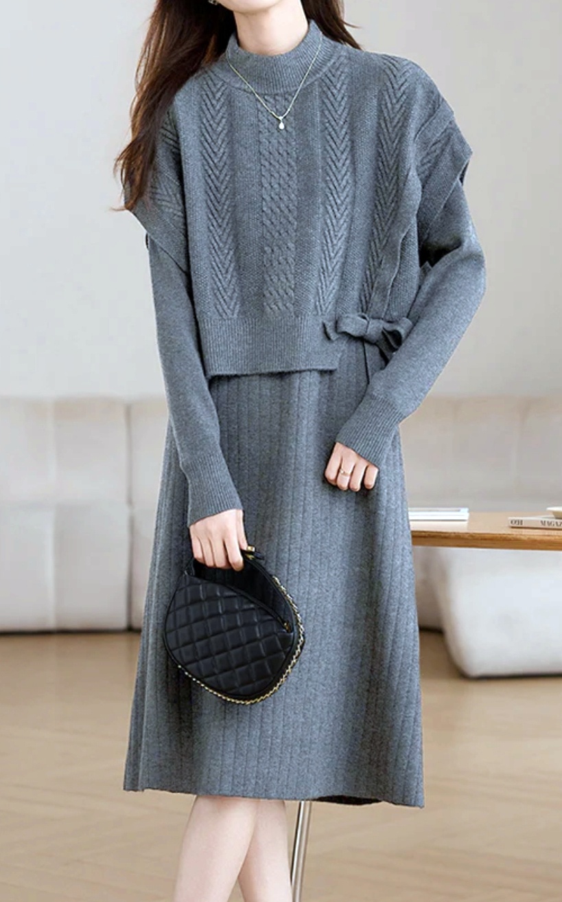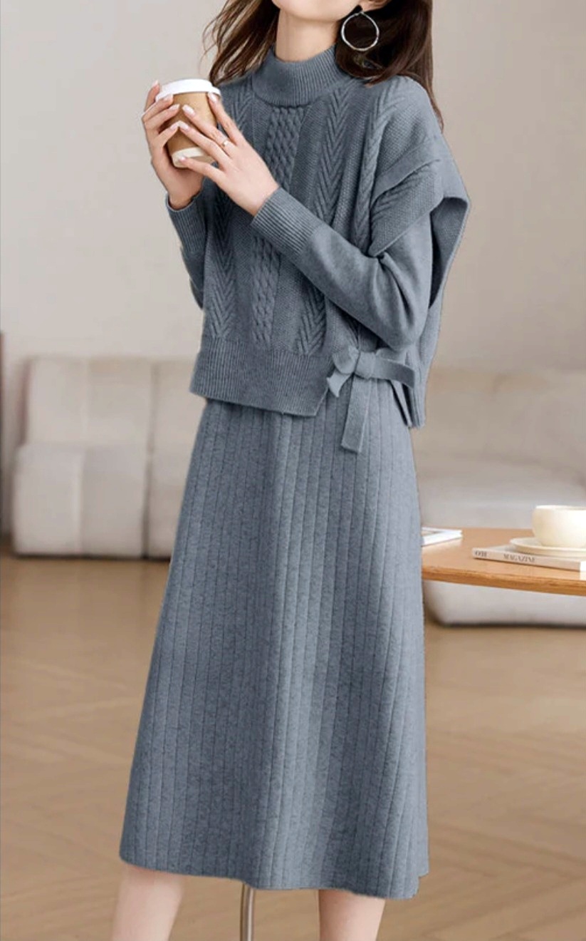 여성스럽고 단아한 분위기의 니트 조끼+원피스 SET