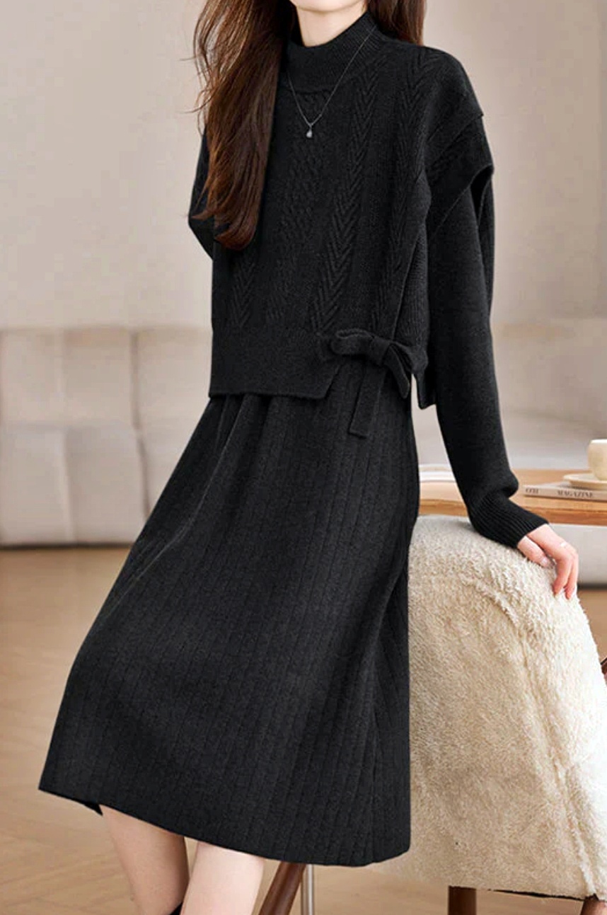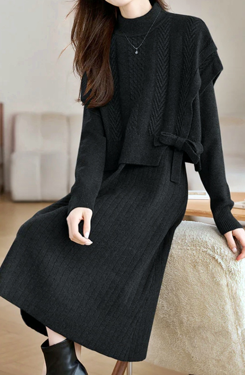 [씨엔엘]니트 조끼+원피스SET