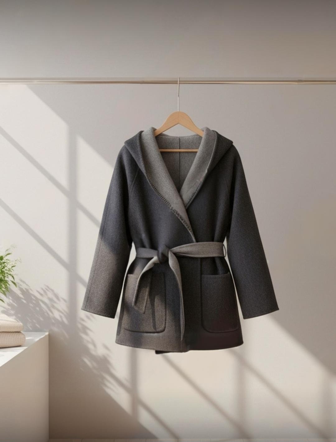 [씨엔엘]후드 핸드메이드 울 코트