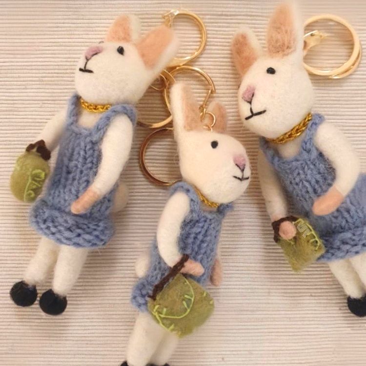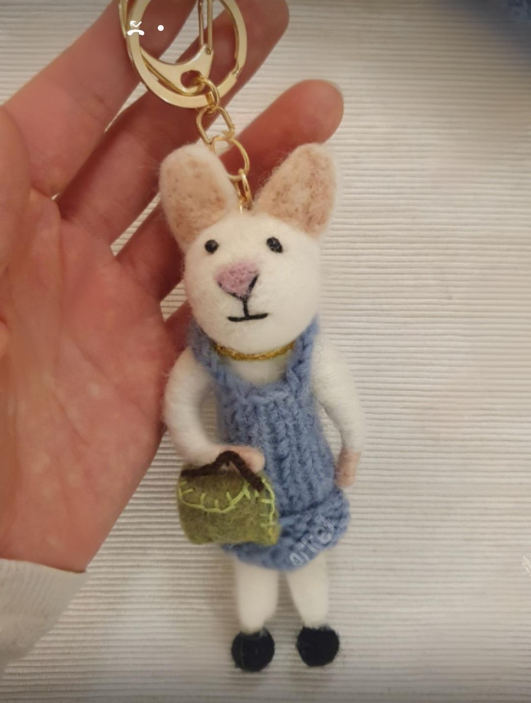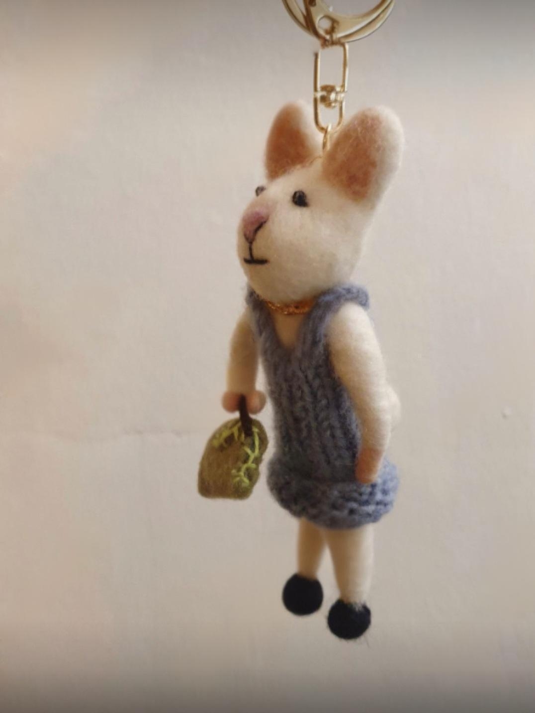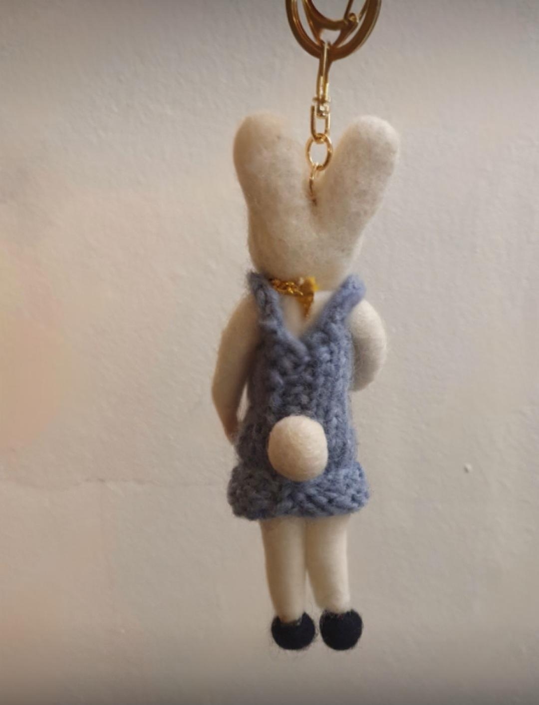 니트 원피스를 입은 사랑스럽고 귀여운 양모 토끼 키링