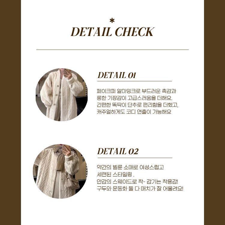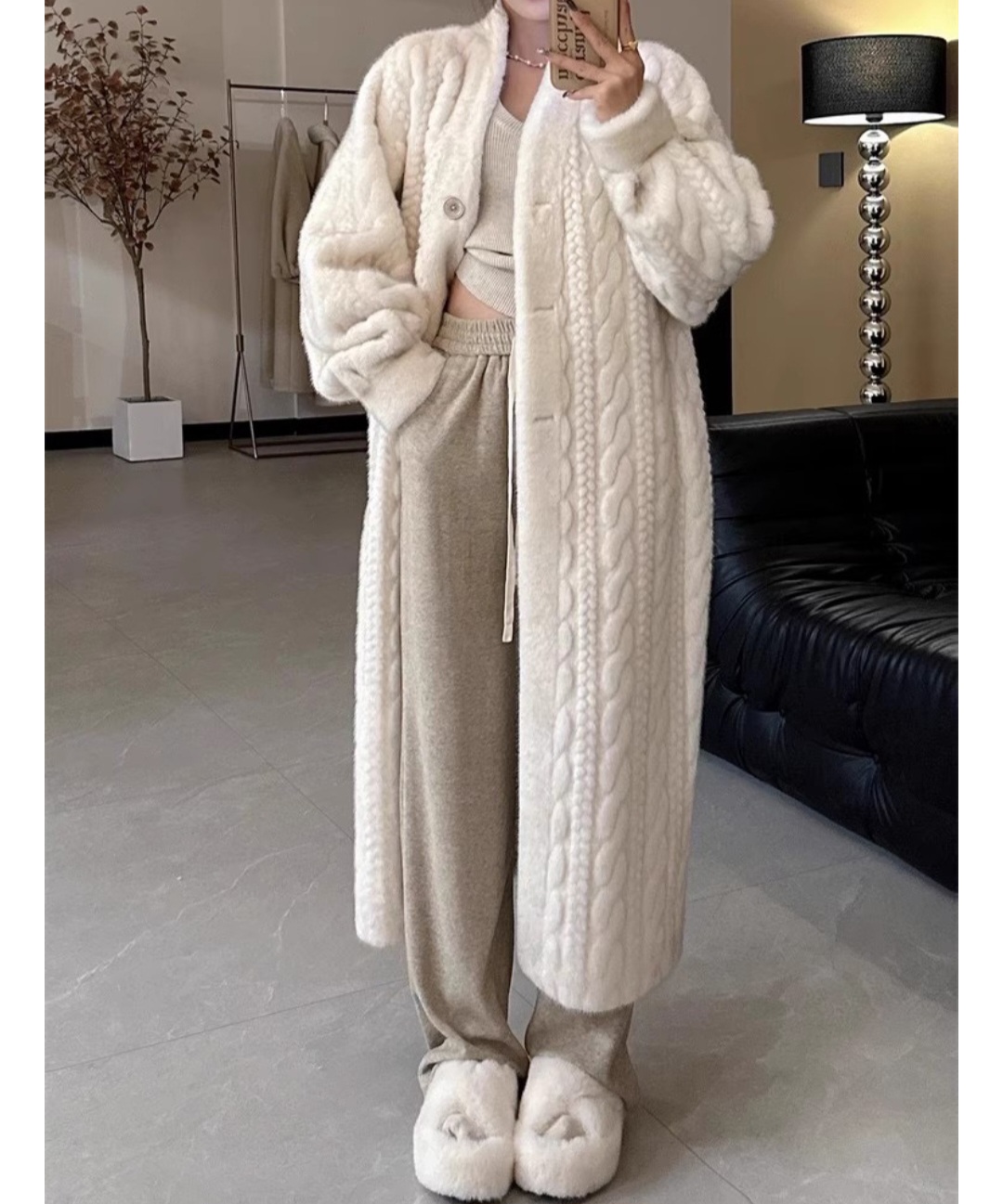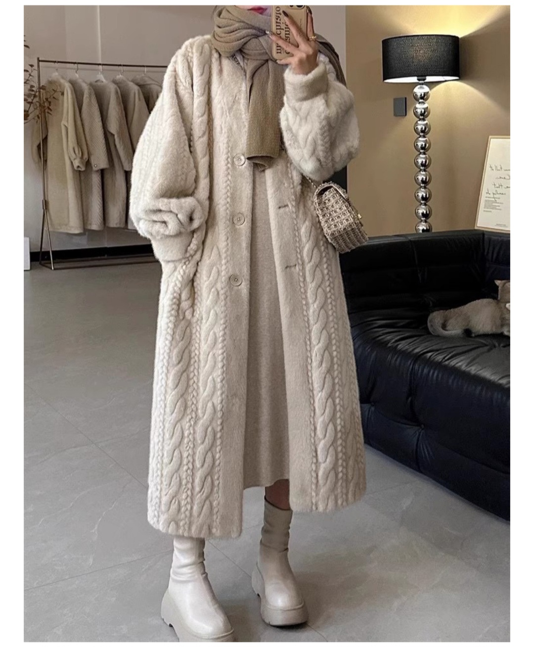 보드라운 촉감과 롱한 기장감으로 캐주얼하고 고급스러운 밍크 코트