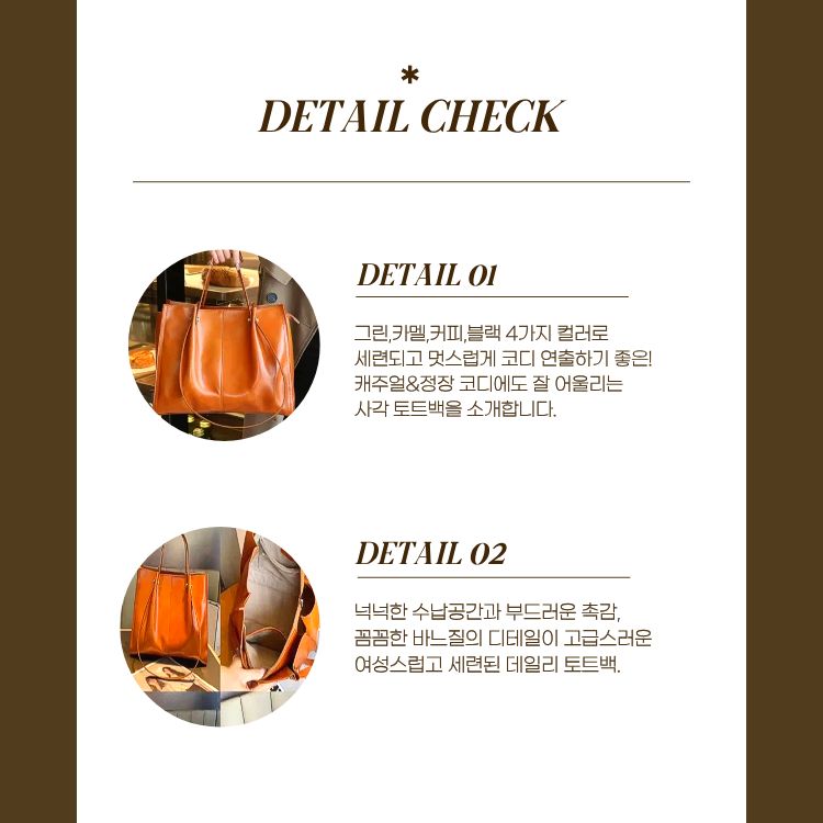 여성스럽고 세련된 스타일을 연출하는 사각 토트백