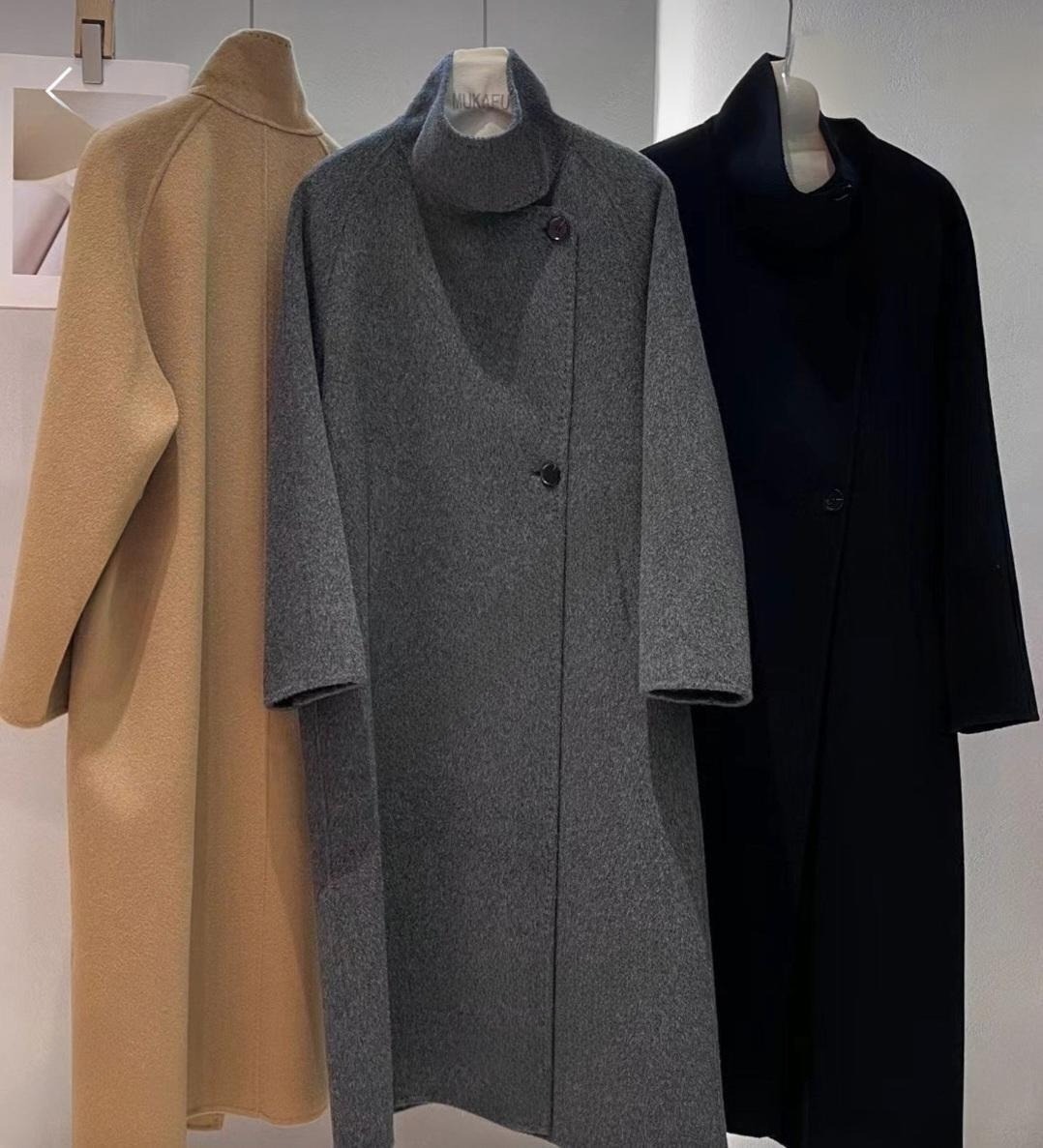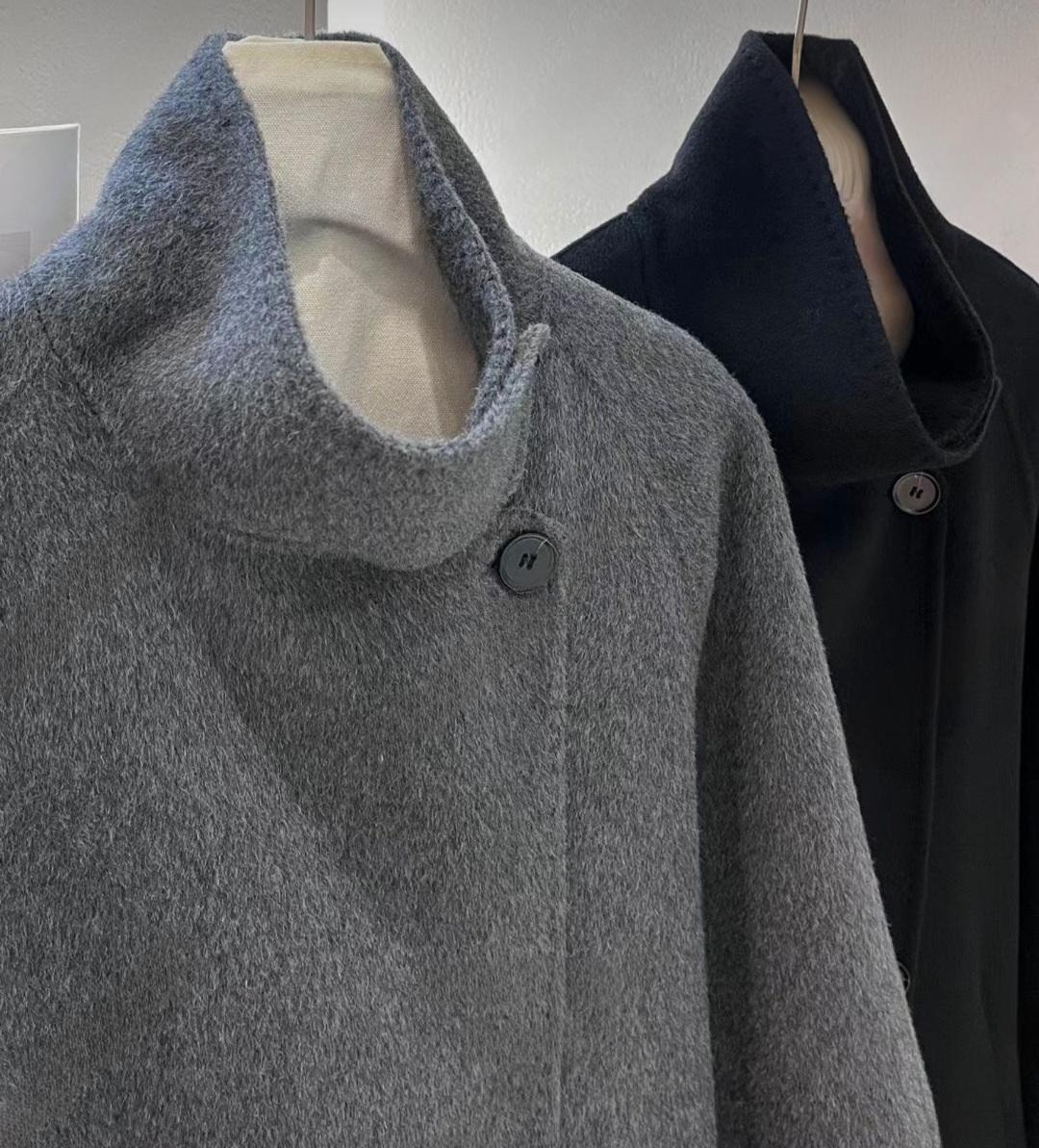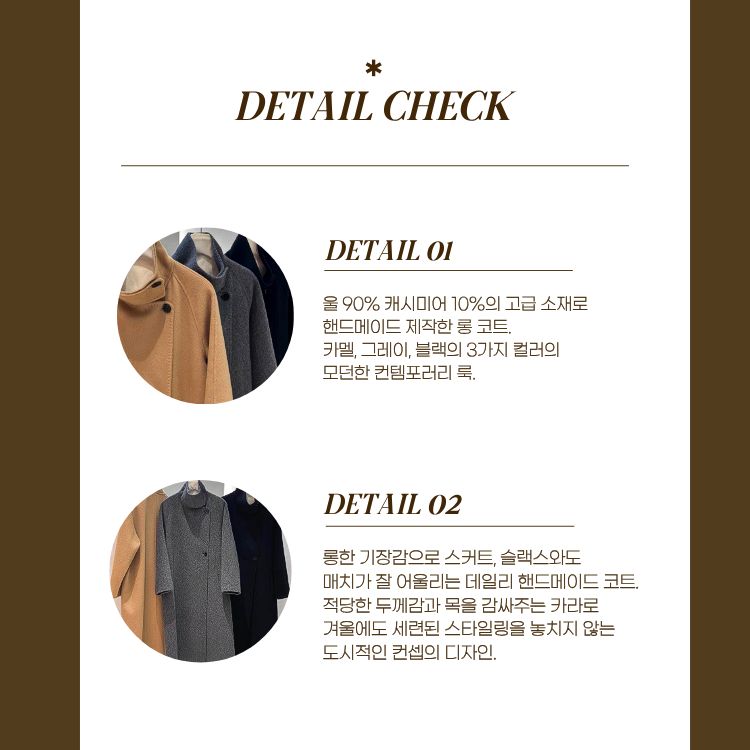캐시미어, 울 혼방 소재의 핸드메이드 롱 코트