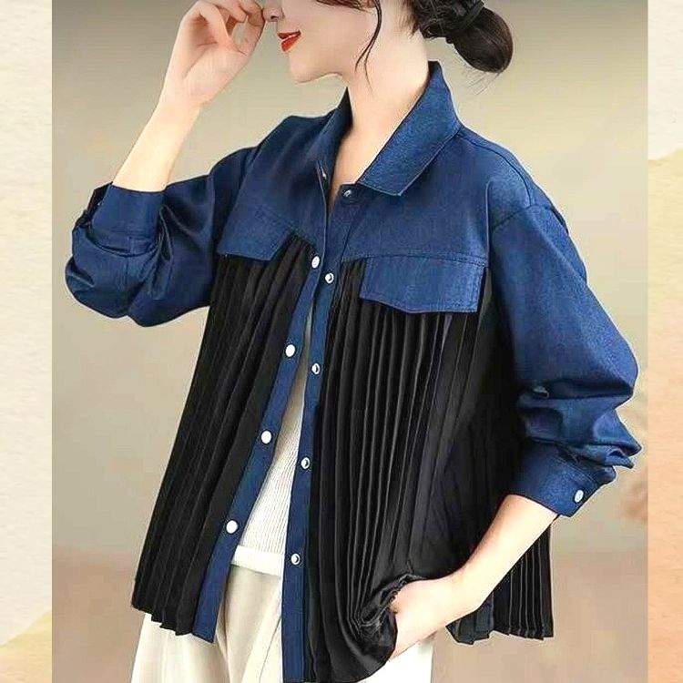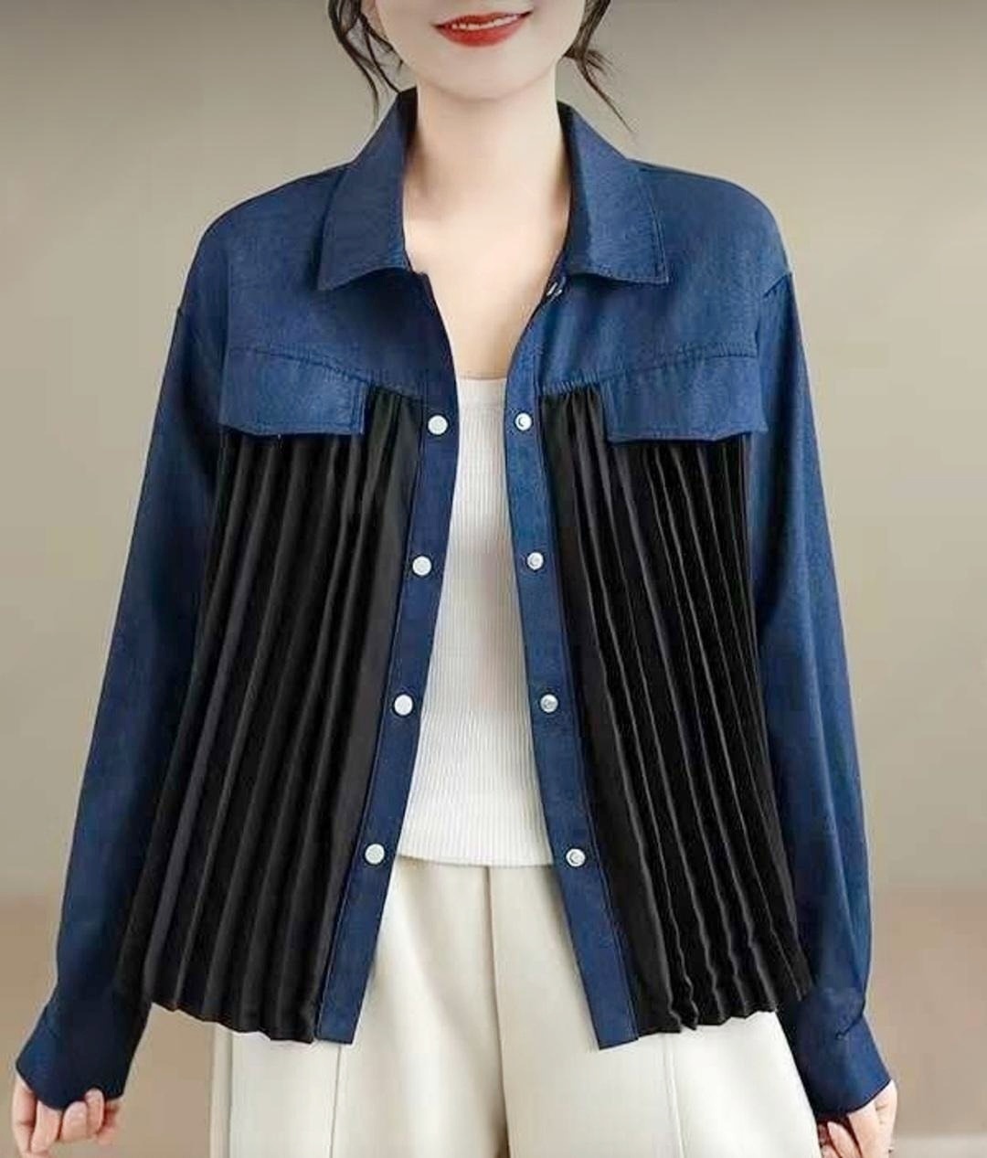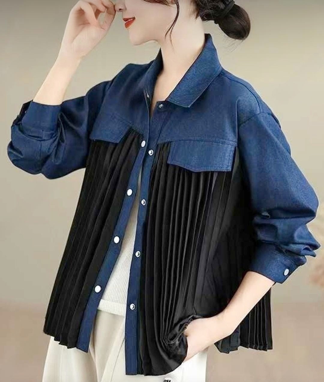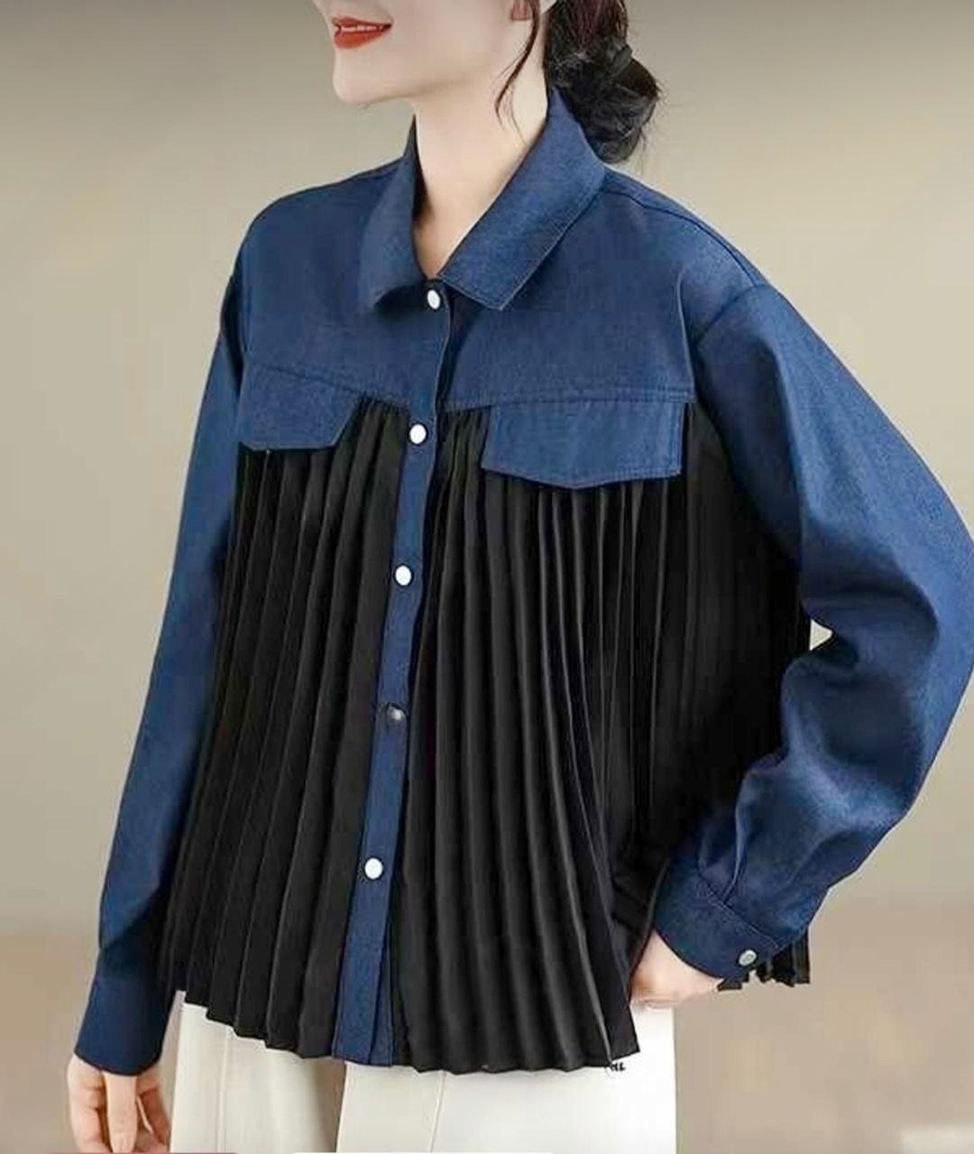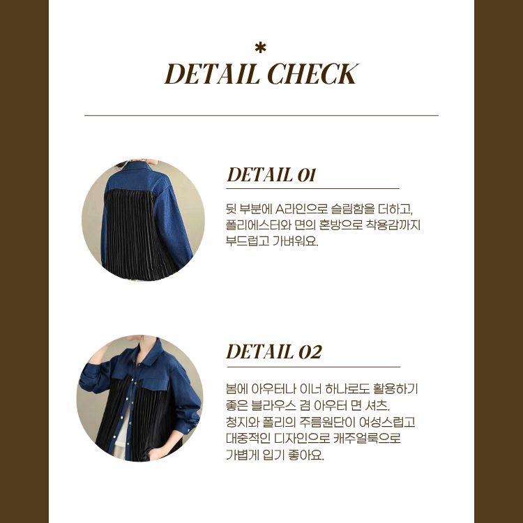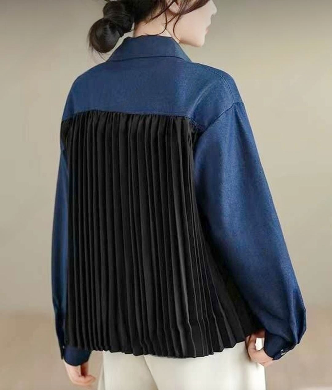 봄/가을에 입기 좋은 청지+플리츠 셔츠 블라우스