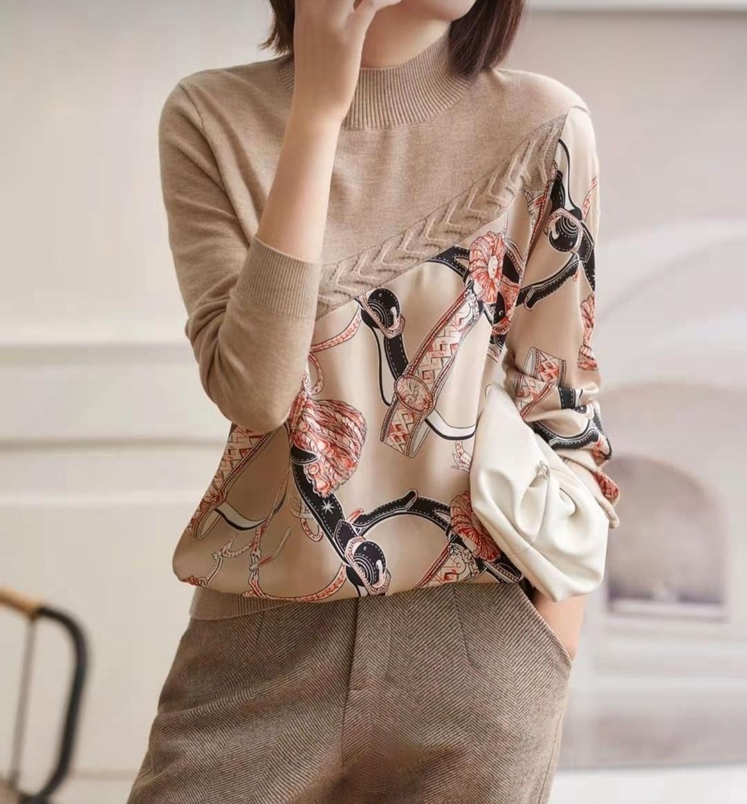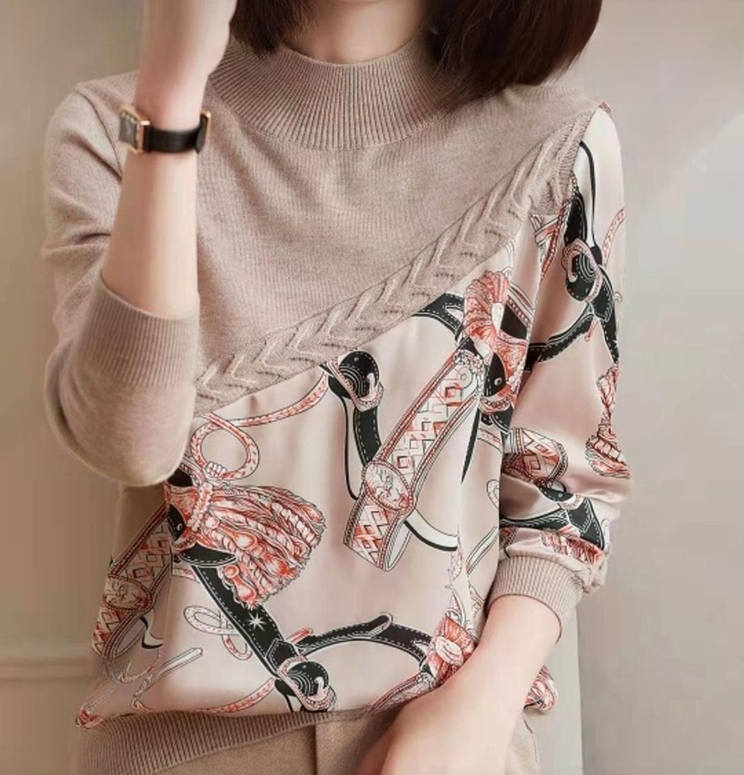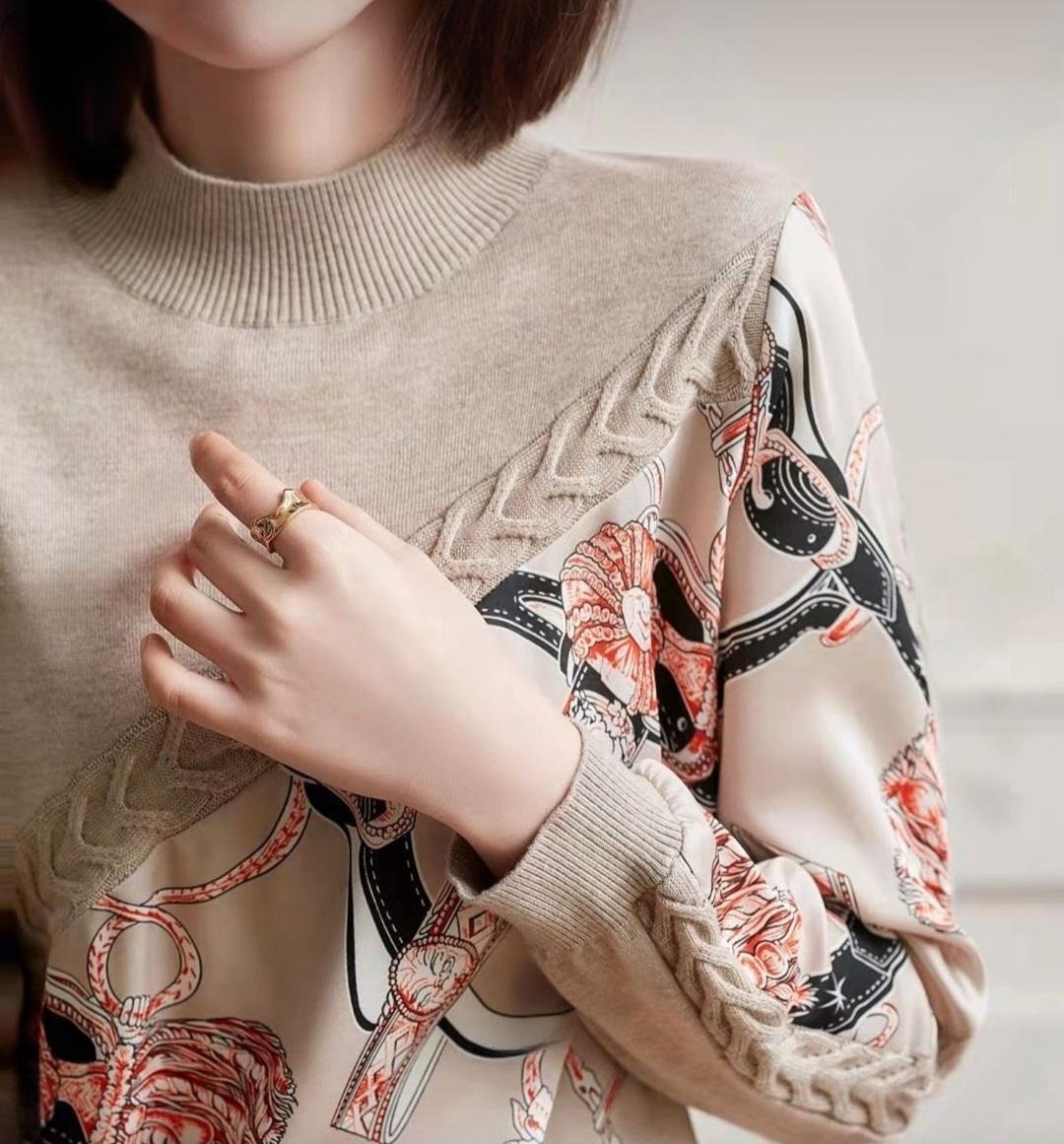 여성스러운 베이지 컬러의 꽈배기 체인 울 니트