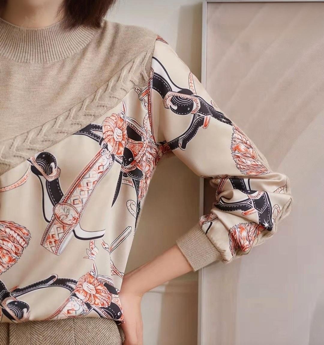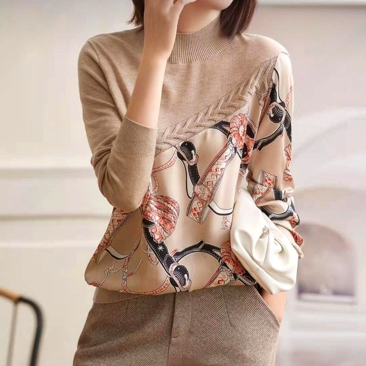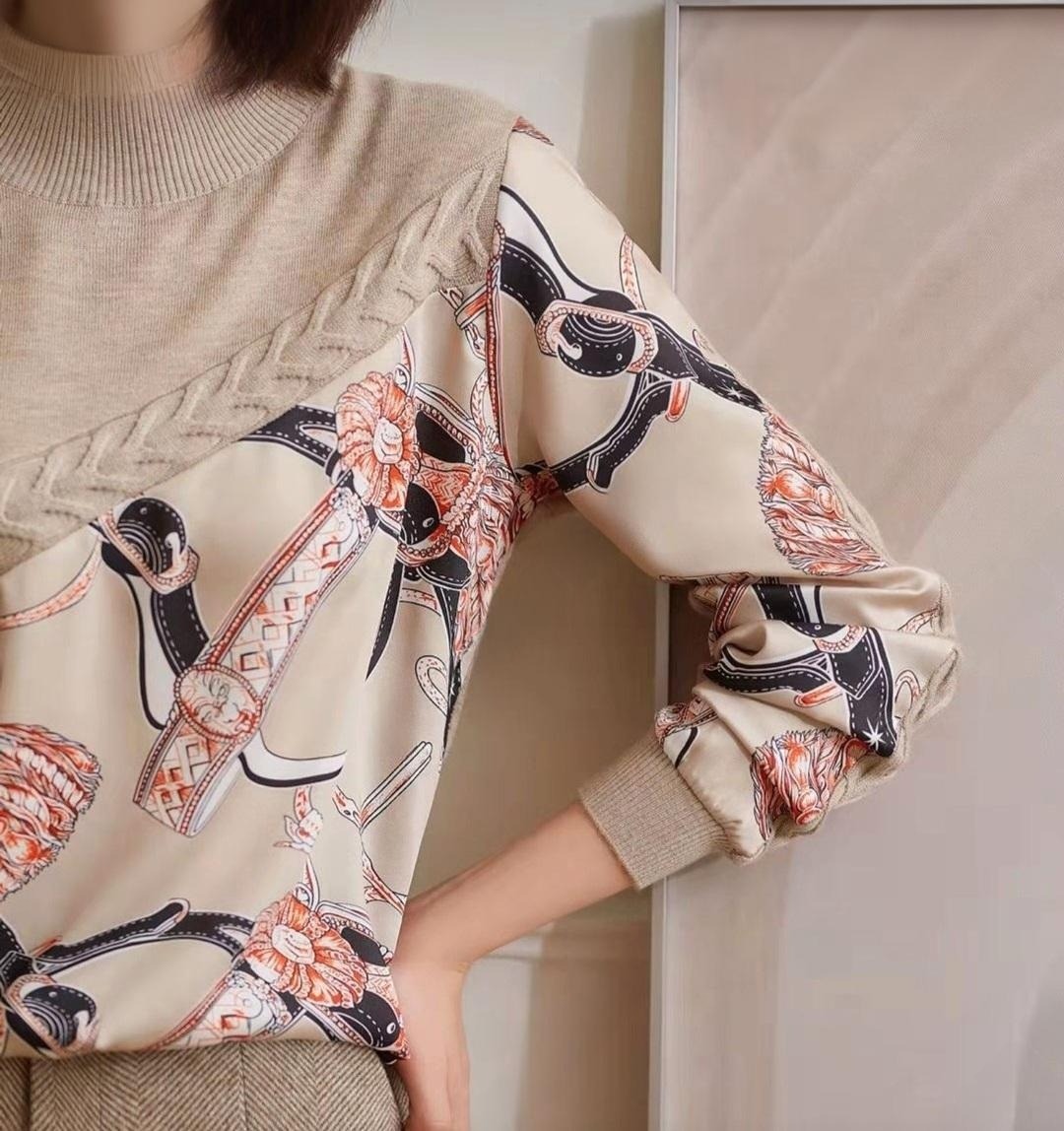 여성스러운 베이지 컬러의 꽈배기 체인 울 니트