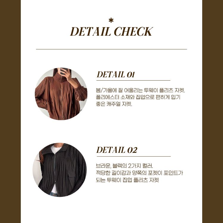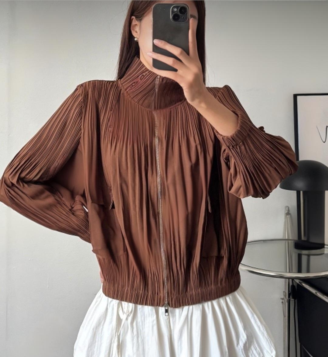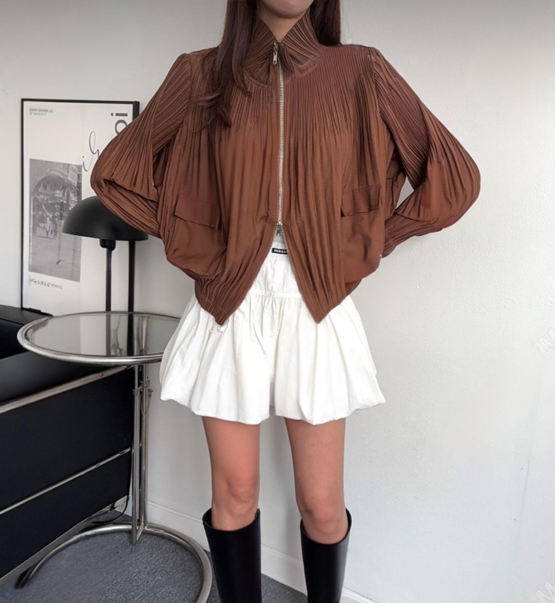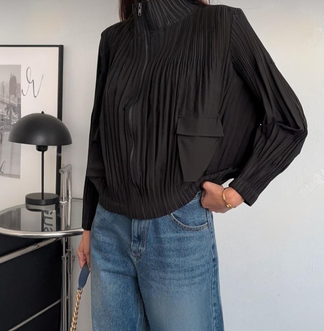 봄/가을에 입기 좋은 고퀄리티 플리츠 라인의 집업 자켓
